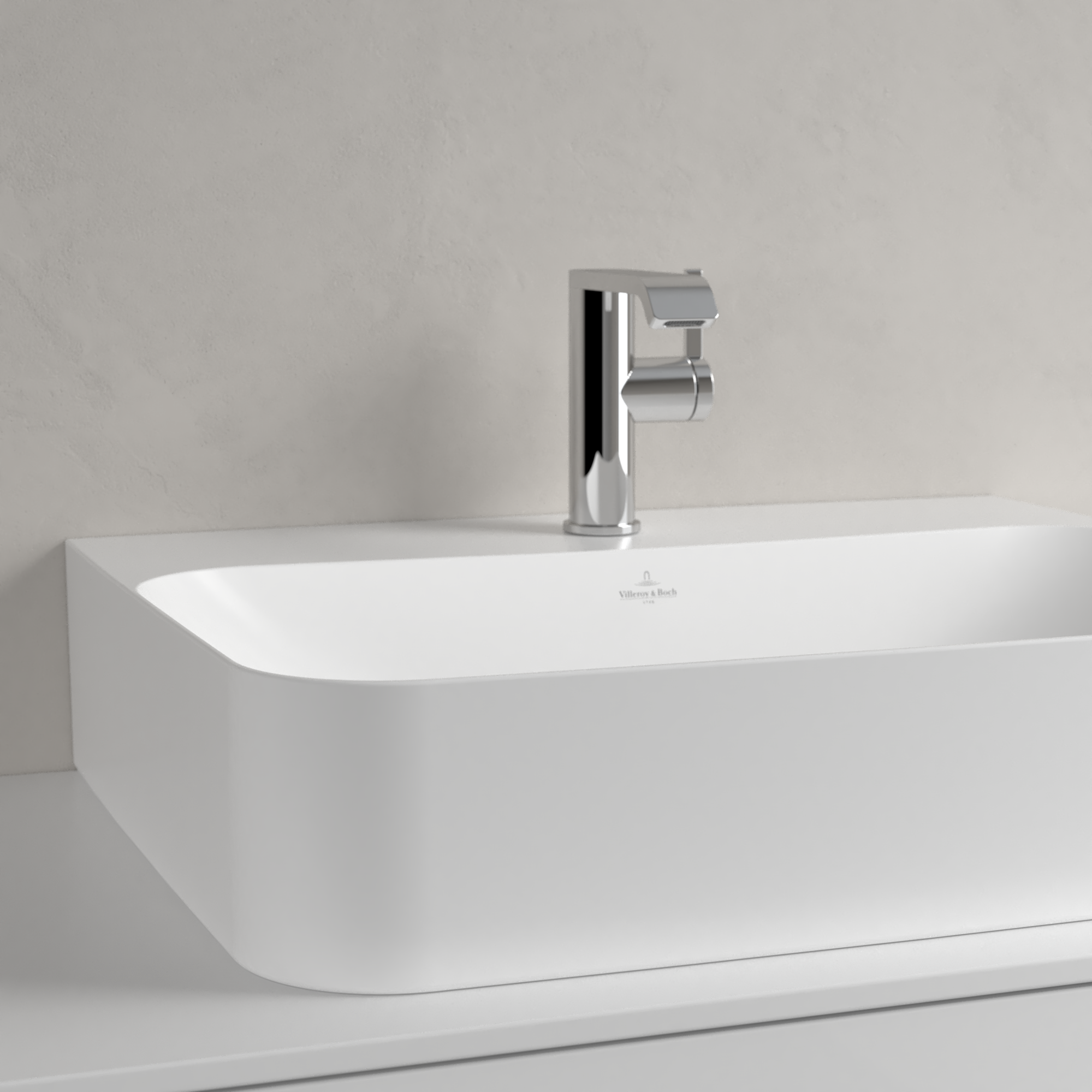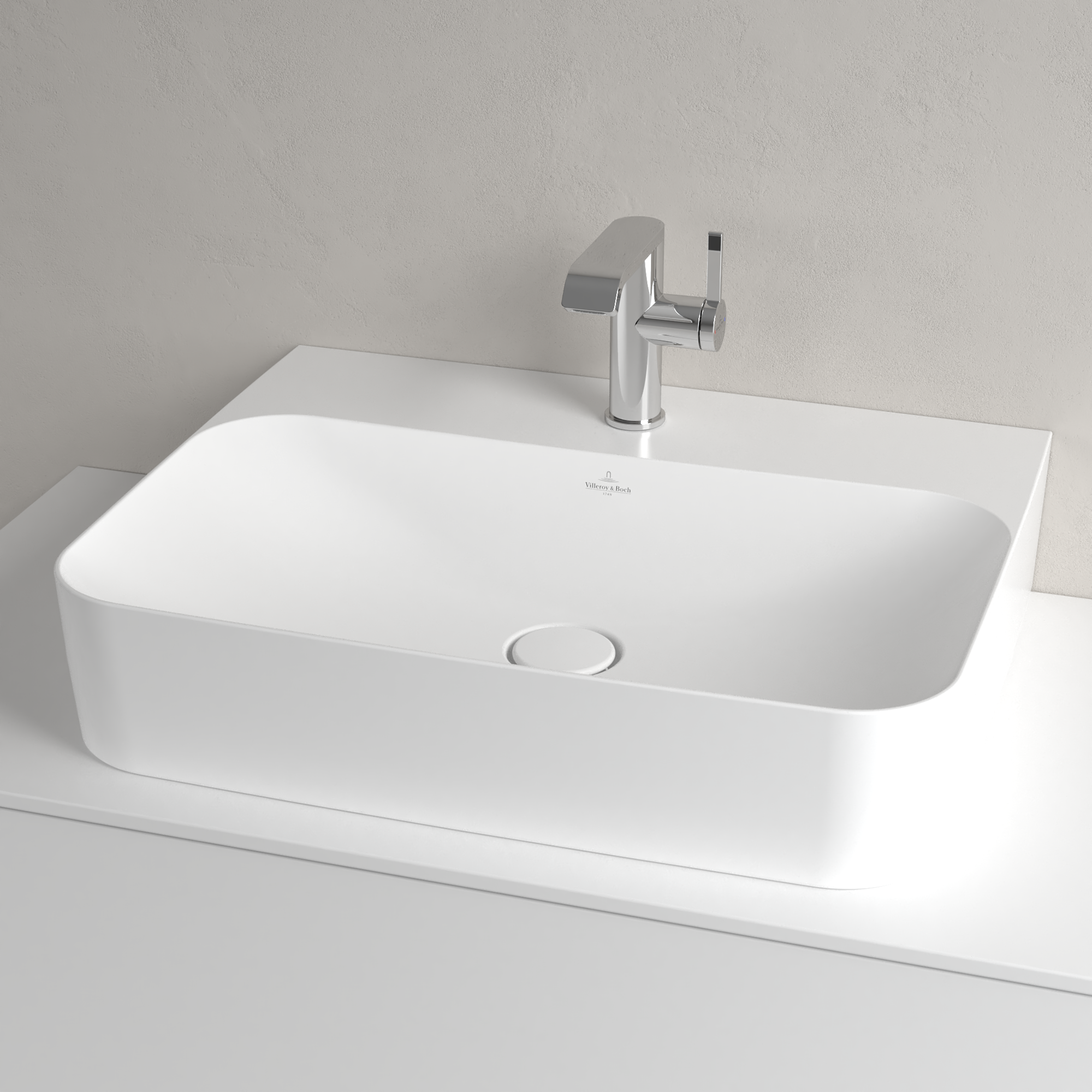 Finion Waschbecken, 600x470x164mm, mit verdecktem Überlauf, Stone White CeramicPlus