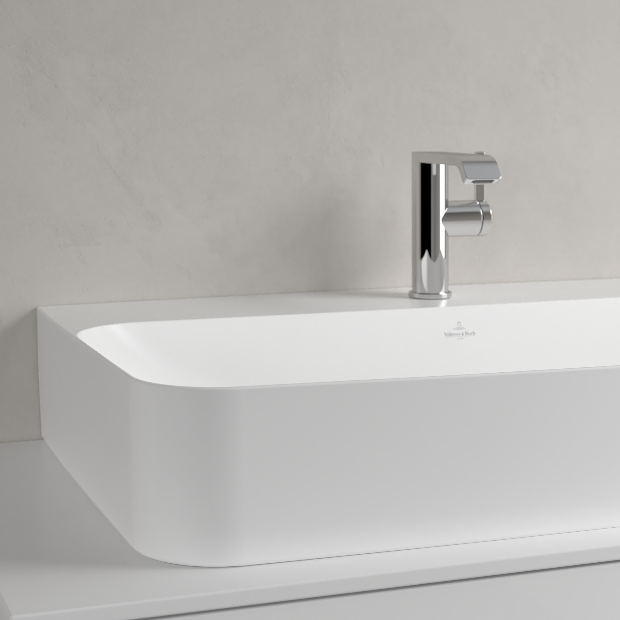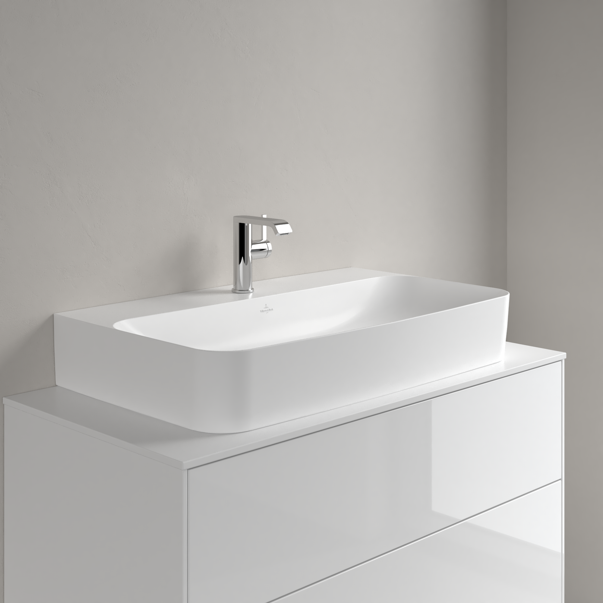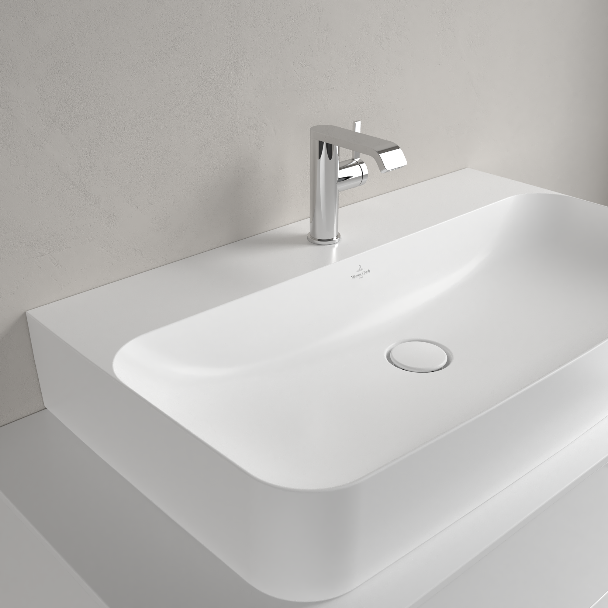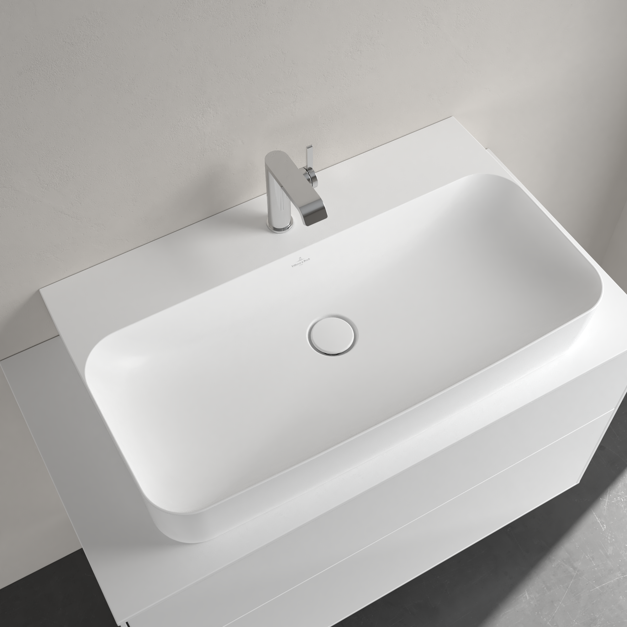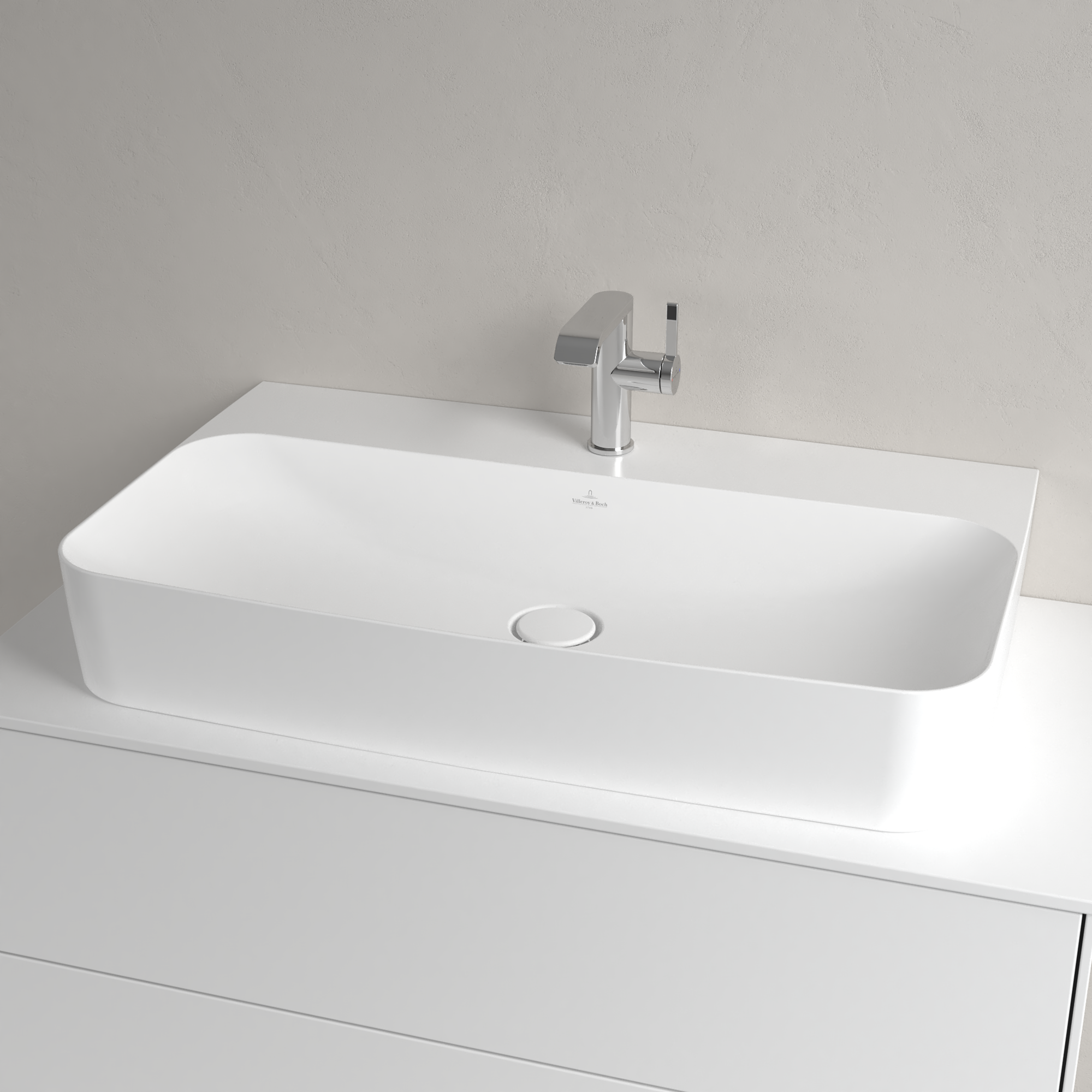 Finion Waschbecken, 800x470x165mm, mit verdecktem Überlauf, Stone White CeramicPlus