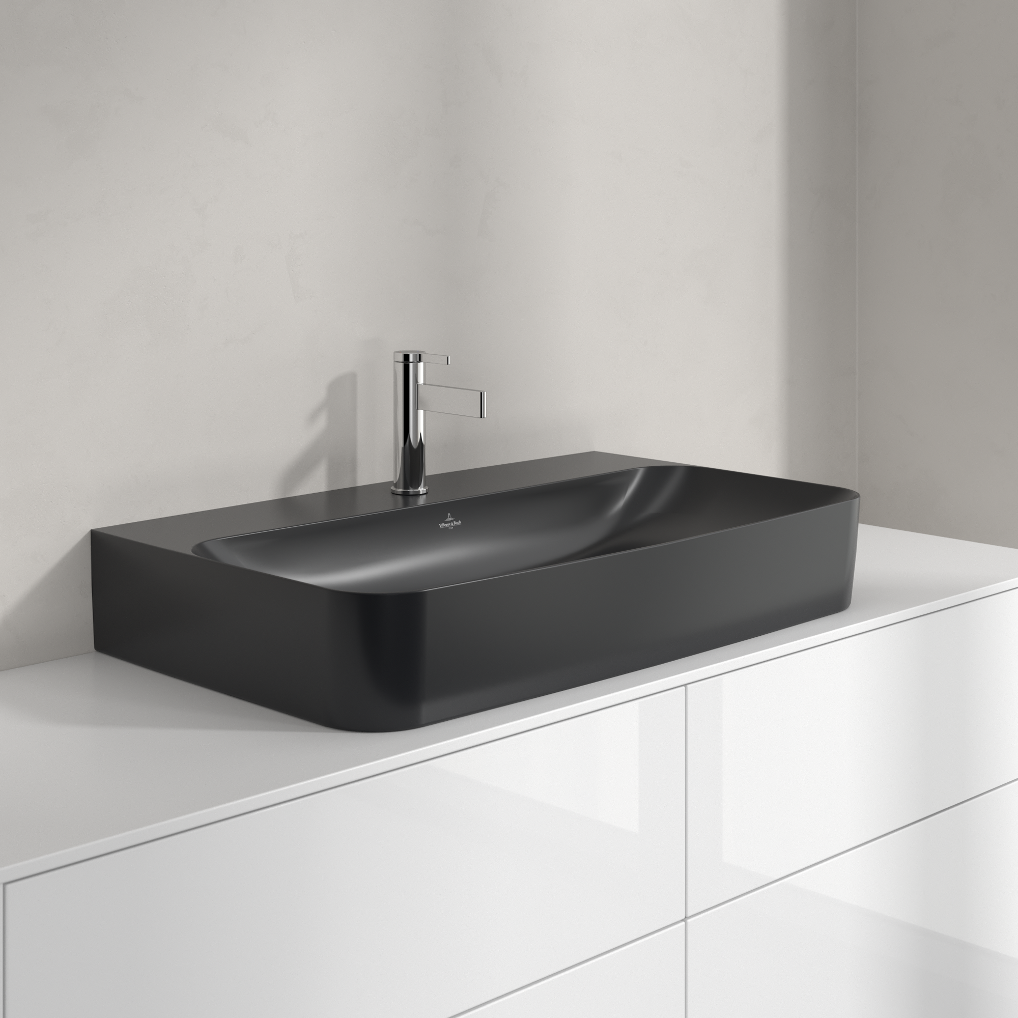 Finion Waschbecken, 800x470x165mm, ohne Überlauf, Pure Black CeramicPlus