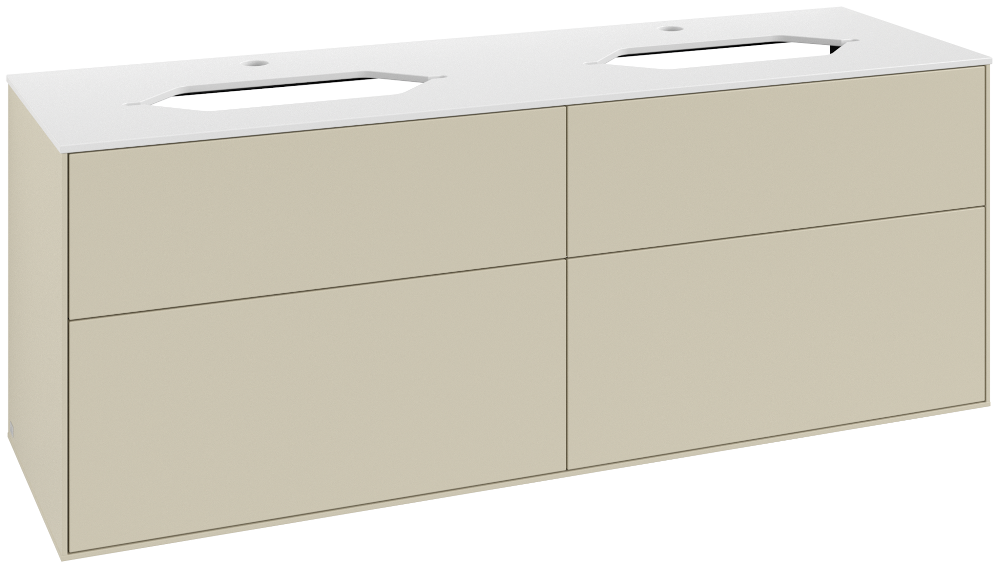 Finion Waschbeckenunterschrank, 4 Auszüge, 1600x603x501mm, Korpus: Silk Grey Matt Lacquer, Front: Silk Grey Matt Lacquer, Abdeckplatte: Glass White Matt