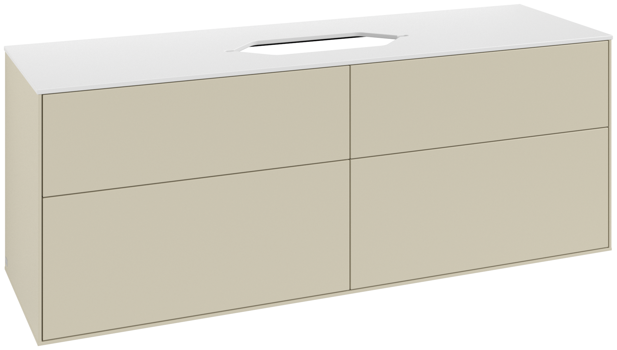 Finion Waschbeckenunterschrank, 4 Auszüge, 1600x603x501mm, Korpus: Silk Grey Matt Lacquer, Front: Silk Grey Matt Lacquer, Abdeckplatte: Glass White Matt
