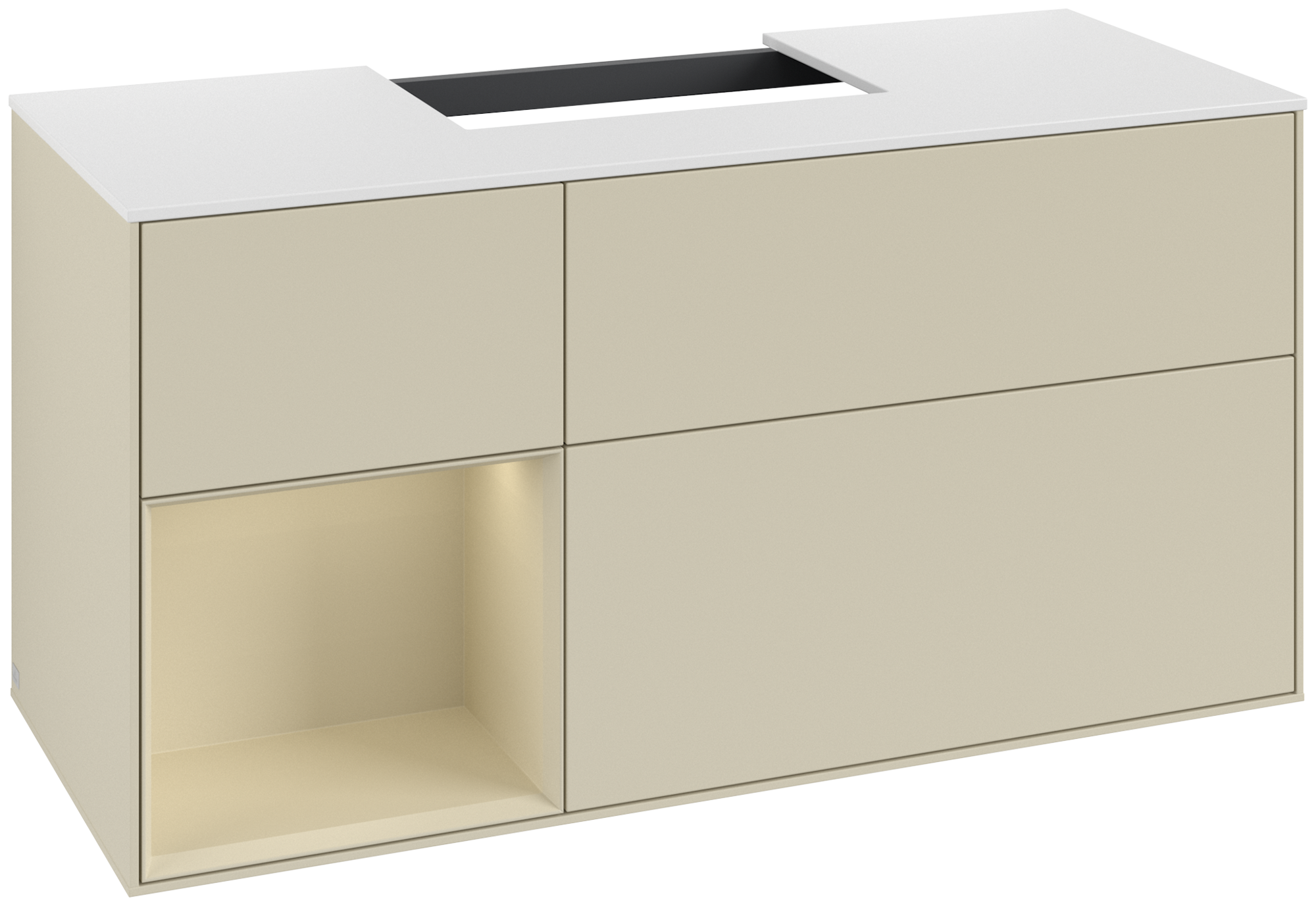 Finion Waschbeckenunterschrank, mit Beleuchtung, 3 Auszüge, 1200x603x501mm, Korpus: Silk Grey Matt Lacquer, Front: Silk Grey Matt Lacquer, Regalelement: Silk Grey Matt Lacquer, Abdeckplatte: Glass White Matt