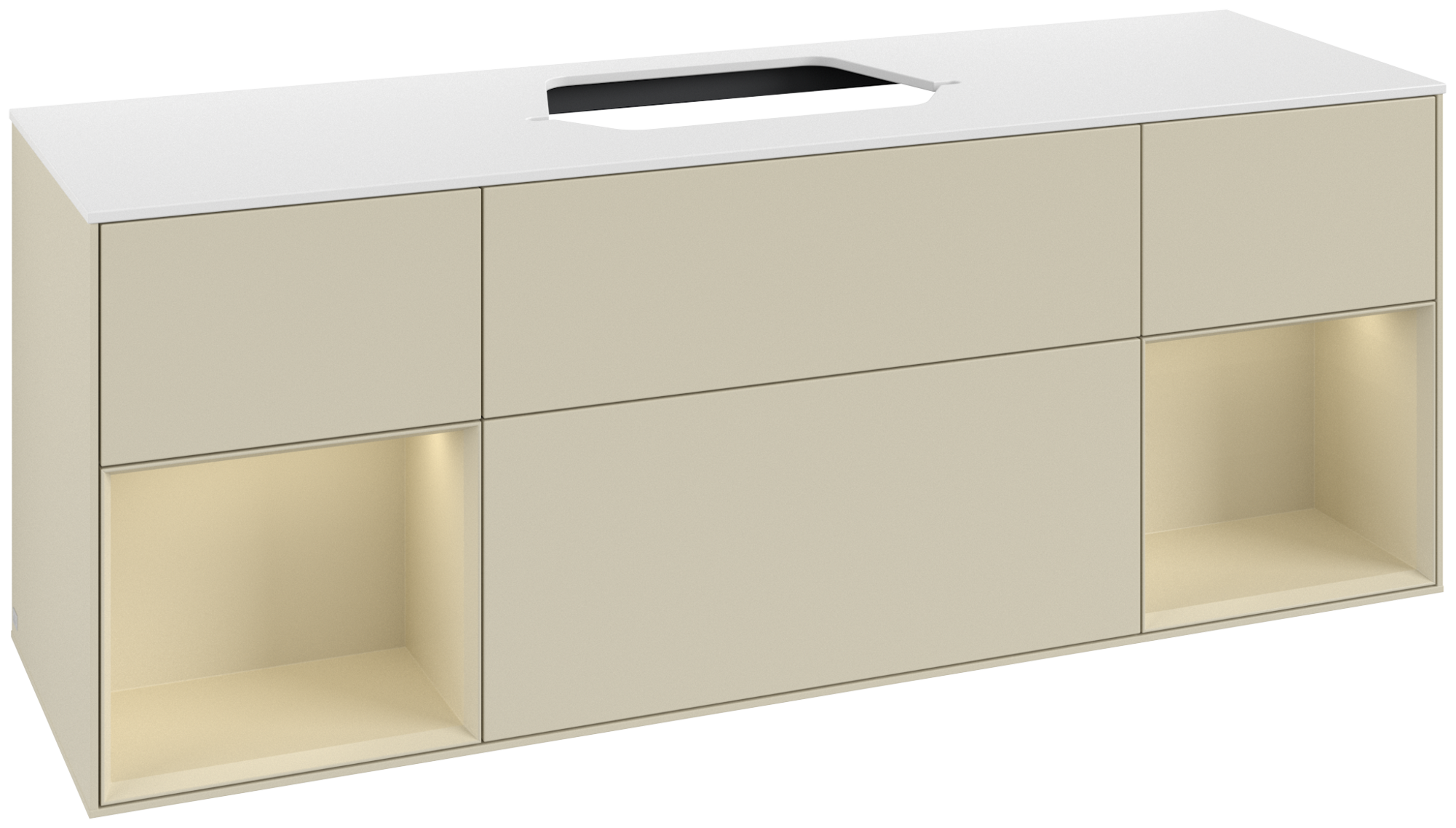 Finion Waschbeckenunterschrank, mit Beleuchtung, 4 Auszüge, 1600x603x501mm, Korpus: Silk Grey Matt Lacquer, Front: Silk Grey Matt Lacquer, Regalelement: Silk Grey Matt Lacquer, Abdeckplatte: Glass White Matt