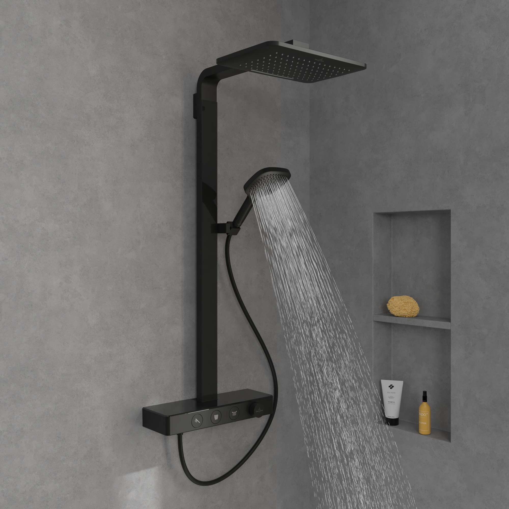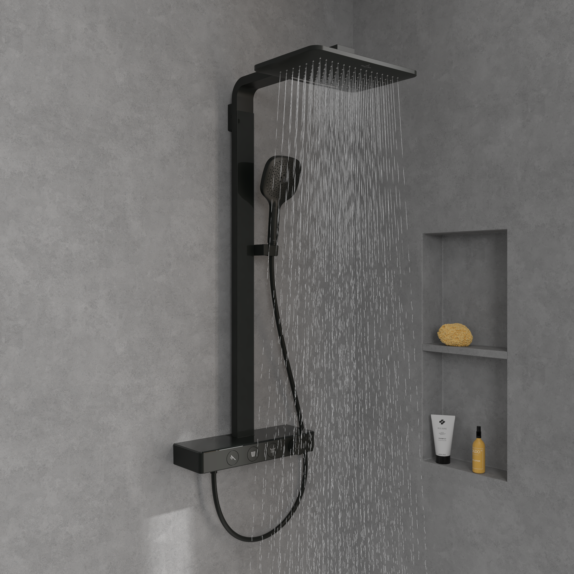 Infinity Showers Duschsystem mit drei Funktionen, für Wandmontage, Matt Black