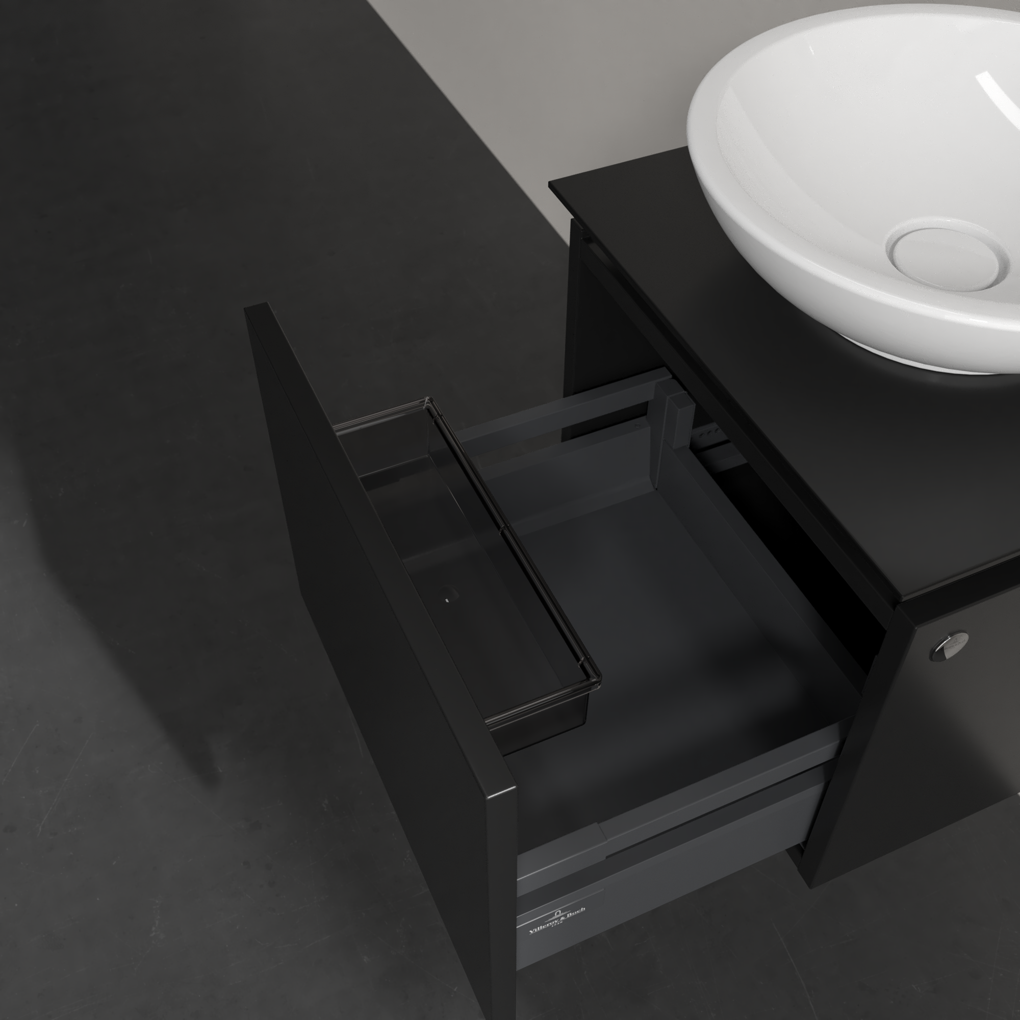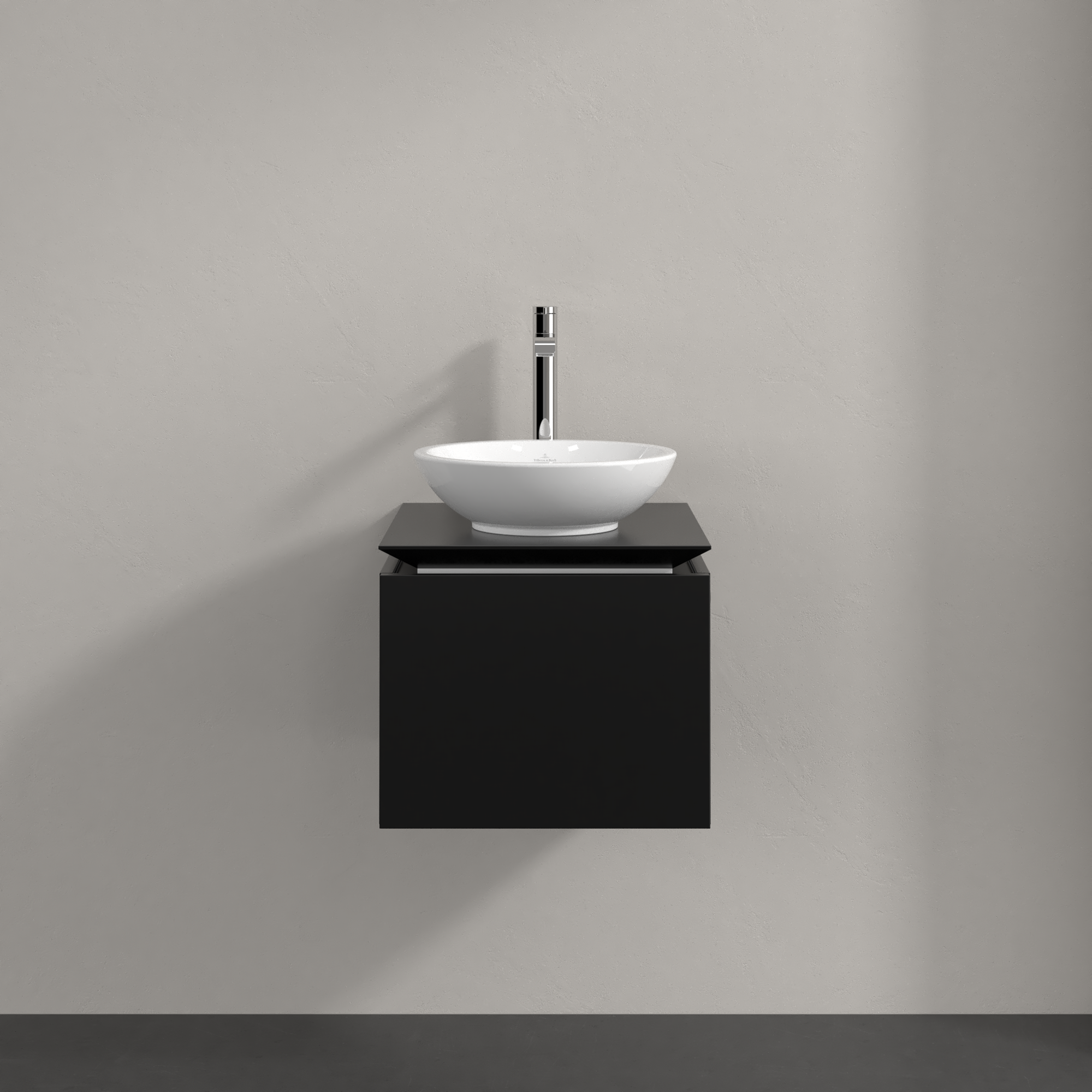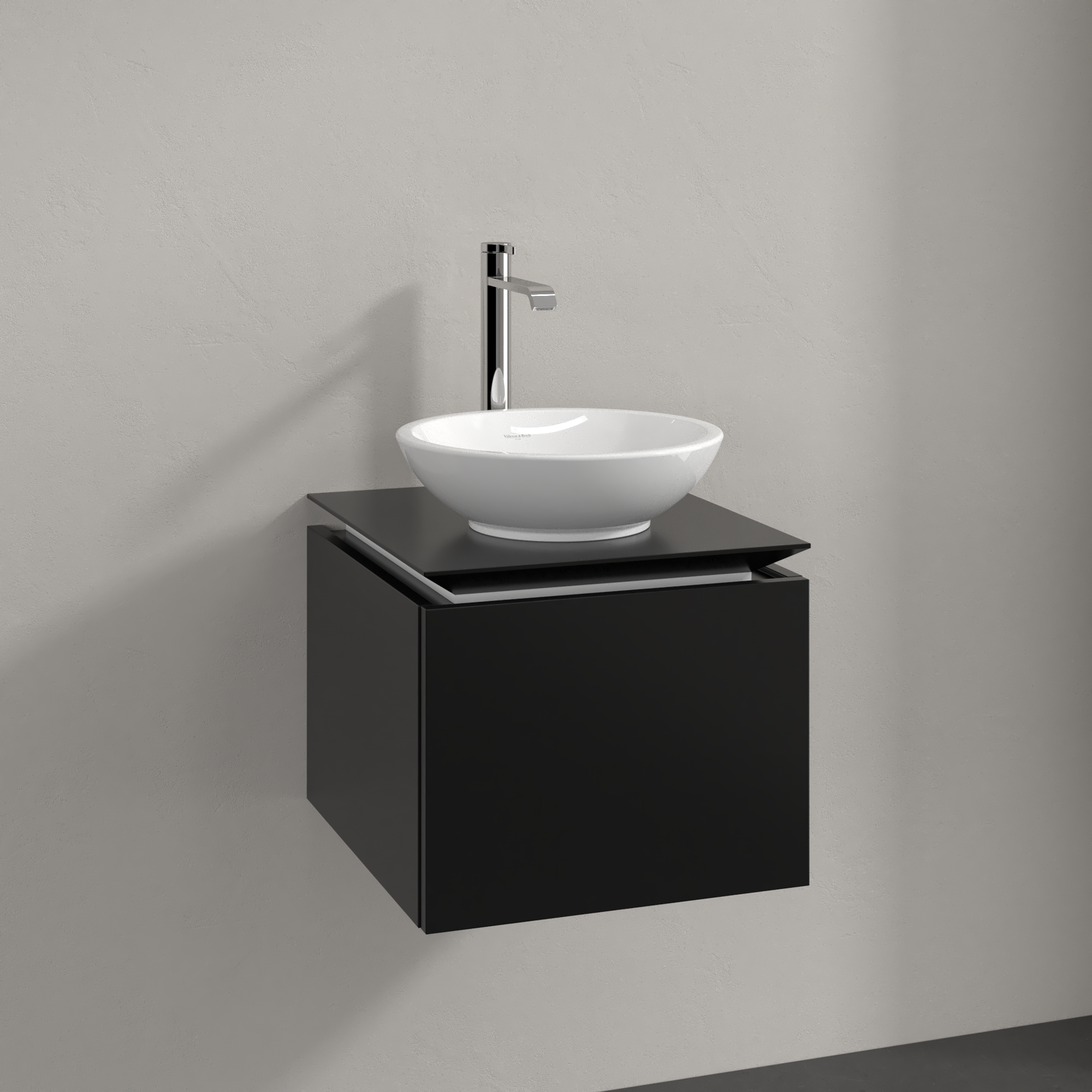Legato Waschbeckenunterschrank, 1 Auszug, 450x380x500mm, Korpus: Black Matt Lacquer, Front: Black Matt Lacquer