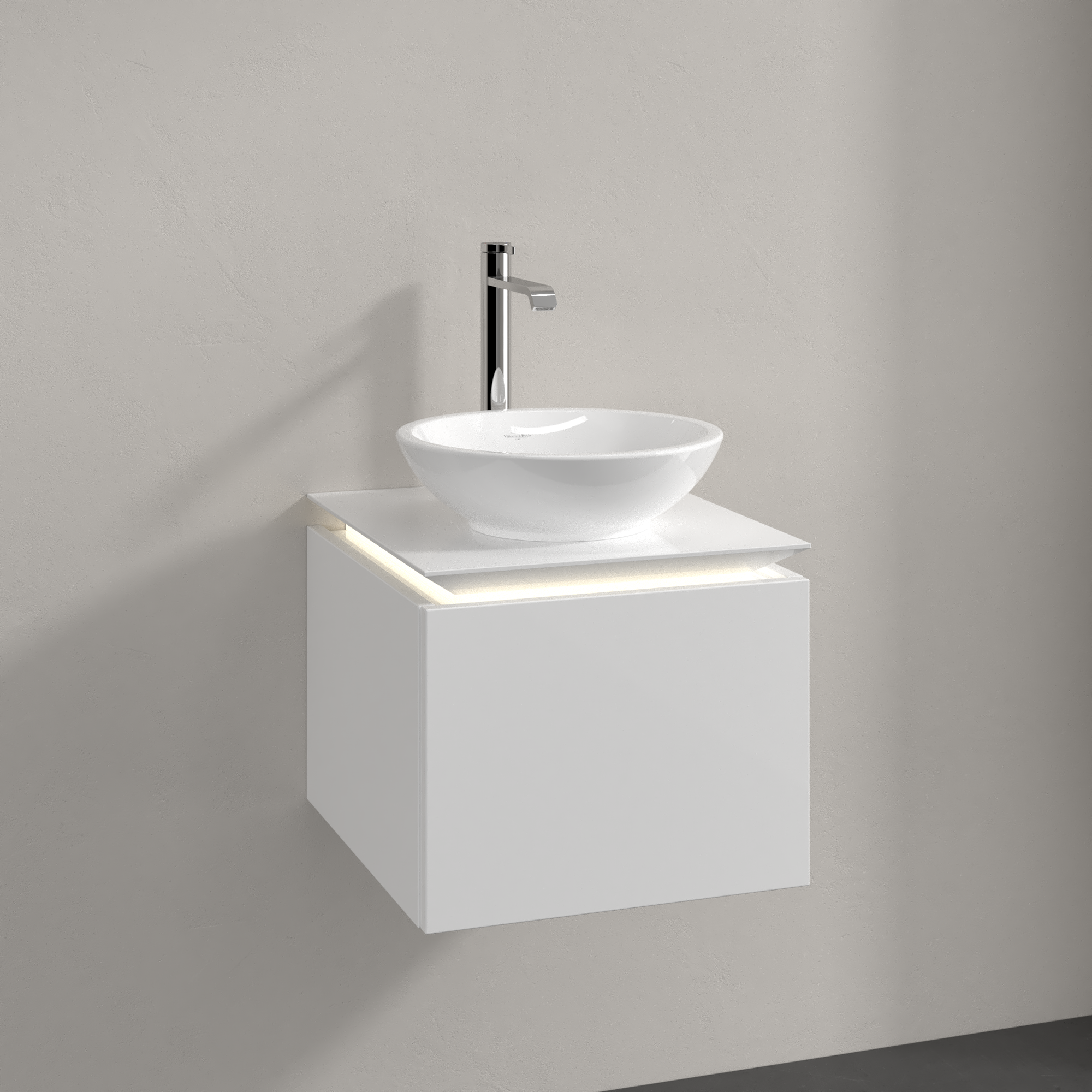 Legato Waschbeckenunterschrank, mit Beleuchtung, 1 Auszug, 450x380x500mm, Korpus: Glossy White, Front: Glossy White