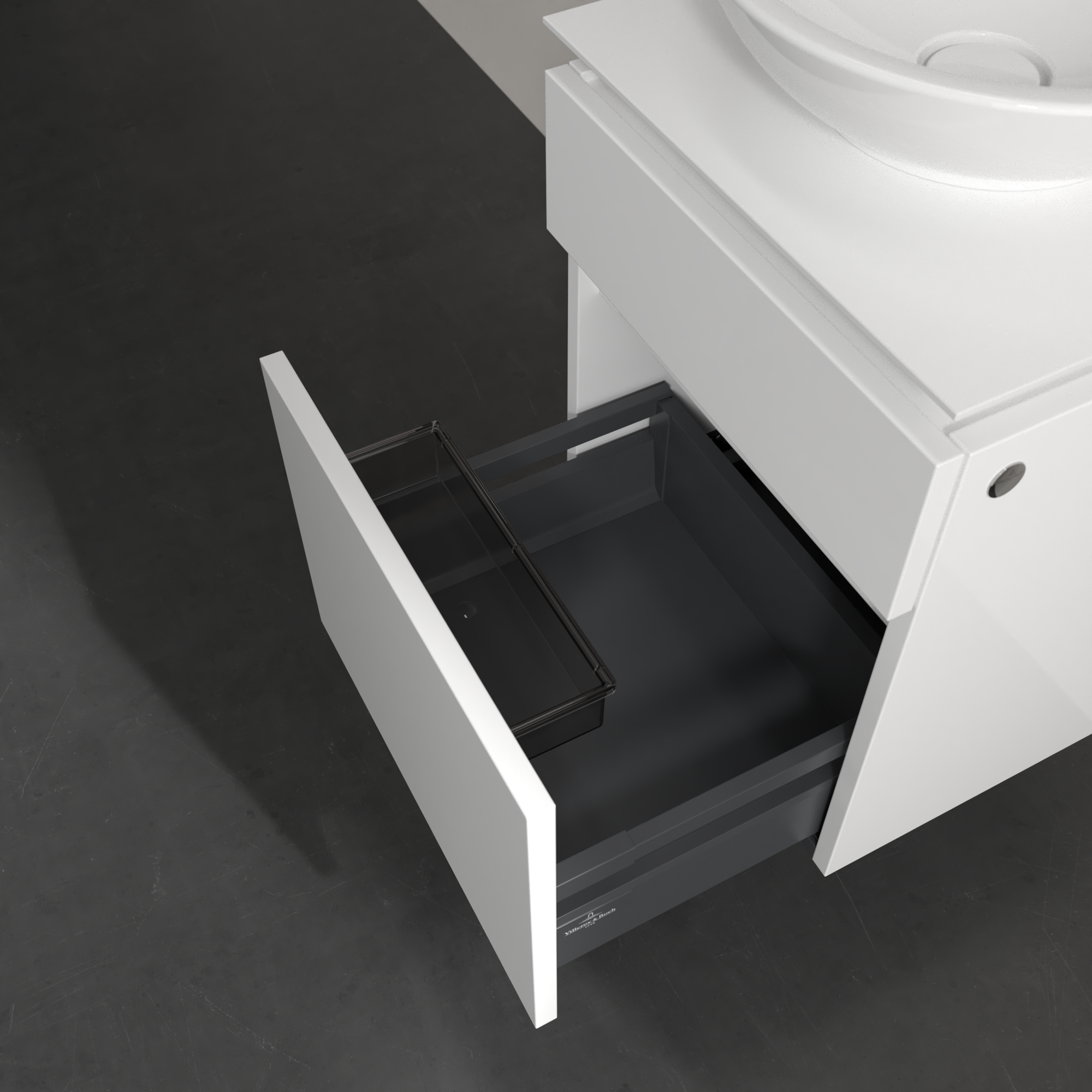 Legato Waschbeckenunterschrank, 2 Auszüge, 450x550x500mm, Korpus: Glossy White, Front: Glossy White