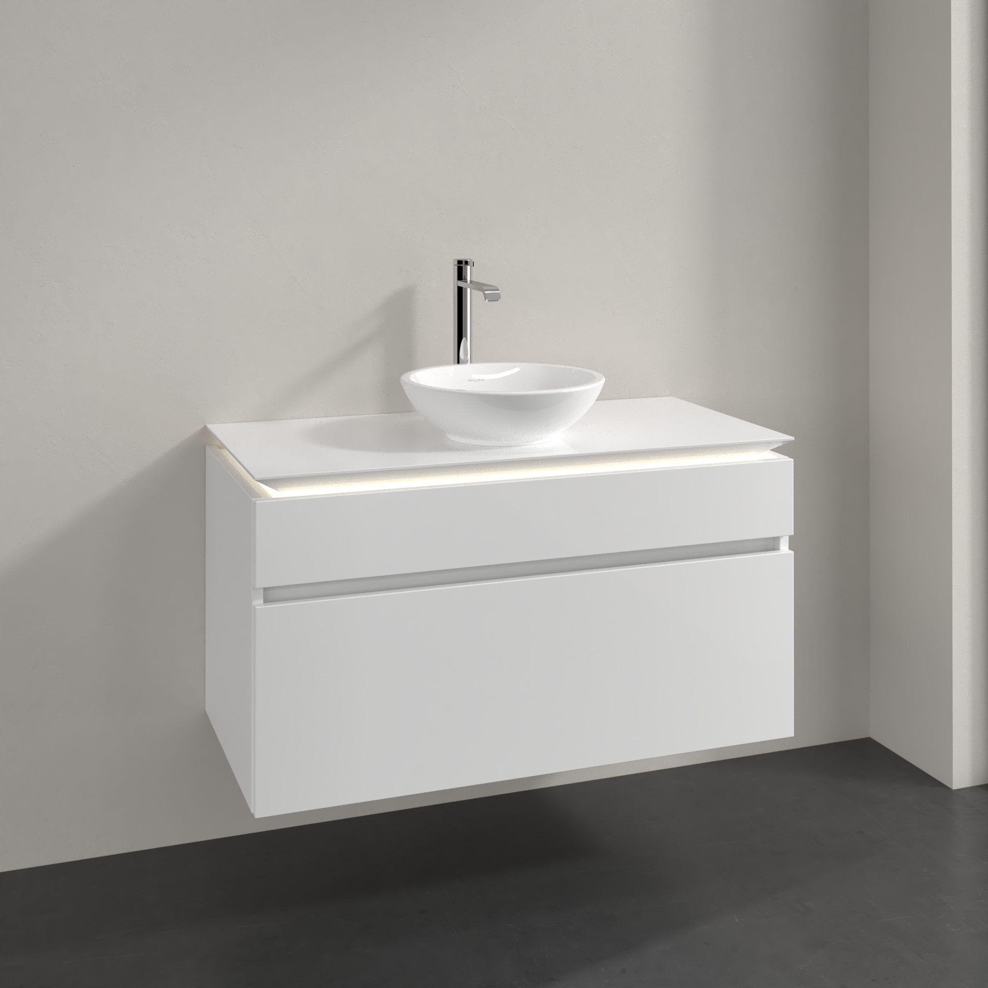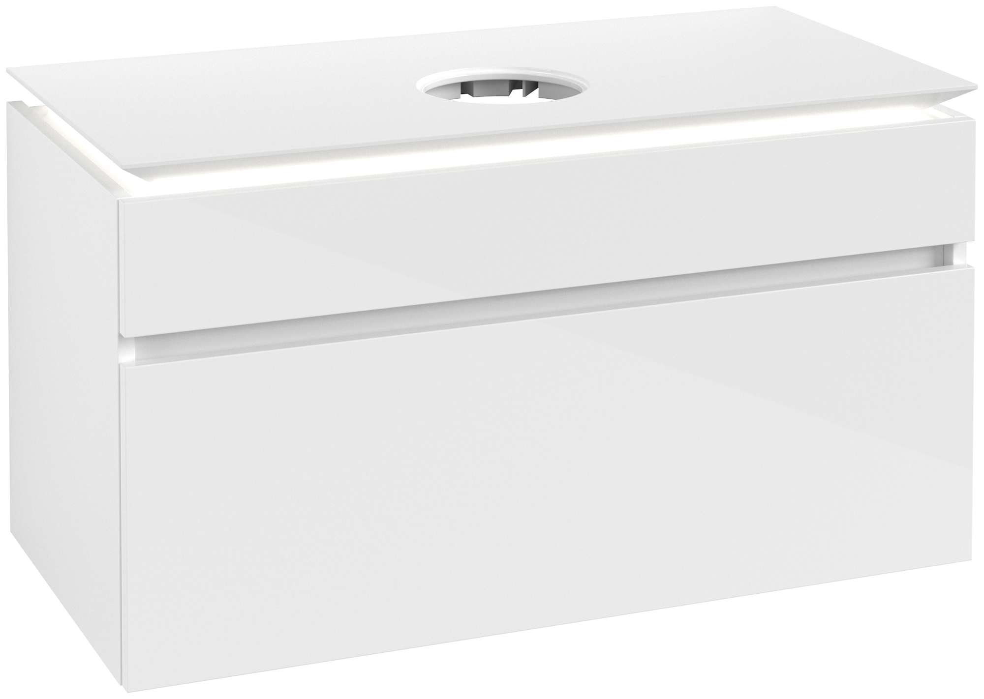 Legato Waschbeckenunterschrank, mit Beleuchtung, 2 Auszüge, 1000x550x500mm, Korpus: Glossy White, Front: Glossy White