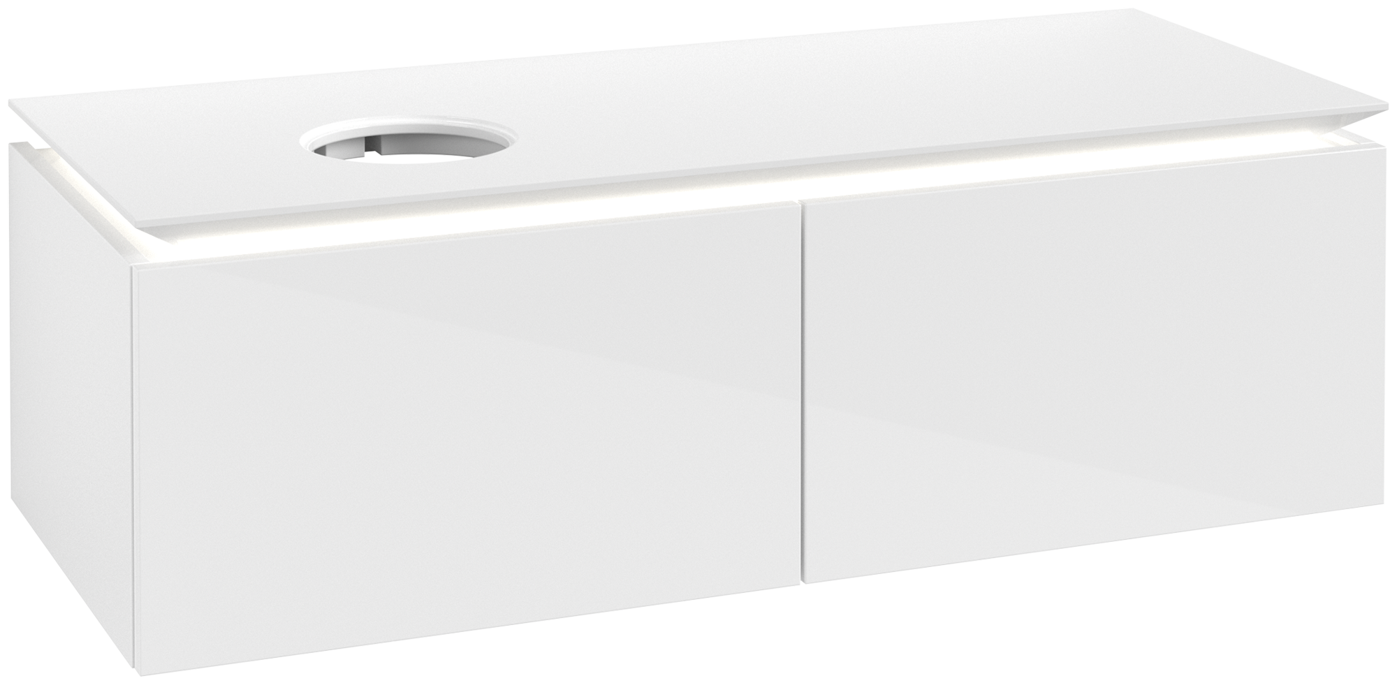 Legato Waschbeckenunterschrank, mit Beleuchtung, 2 Auszüge, 1200x380x500mm, Korpus: Glossy White, Front: Glossy White