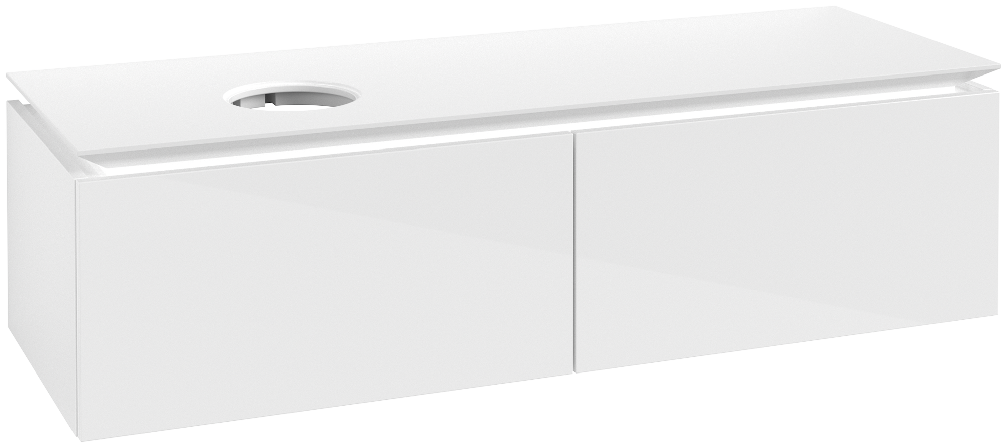 Legato Waschbeckenunterschrank, 2 Auszüge, 1400x380x500mm, Korpus: Glossy White, Front: Glossy White