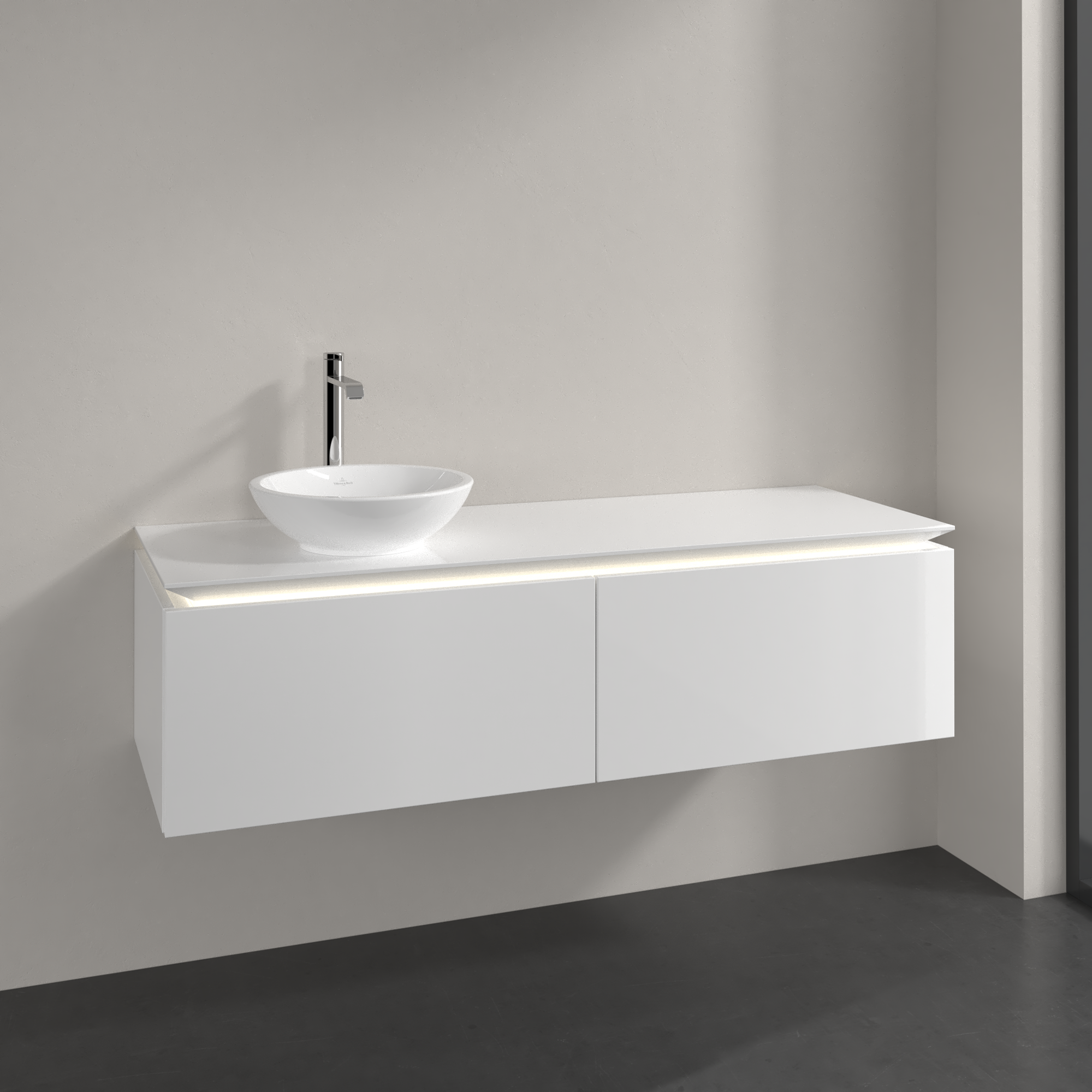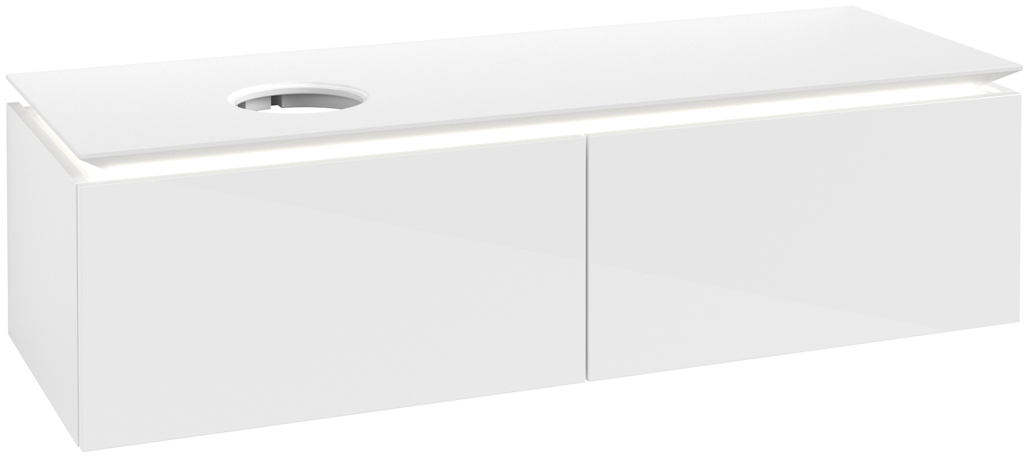 Legato Waschbeckenunterschrank, mit Beleuchtung, 2 Auszüge, 1400x380x500mm, Korpus: Glossy White, Front: Glossy White