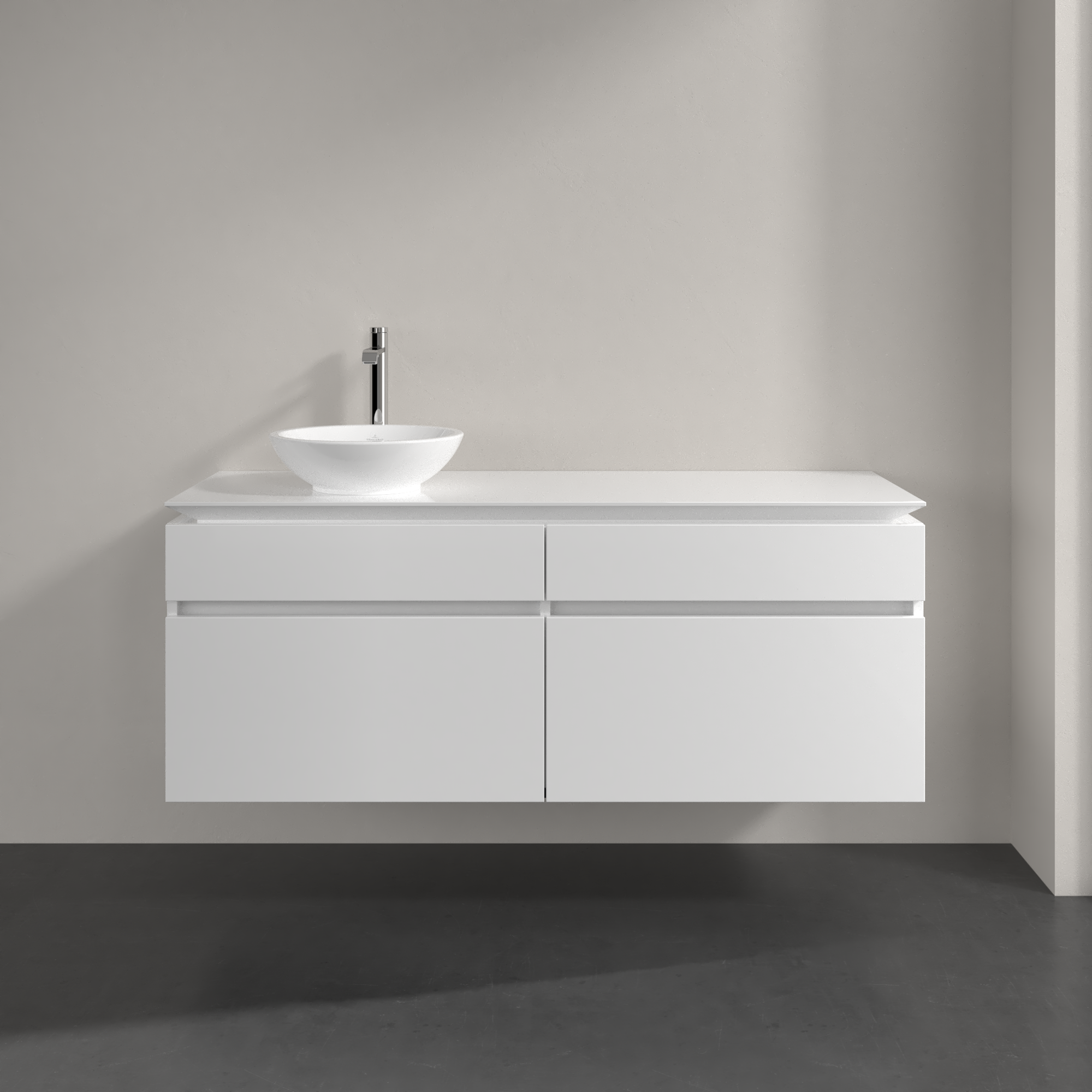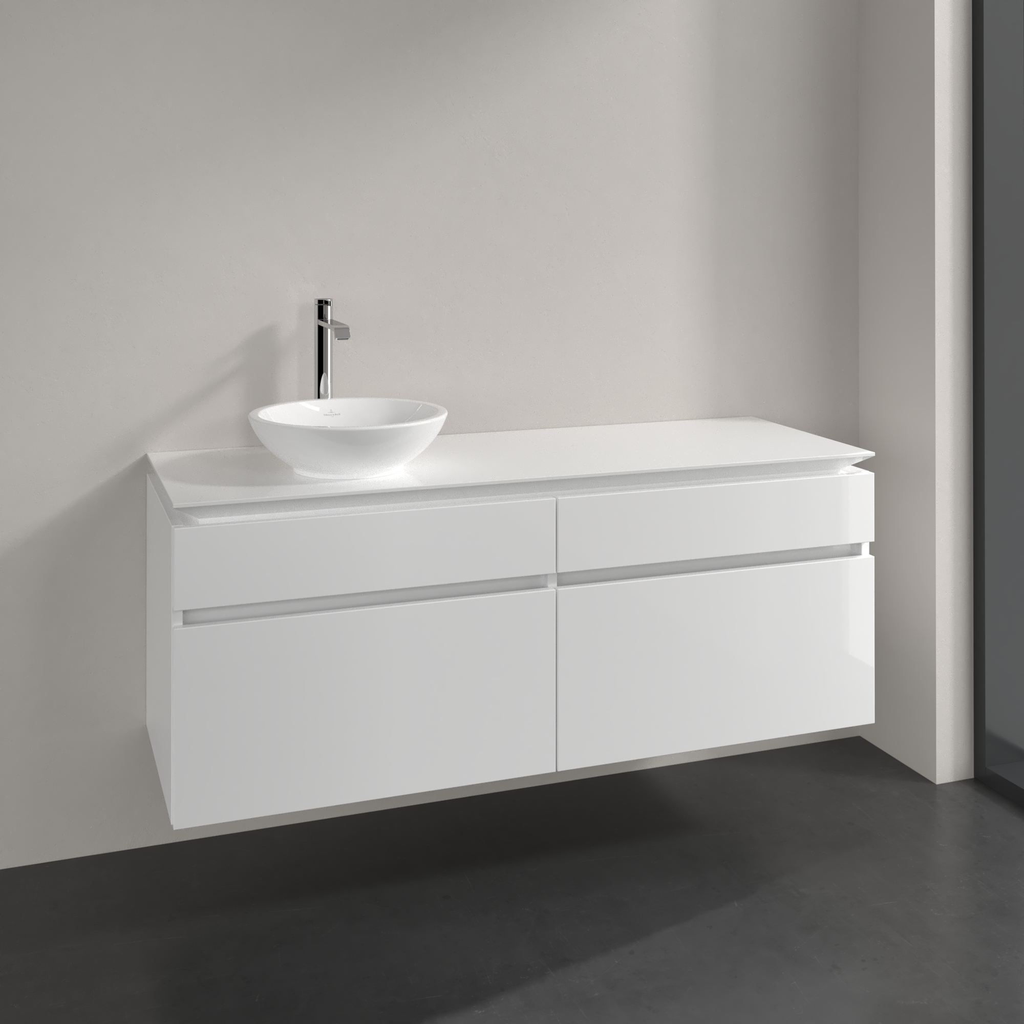 Legato Waschbeckenunterschrank, 4 Auszüge, 1400x550x500mm, Korpus: Glossy White, Front: Glossy White