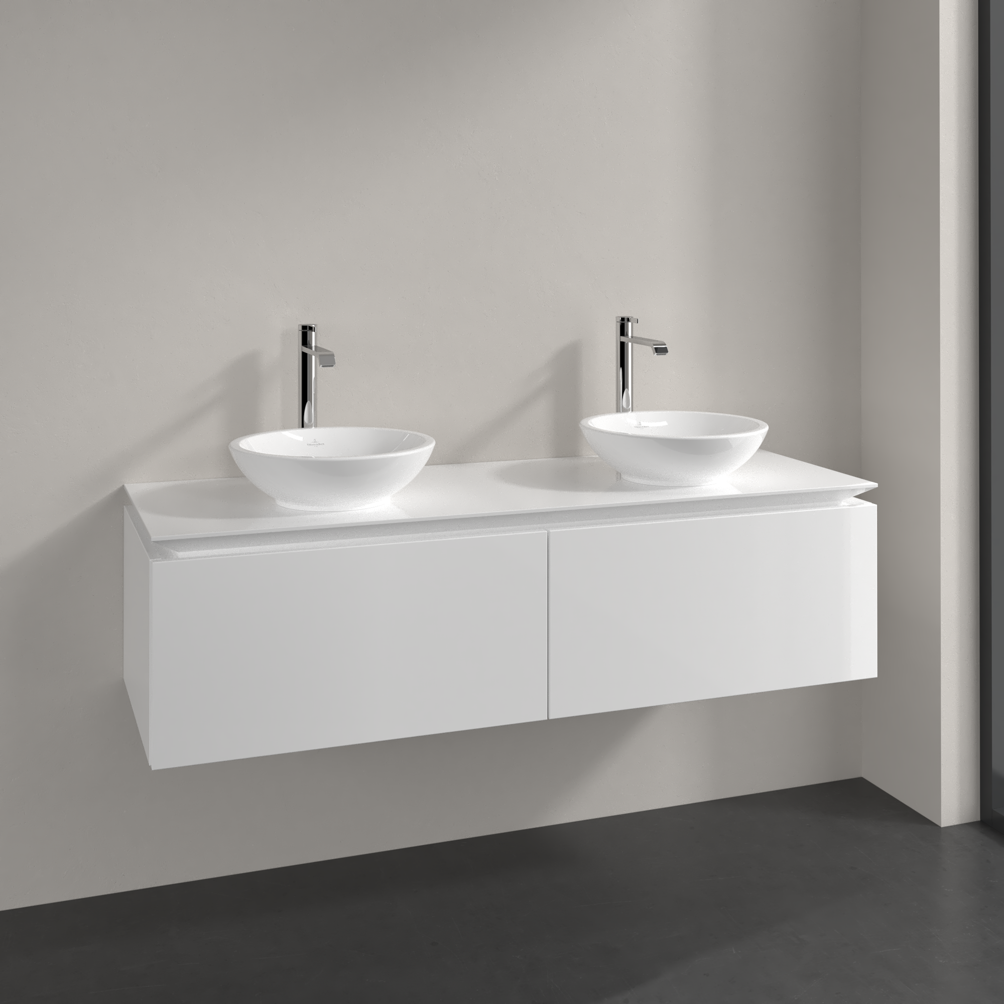 Legato Waschbeckenunterschrank, 2 Auszüge, 1400x380x500mm, Korpus: Glossy White, Front: Glossy White