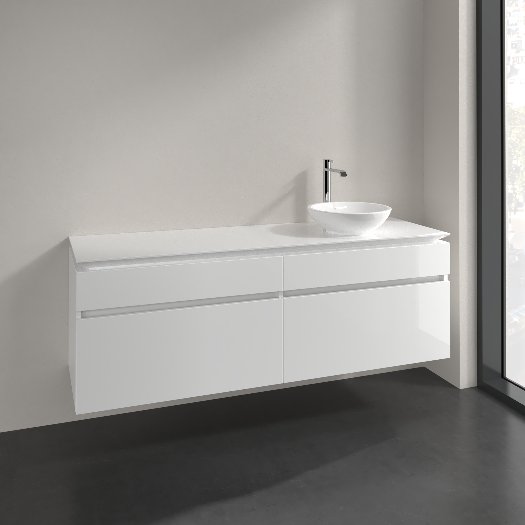 Legato Waschbeckenunterschrank, 4 Auszüge, 1600x550x500mm, Korpus: Glossy White, Front: Glossy White