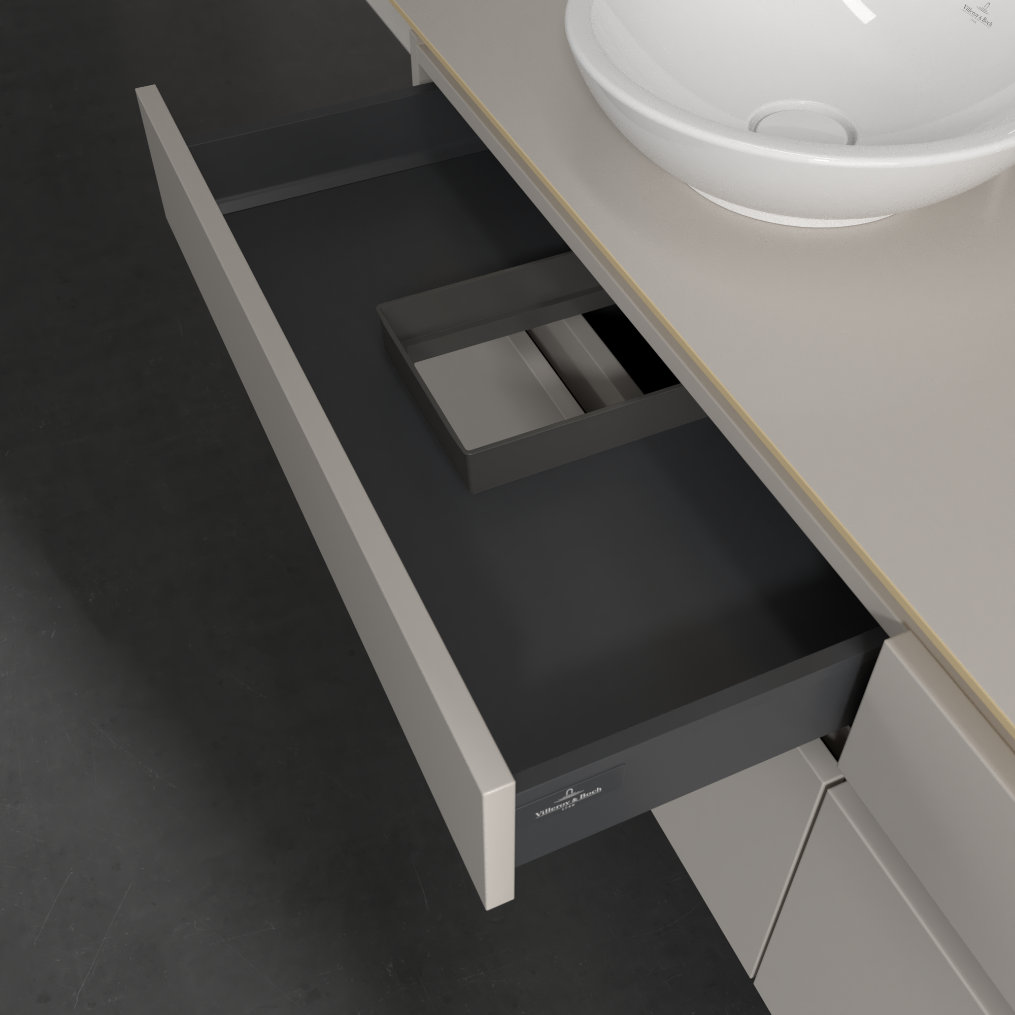 Legato Waschbeckenunterschrank, 4 Auszüge, 1600x550x500mm, Korpus: Soft Grey, Front: Soft Grey