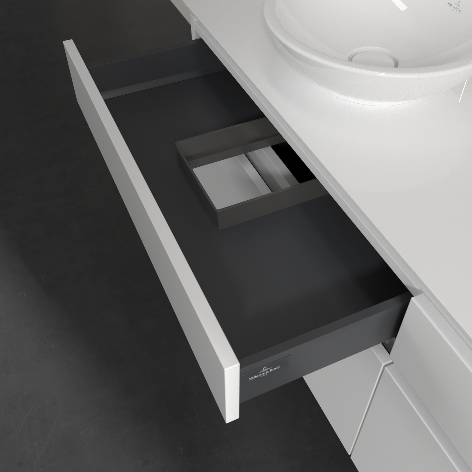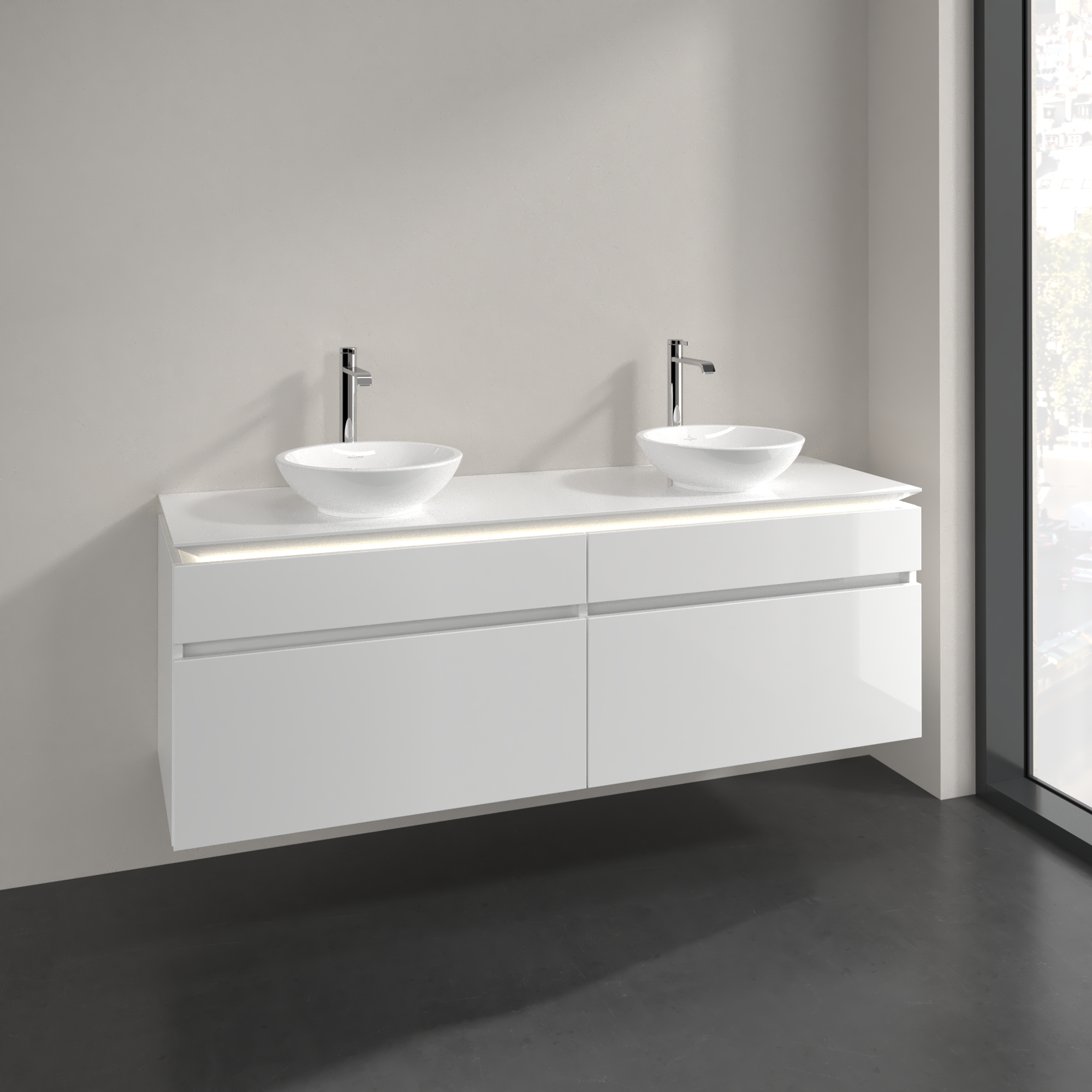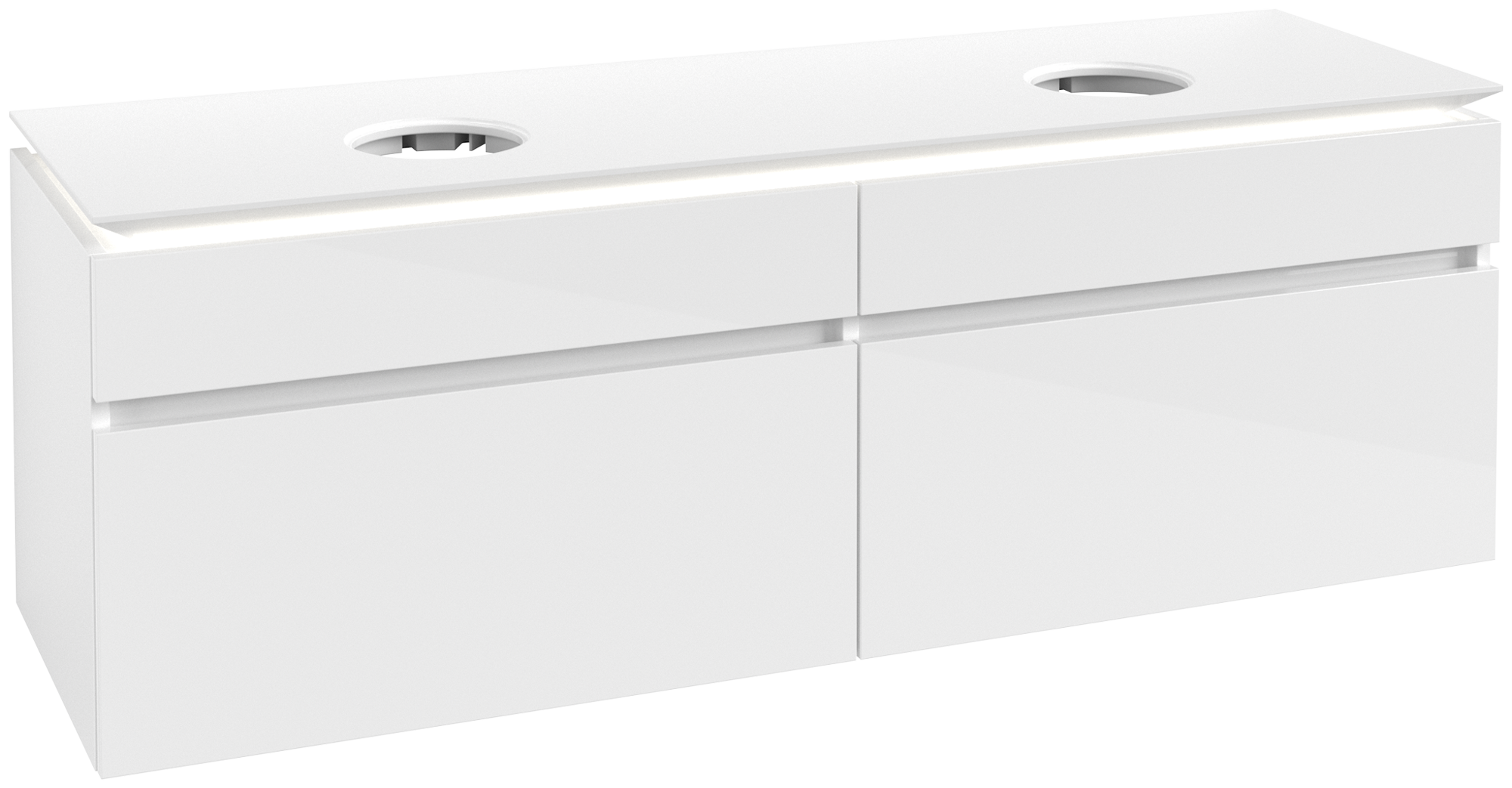 Legato Waschbeckenunterschrank, mit Beleuchtung, 4 Auszüge, 1600x550x500mm, Korpus: Glossy White, Front: Glossy White