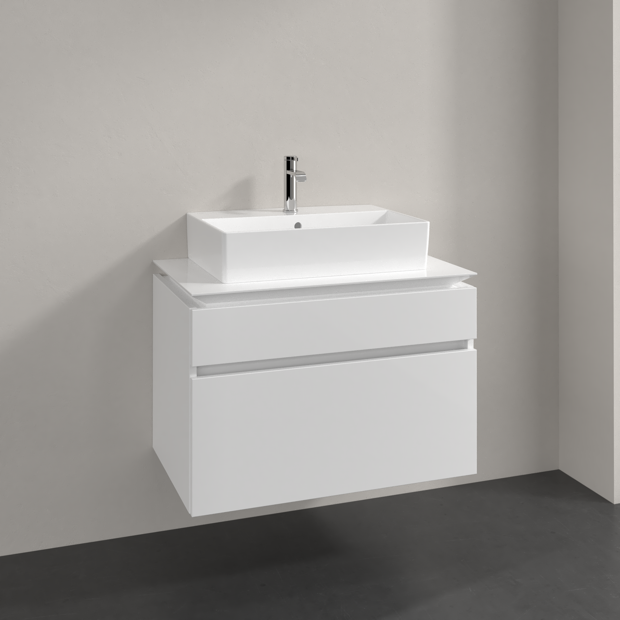 Legato Waschbeckenunterschrank, 2 Auszüge, 800x550x500mm, Korpus: Glossy White, Front: Glossy White