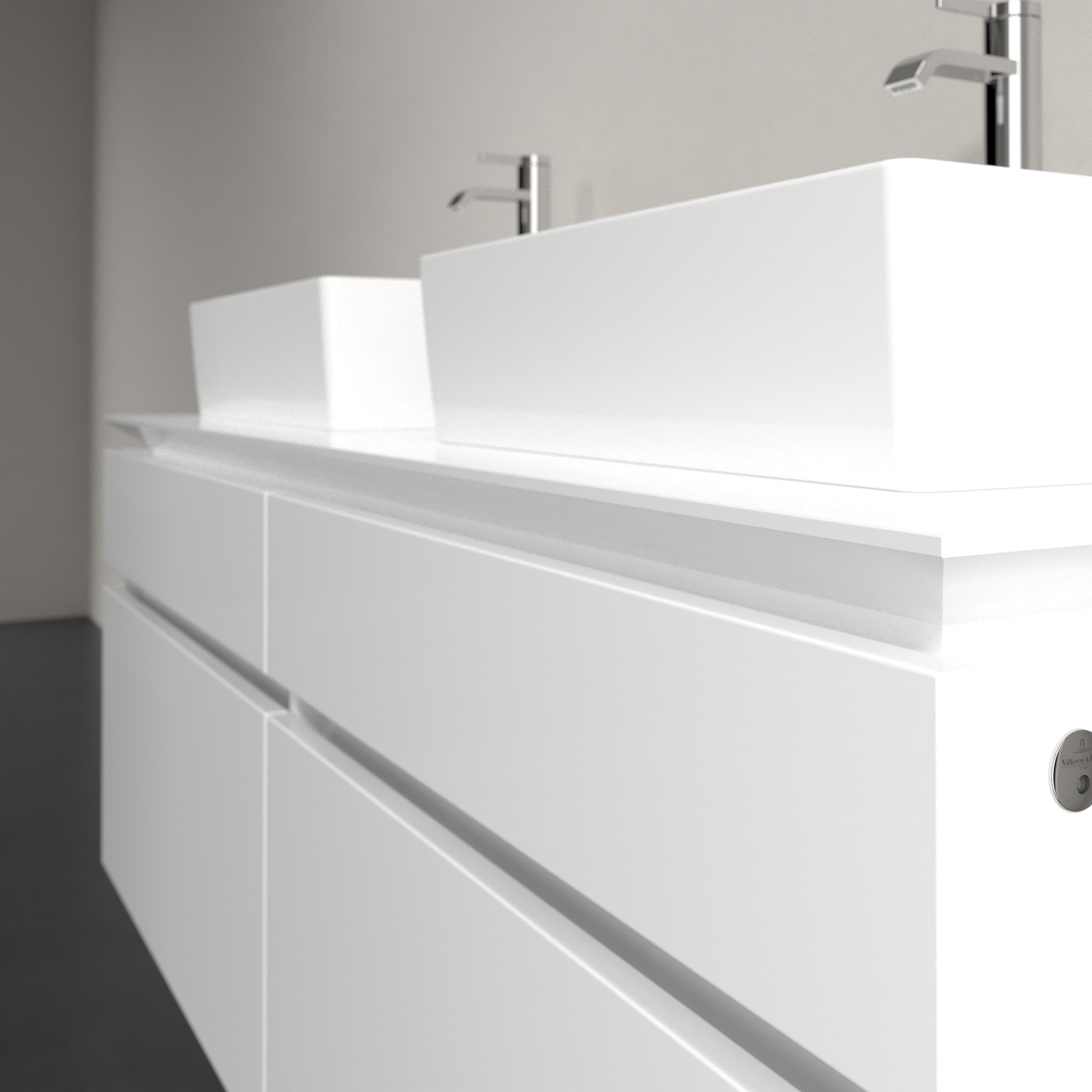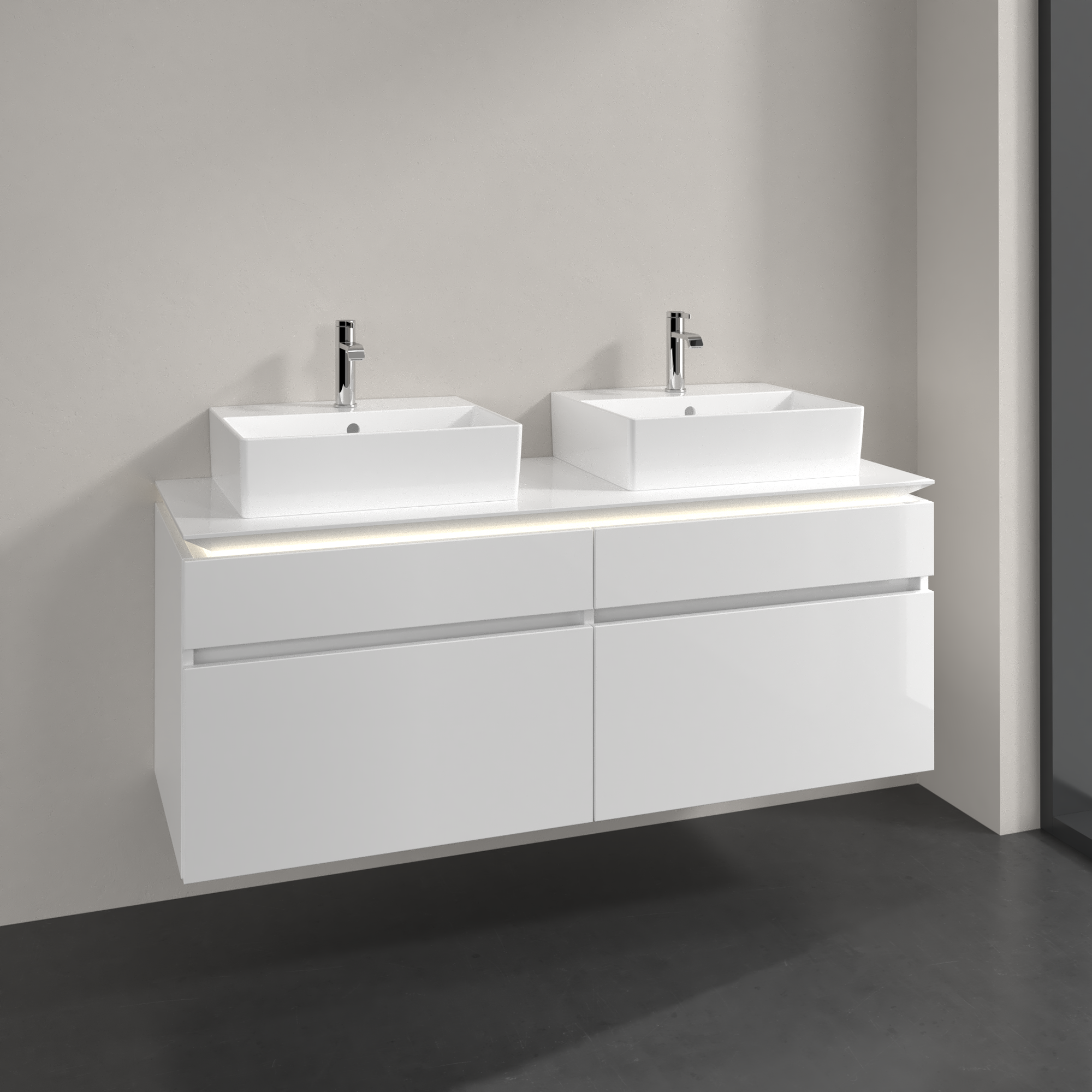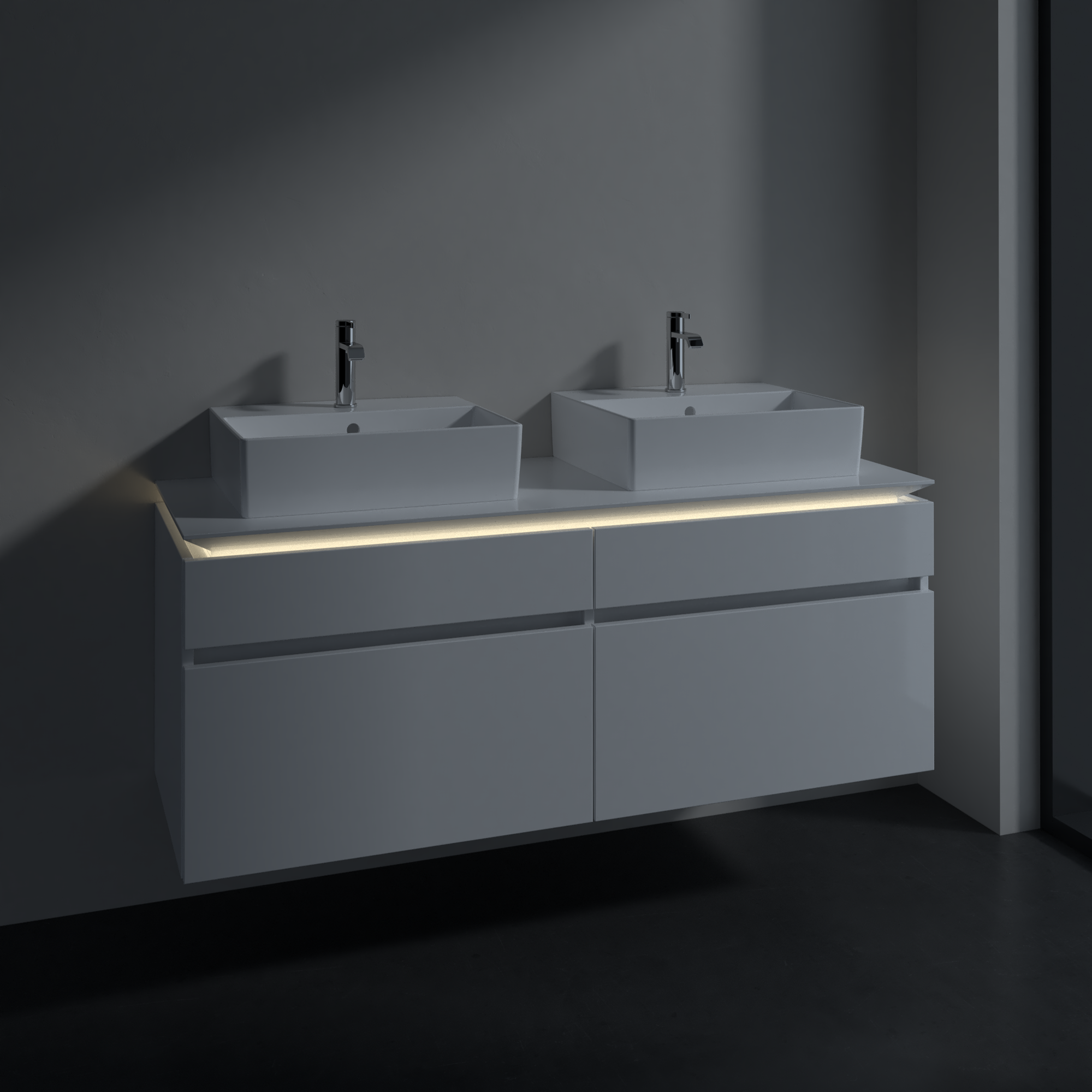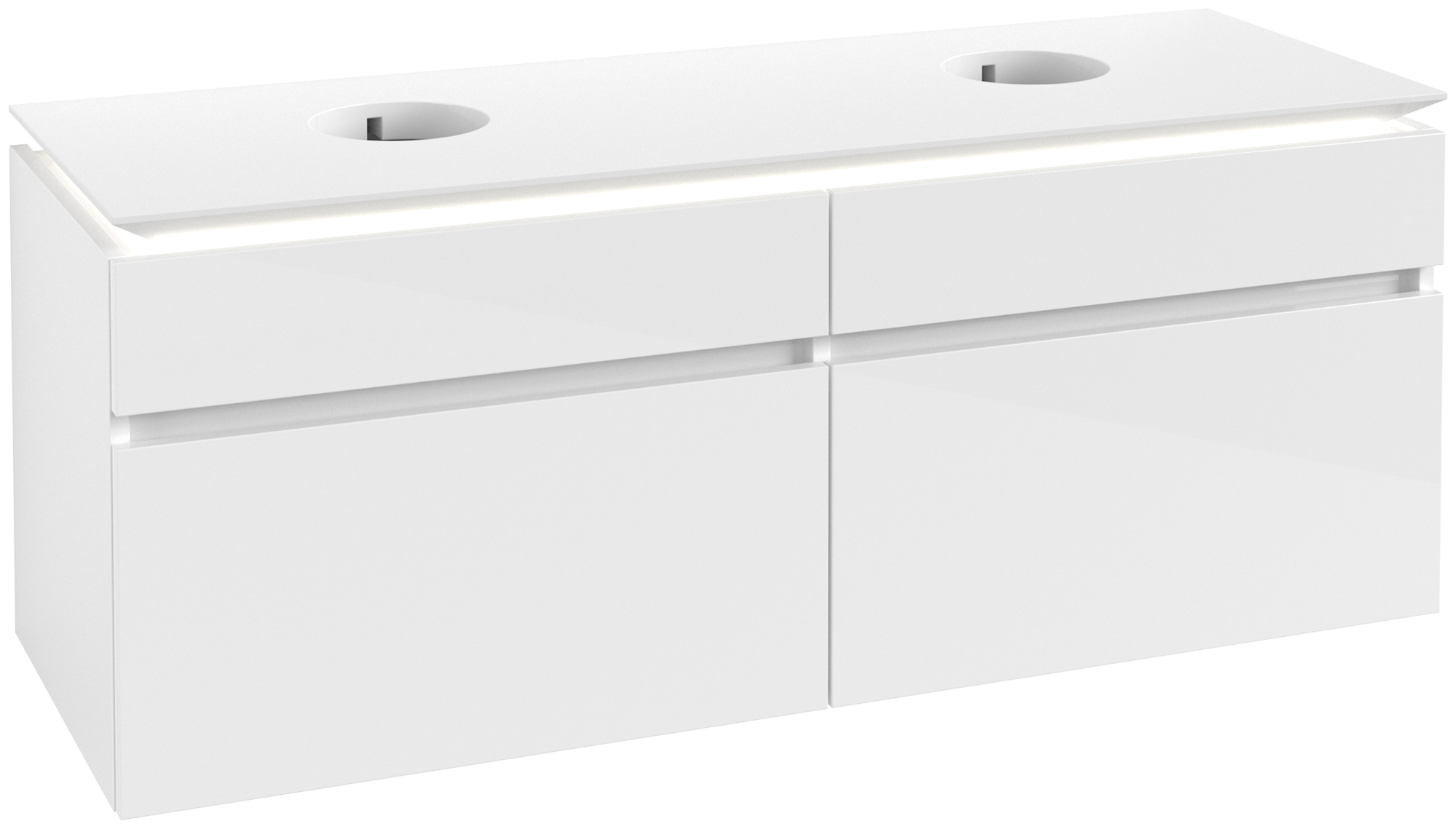 Legato Waschbeckenunterschrank, mit Beleuchtung, 4 Auszüge, 1400x550x500mm, Korpus: Glossy White, Front: Glossy White