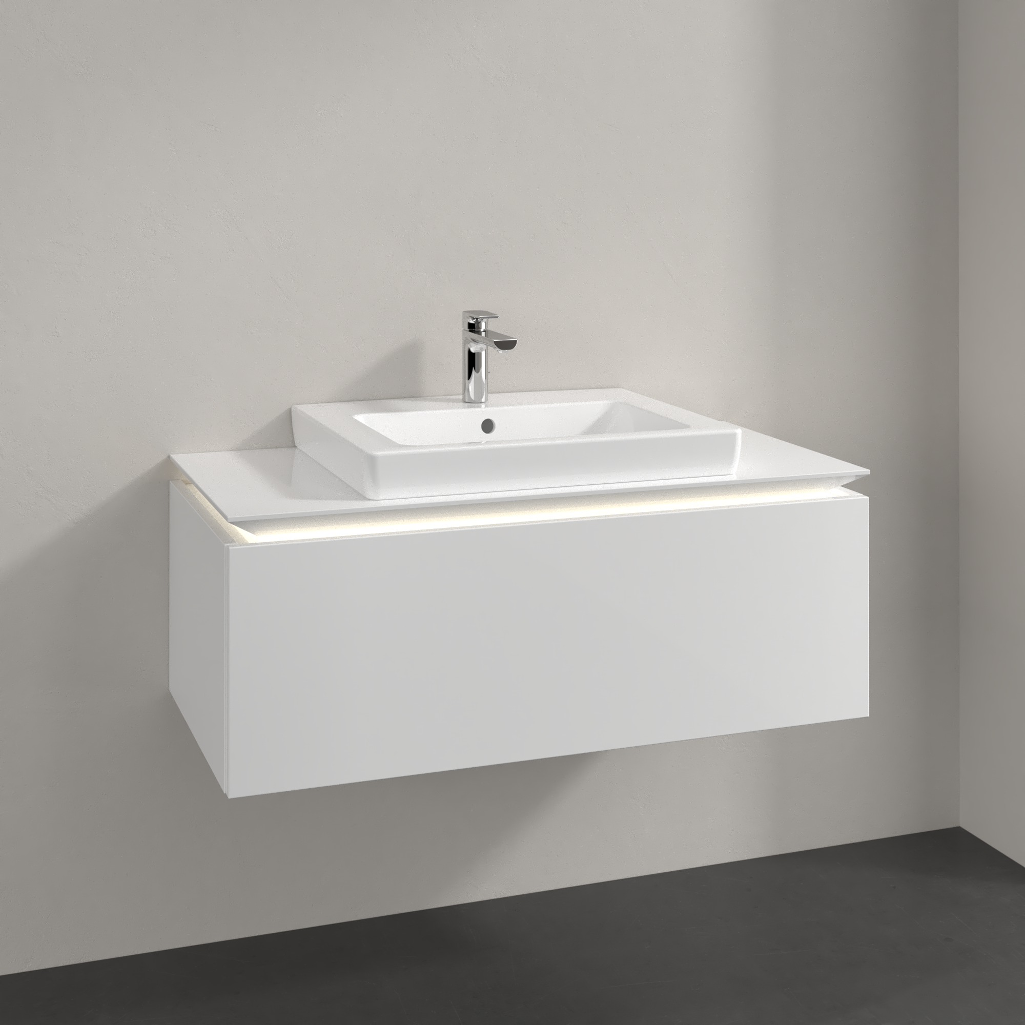 Legato Waschbeckenunterschrank, mit Beleuchtung, 1 Auszug, 1000x380x500mm, Korpus: Glossy White, Front: Glossy White