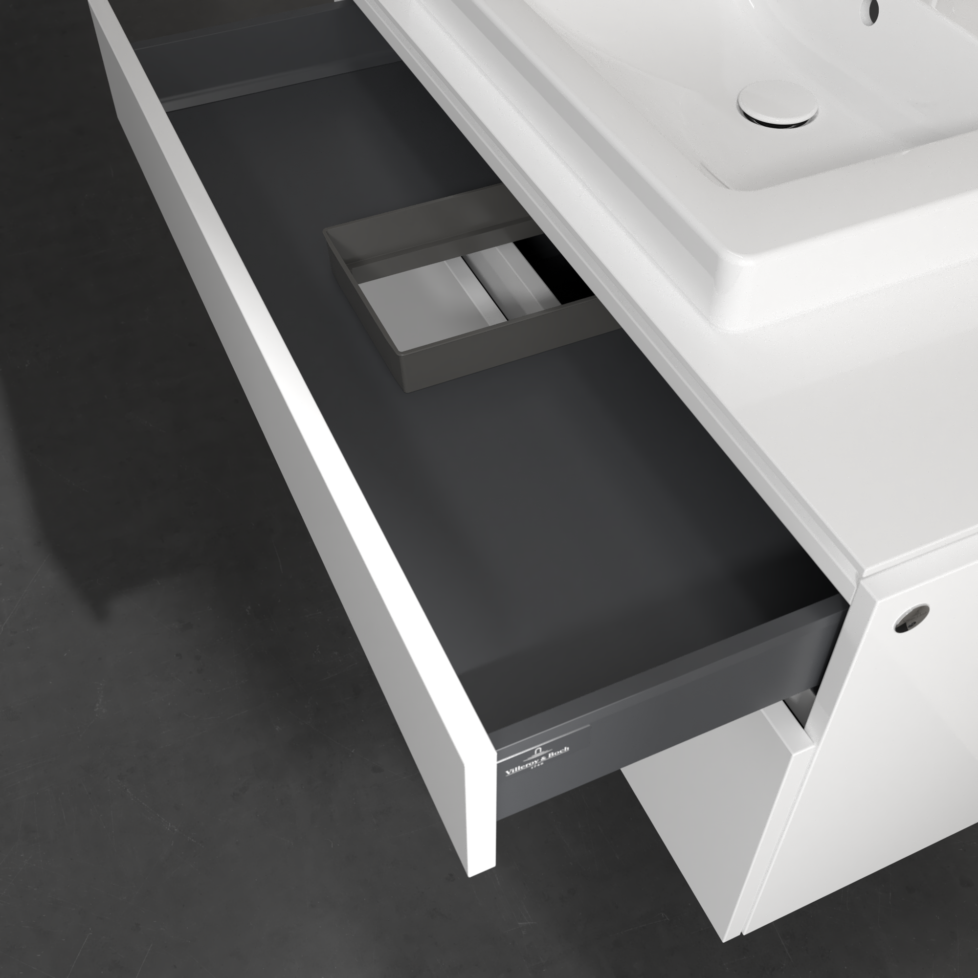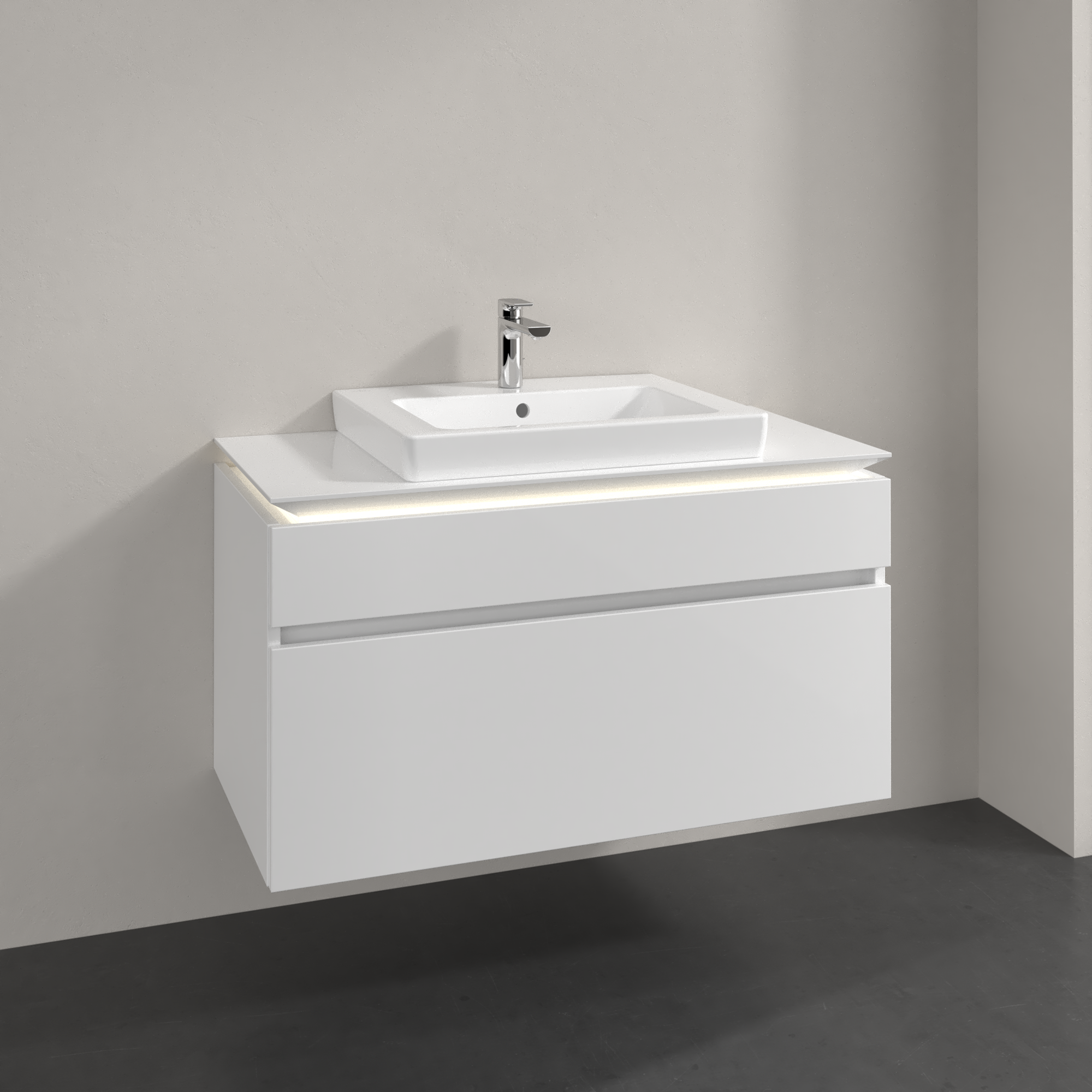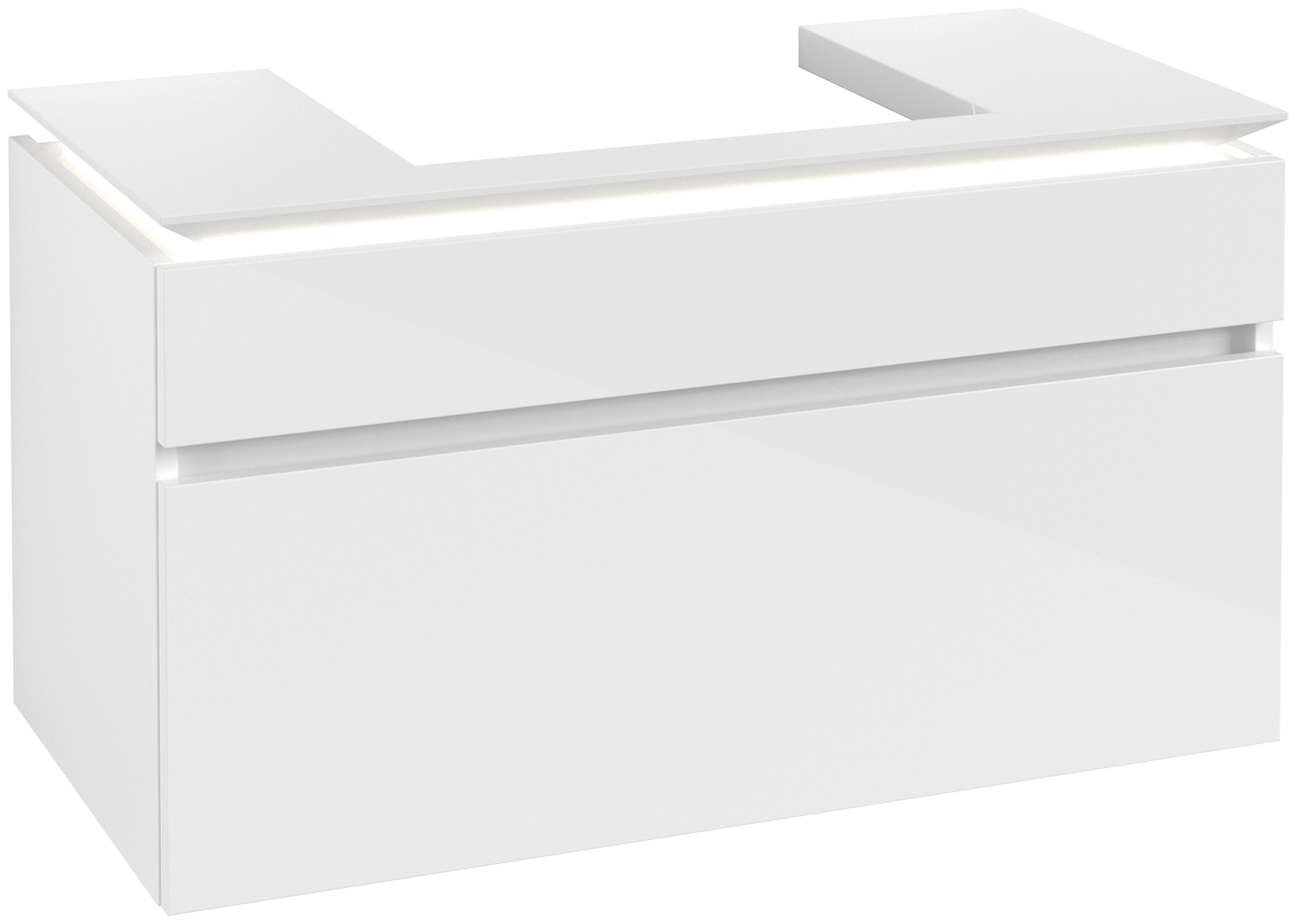 Legato Waschbeckenunterschrank, mit Beleuchtung, 2 Auszüge, 1000x550x500mm, Korpus: Glossy White, Front: Glossy White