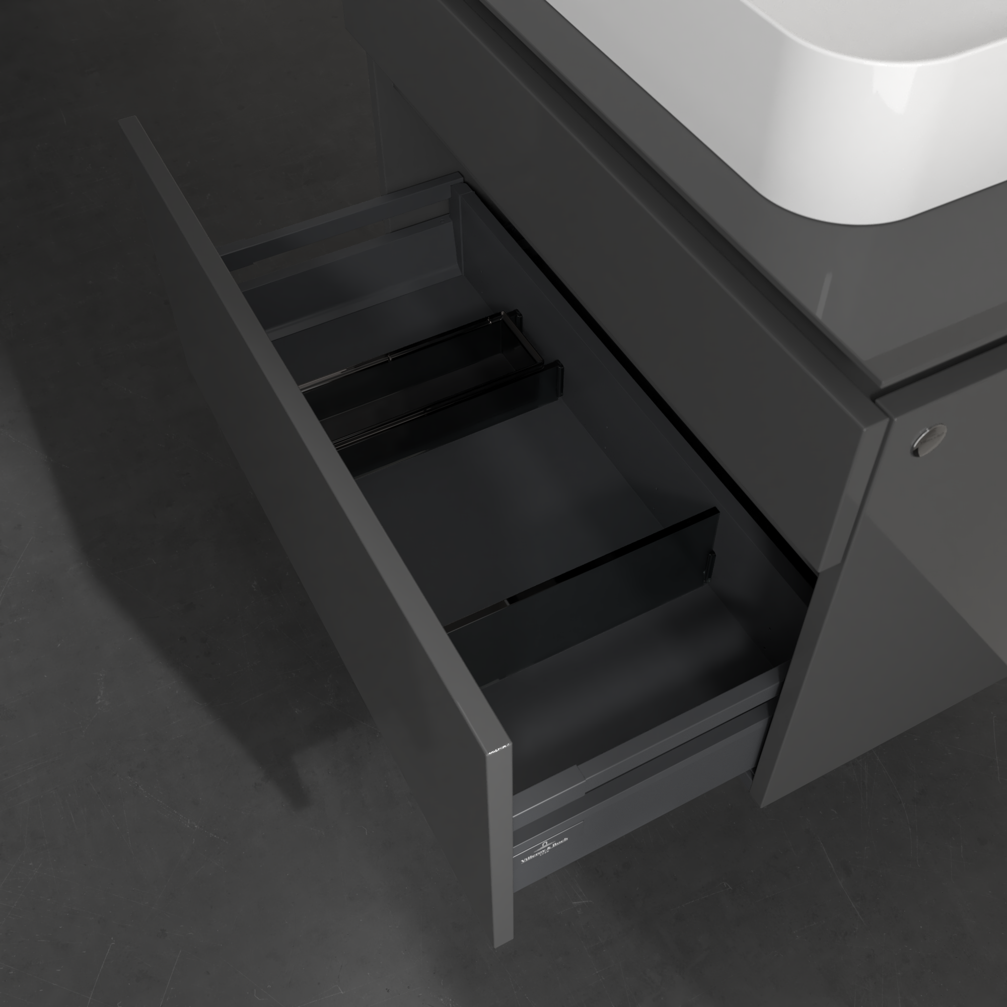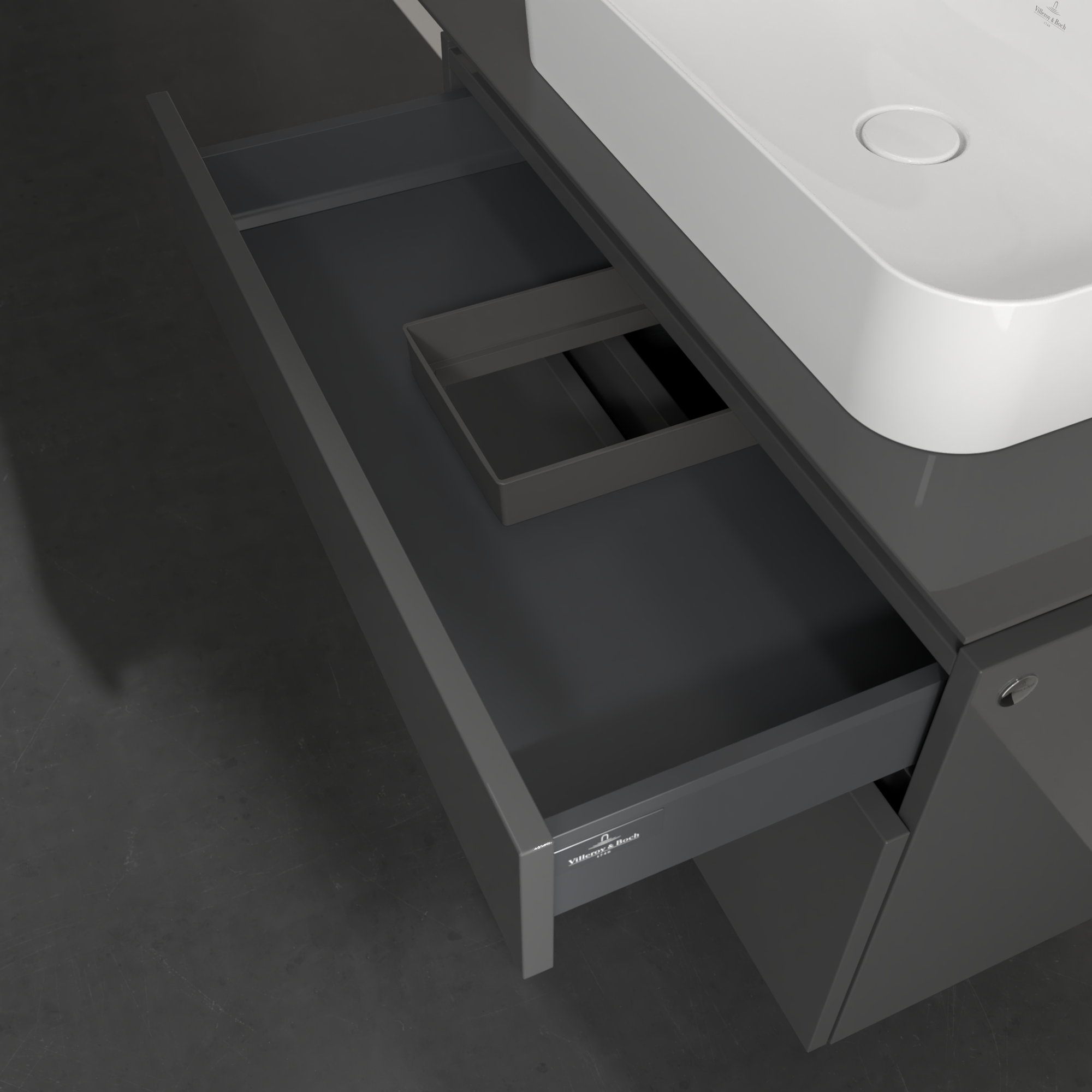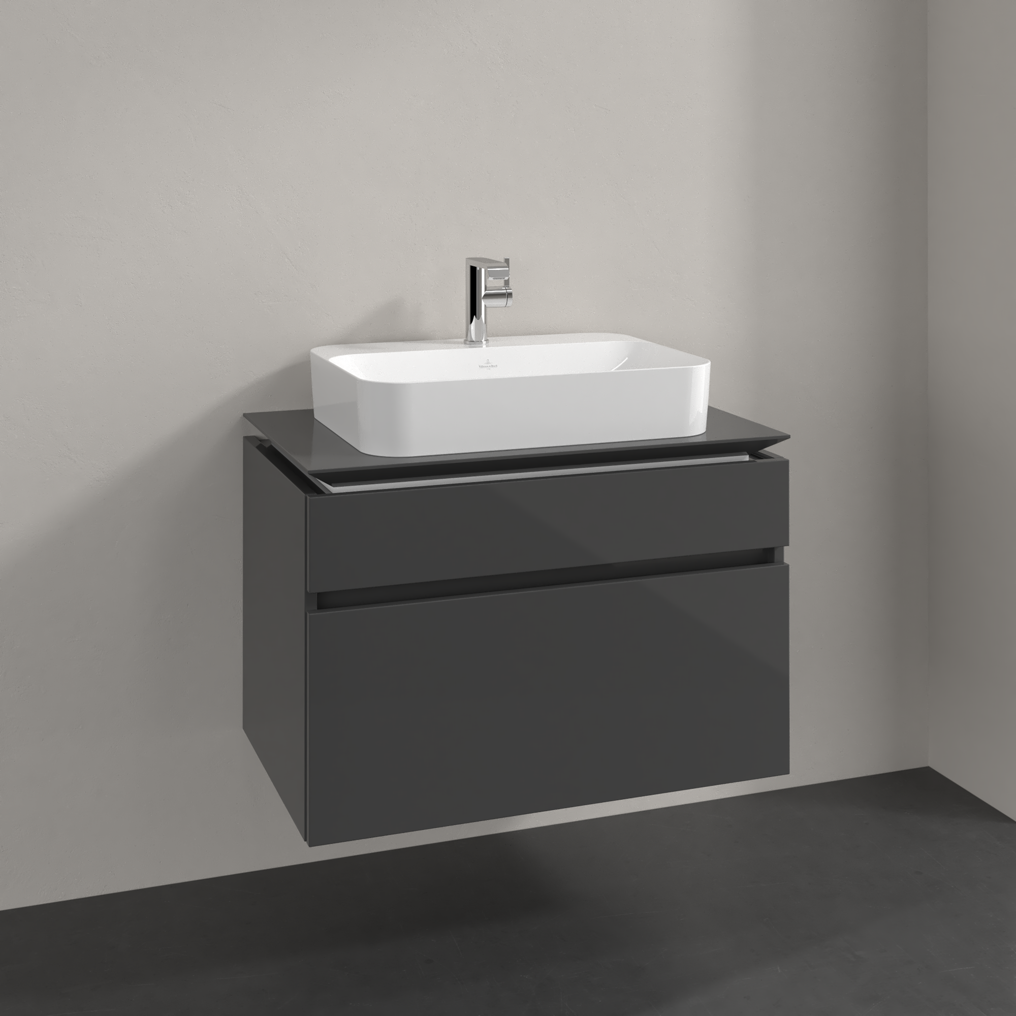 Legato Waschbeckenunterschrank, 2 Auszüge, 800x550x500mm, Korpus: Glossy Grey, Front: Glossy Grey