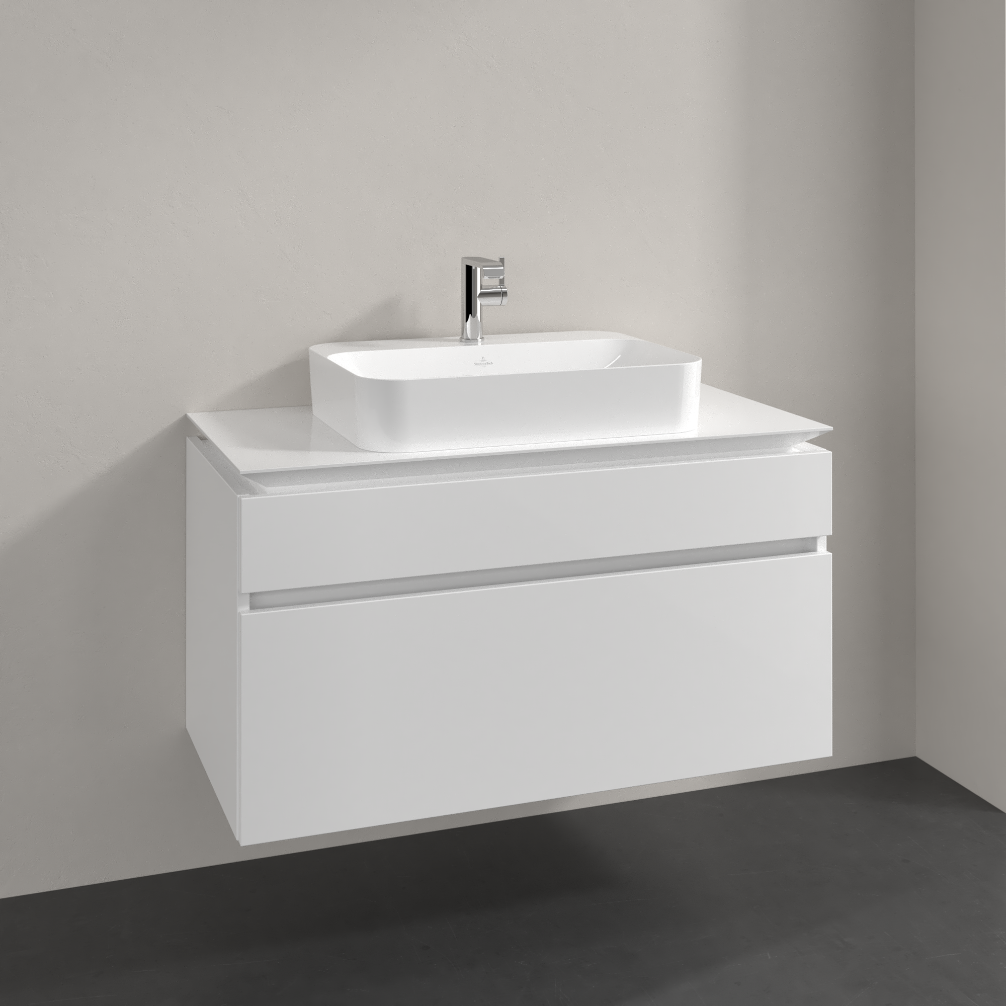 Legato Waschbeckenunterschrank, 2 Auszüge, 1000x550x500mm, Korpus: Glossy White, Front: Glossy White