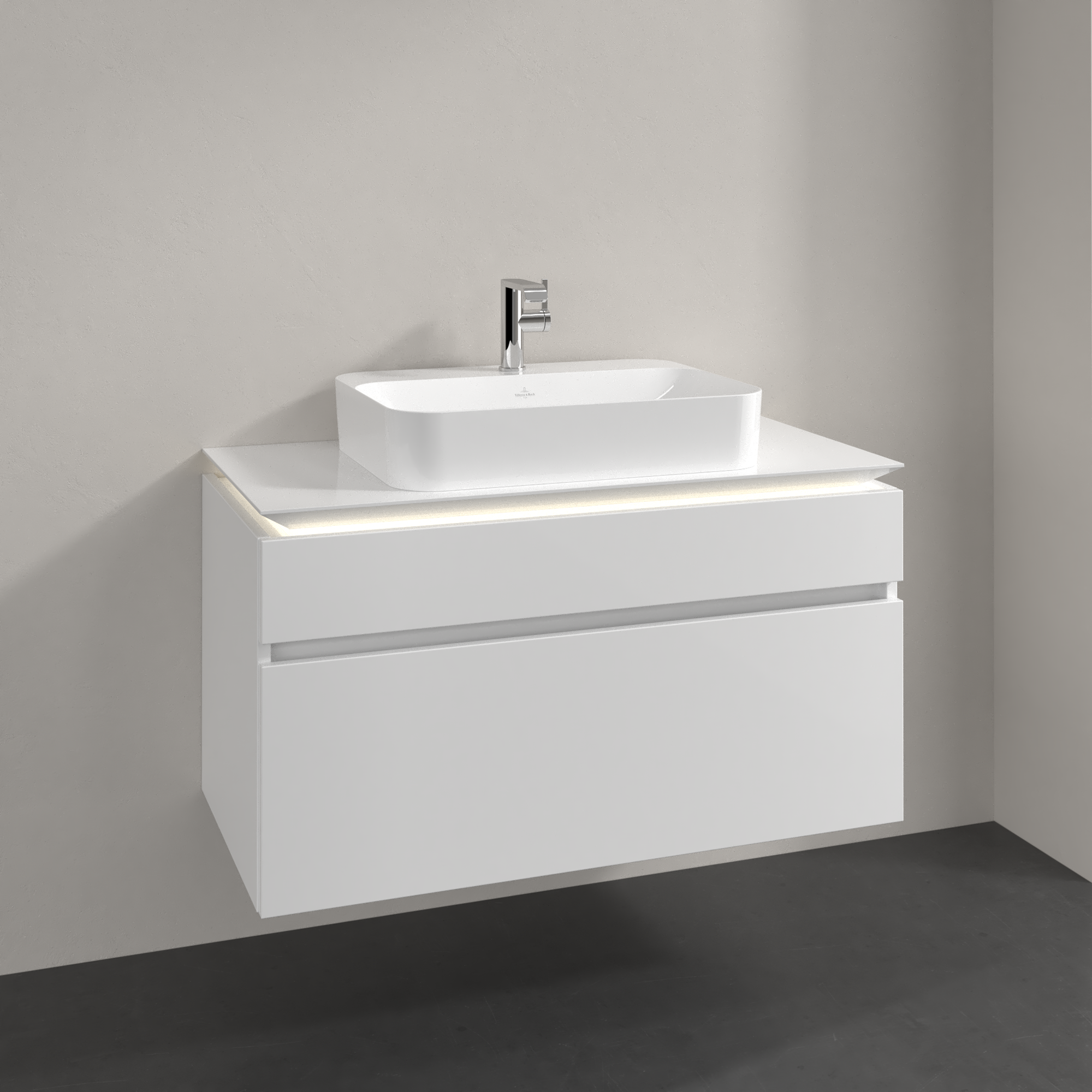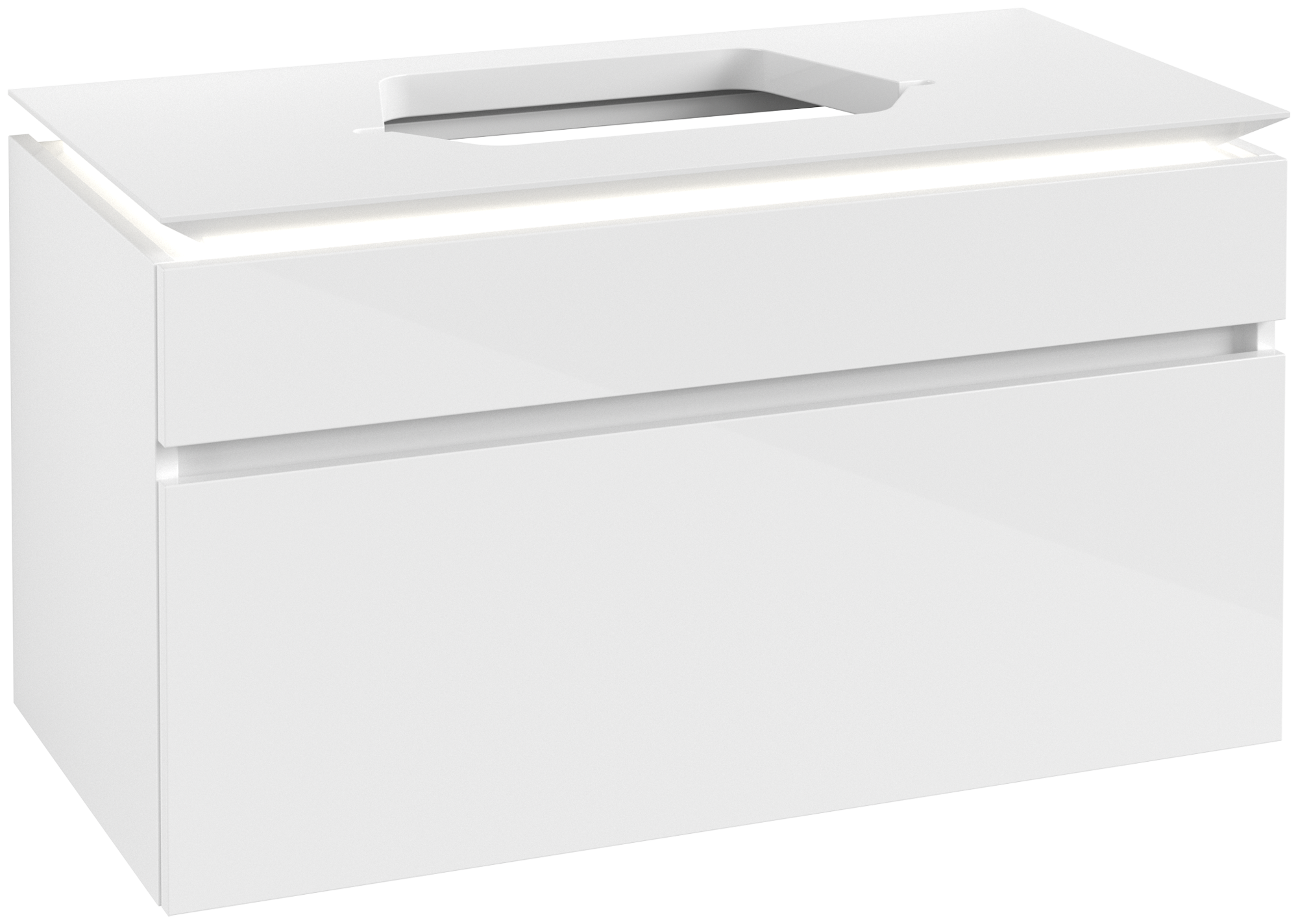 Legato Waschbeckenunterschrank, mit Beleuchtung, 2 Auszüge, 1000x550x500mm, Korpus: Glossy White, Front: Glossy White