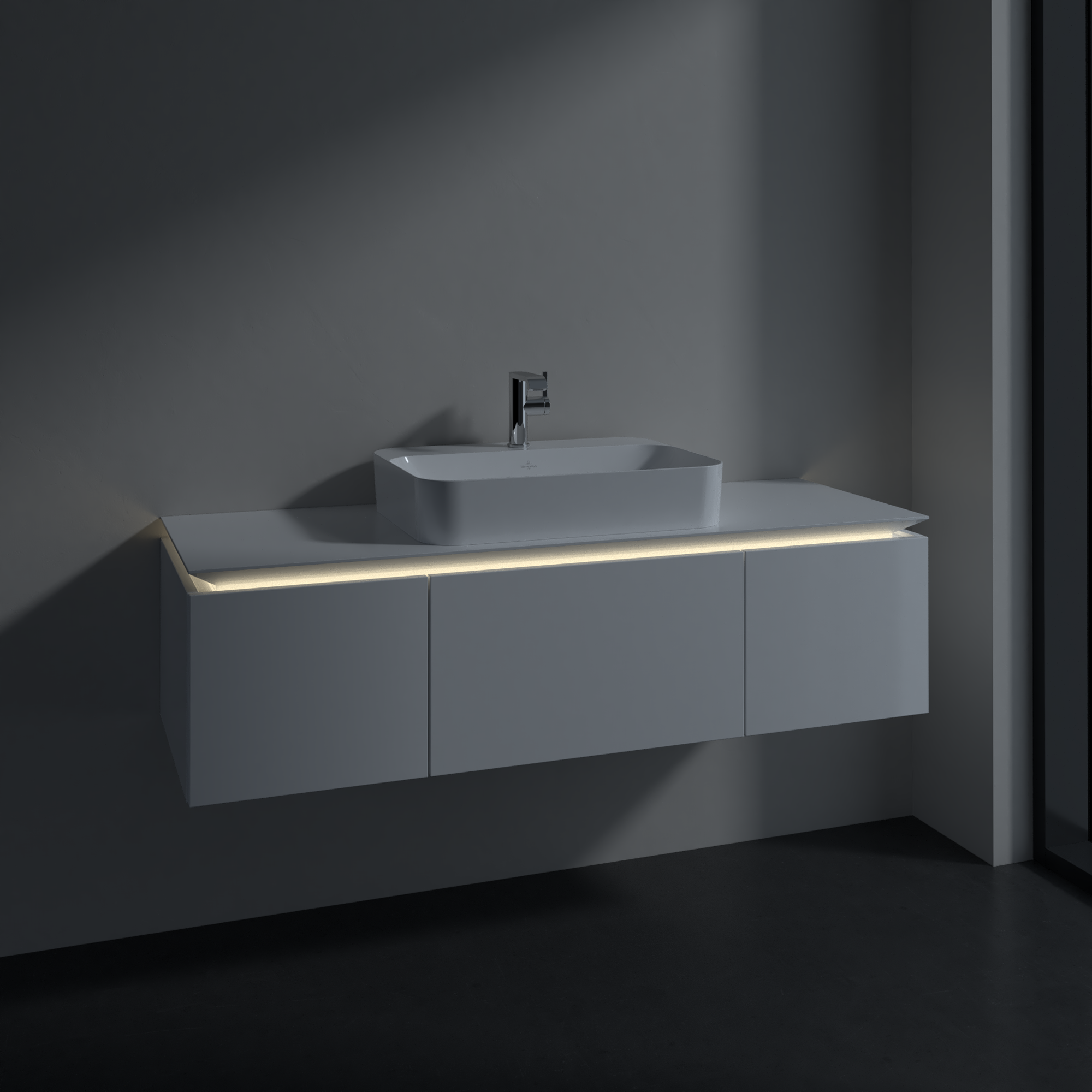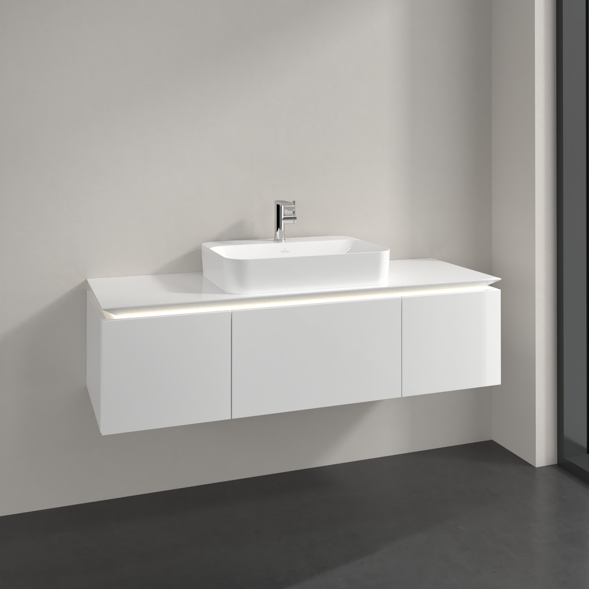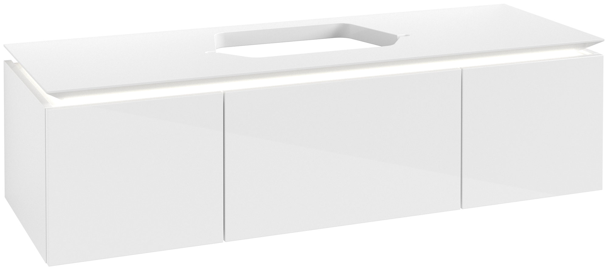 Legato Waschbeckenunterschrank, mit Beleuchtung, 3 Auszüge, 1400x380x500mm, Korpus: Glossy White, Front: Glossy White