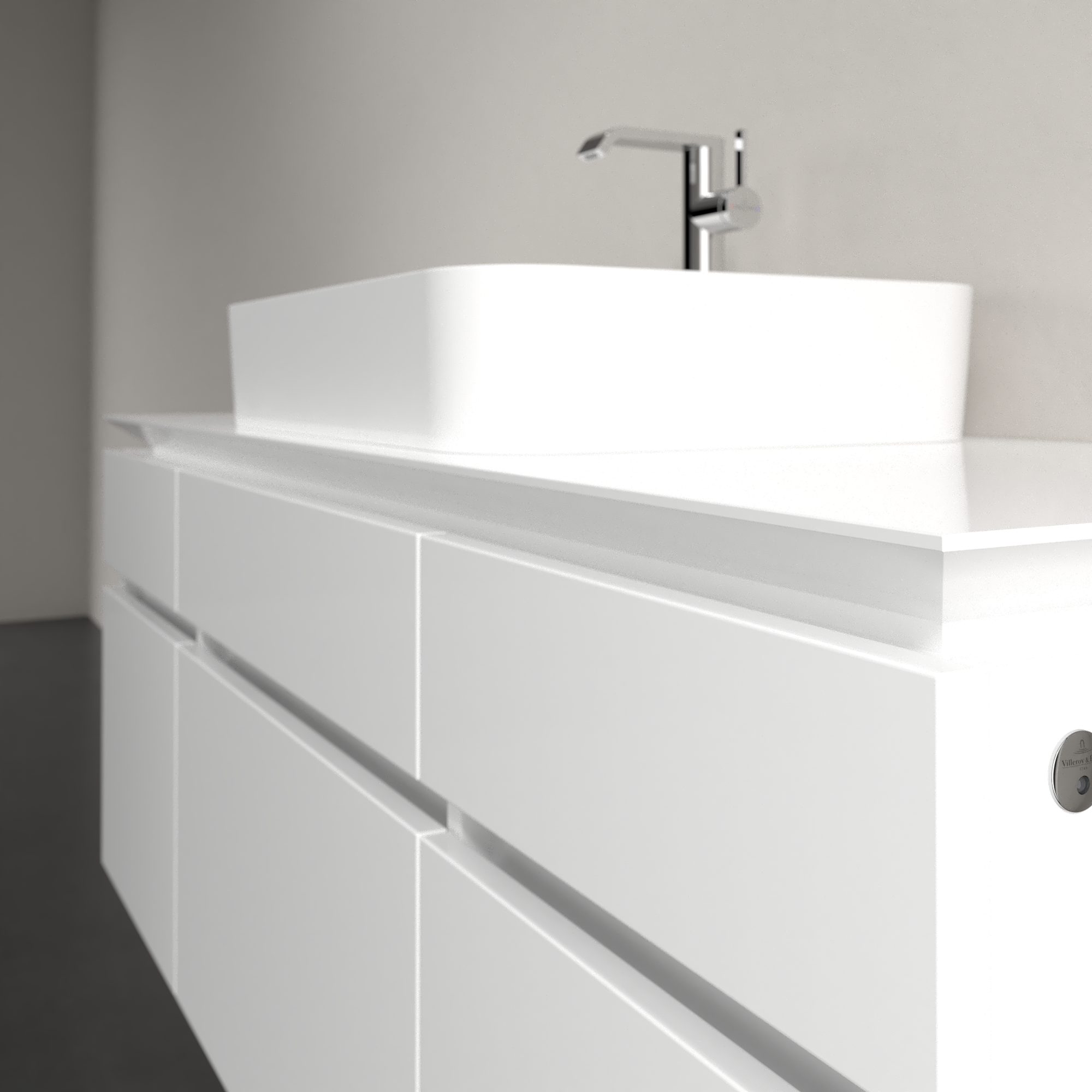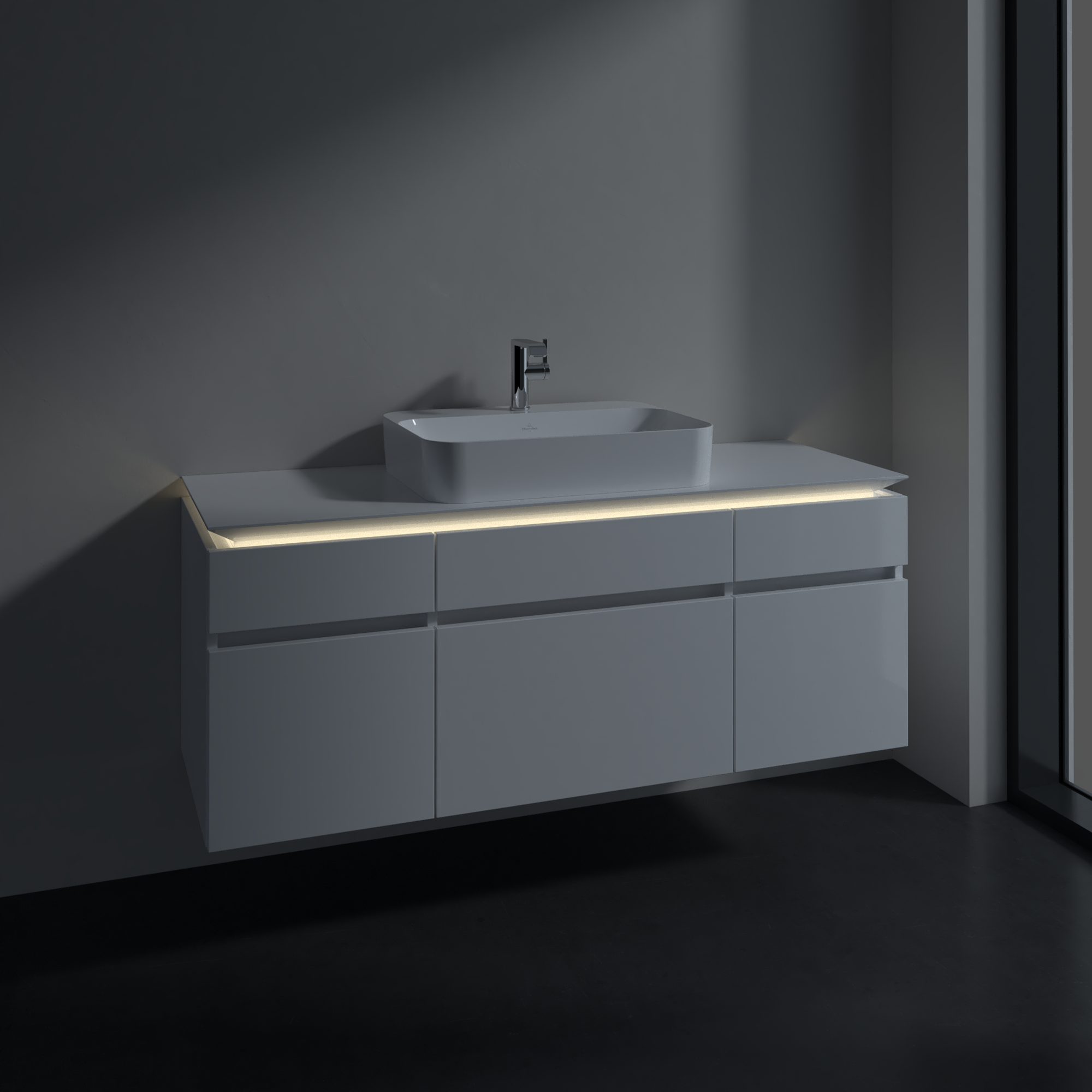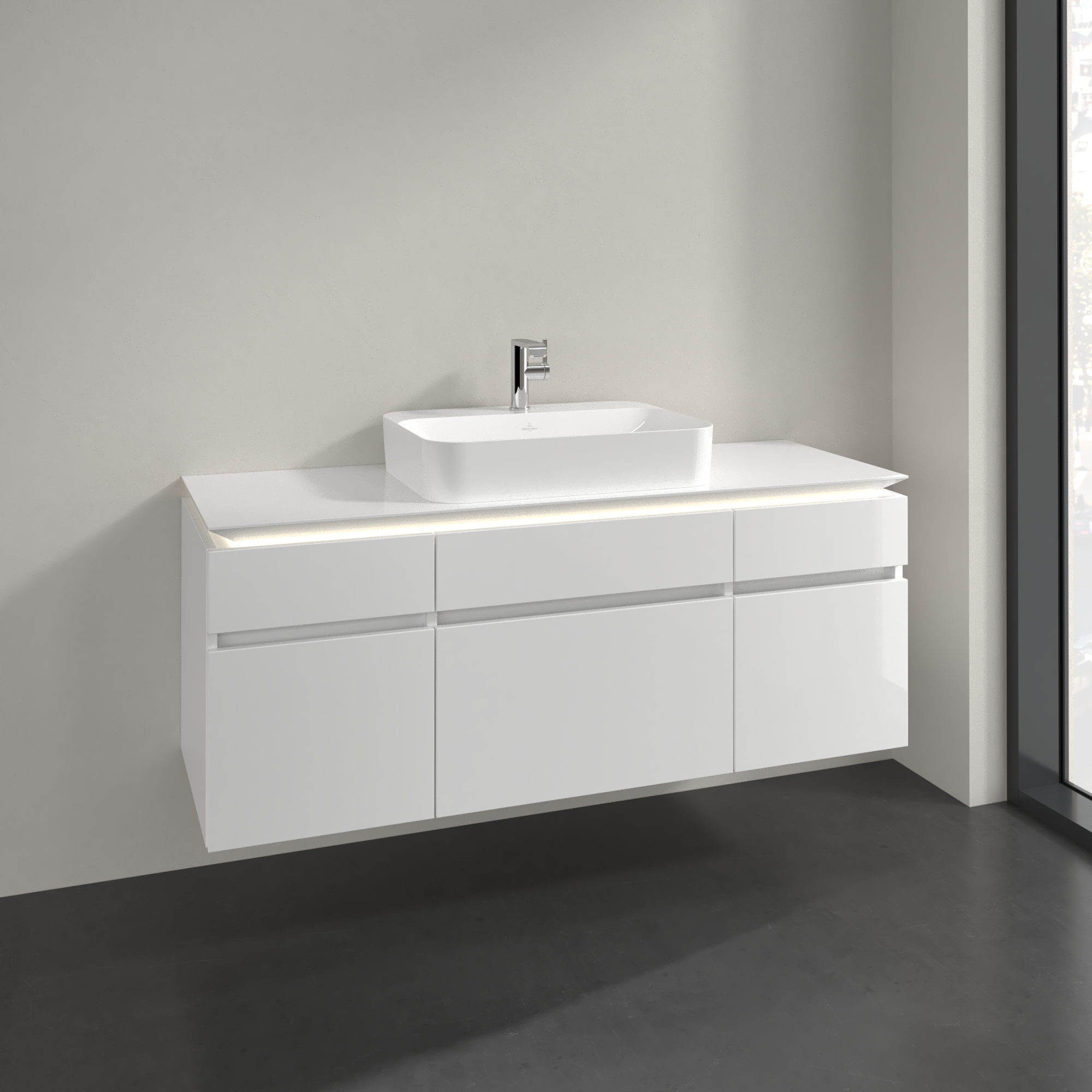 Legato Waschbeckenunterschrank, mit Beleuchtung, 5 Auszüge, 1400x550x500mm, Korpus: Glossy White, Front: Glossy White