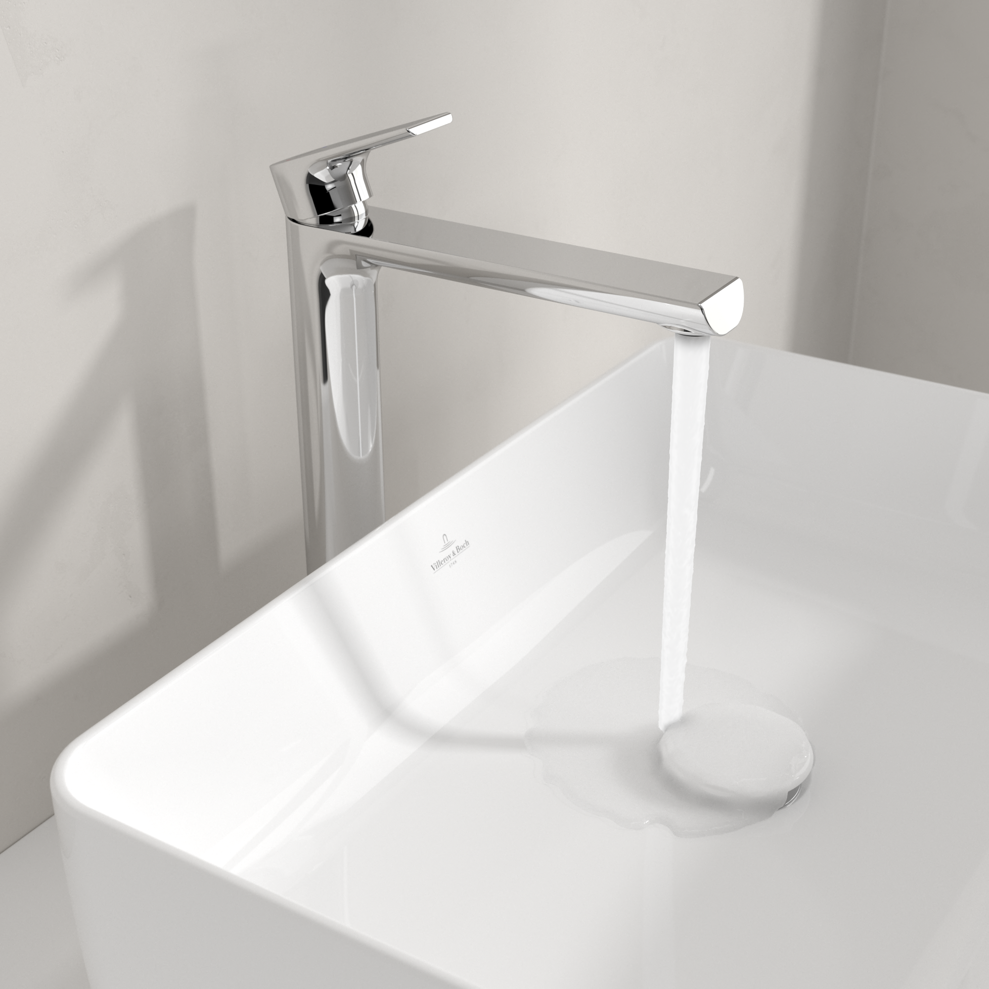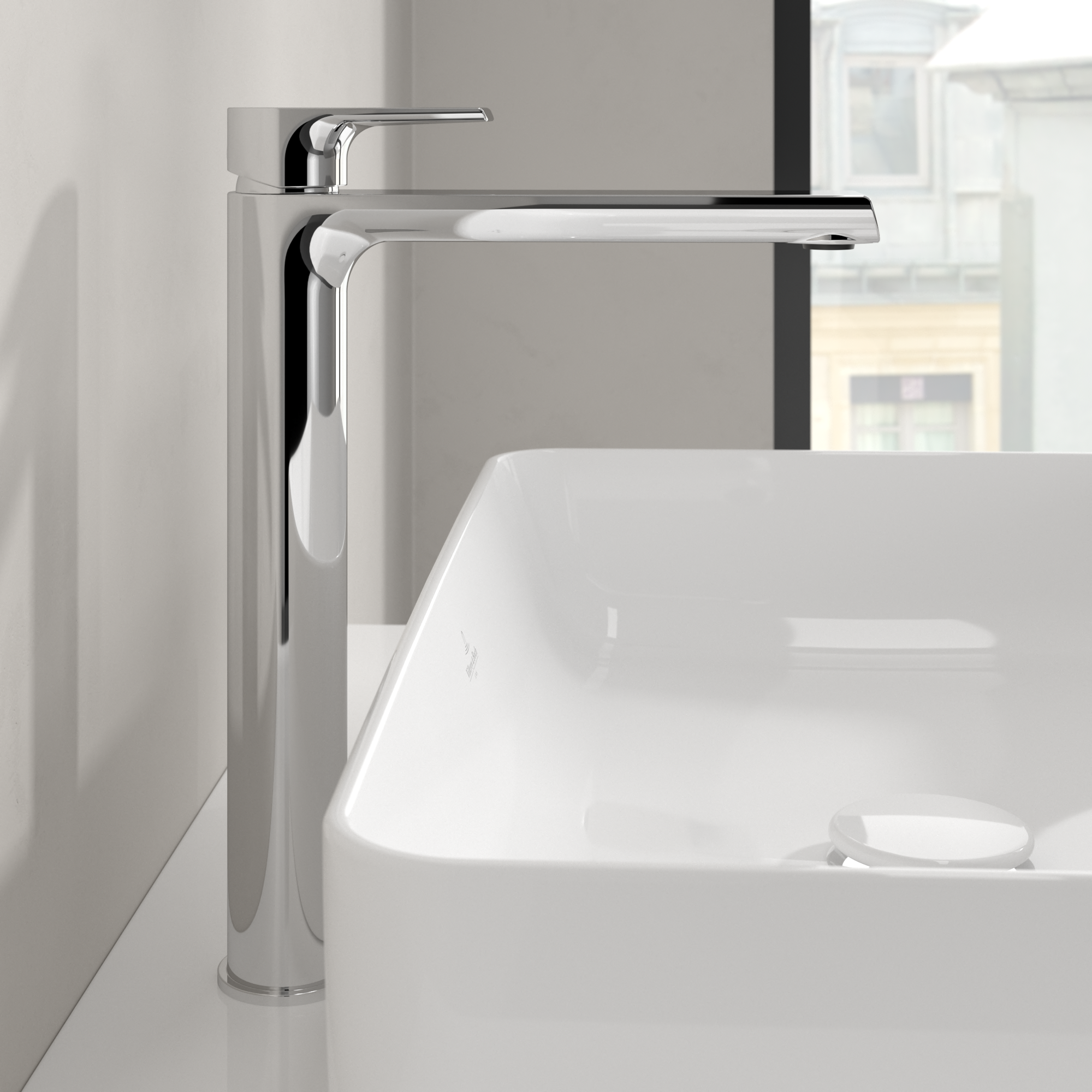 Komfortable Höhe für Armaturen in Kombination mit Aufsatzwaschbecken