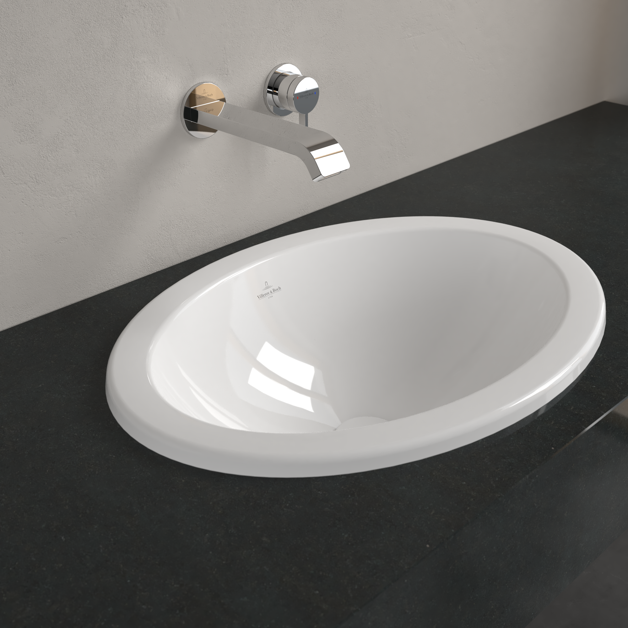 Loop & Friends Einbauwaschbecken, 570x410x215mm, mit Überlauf, Weiß Alpin