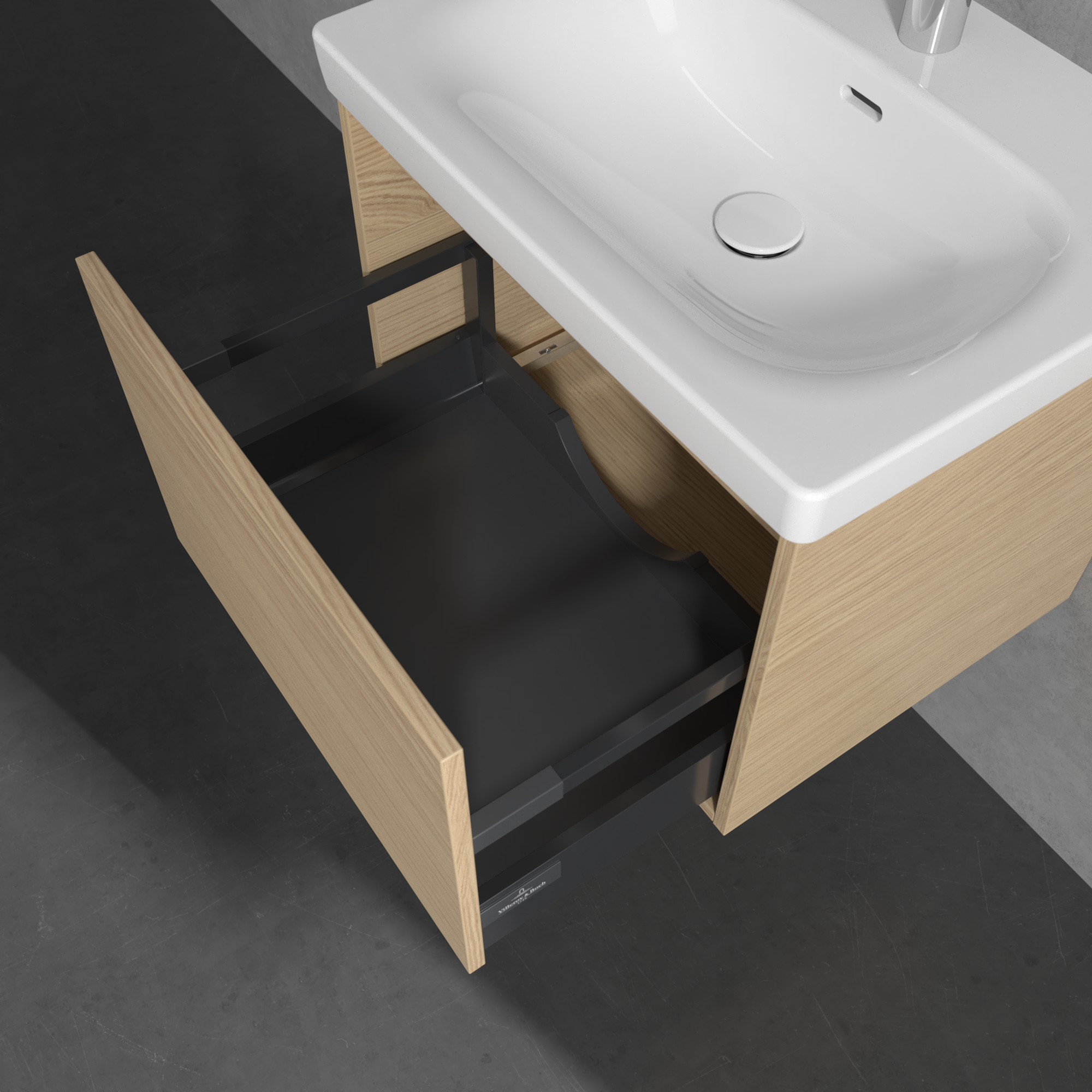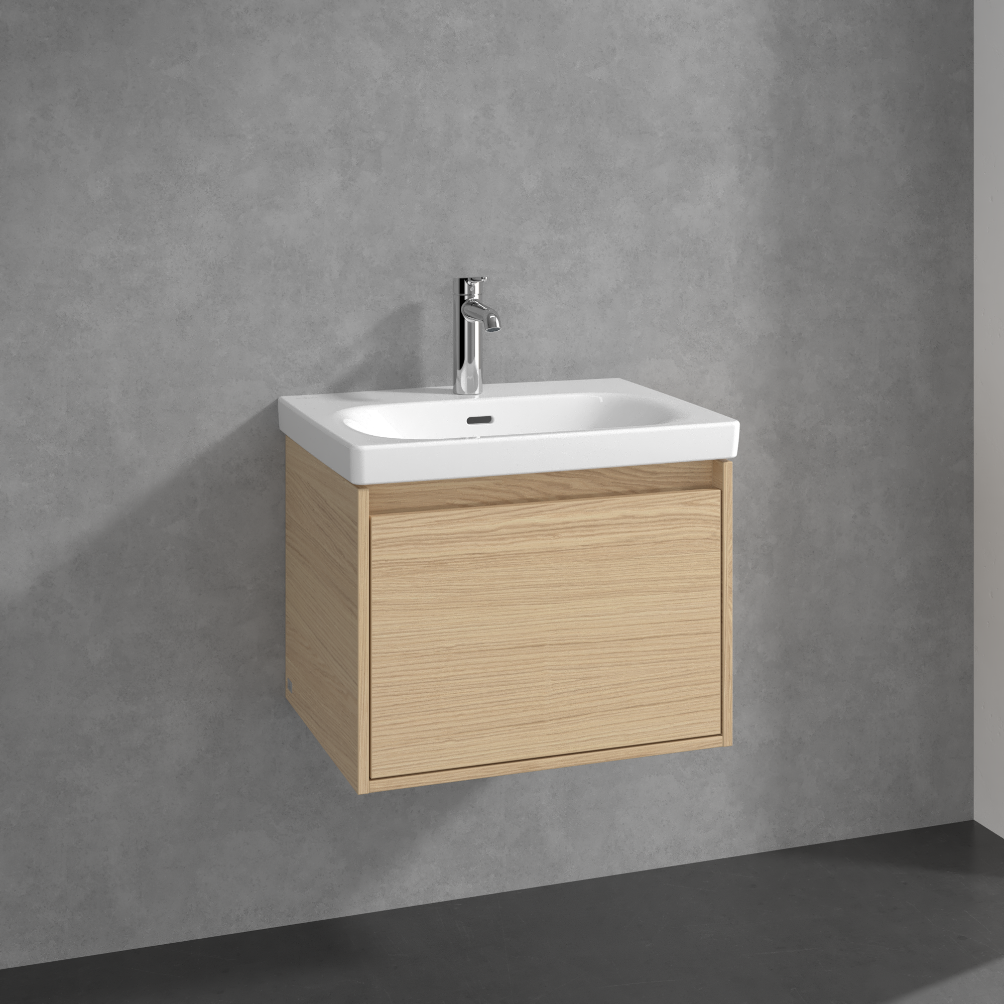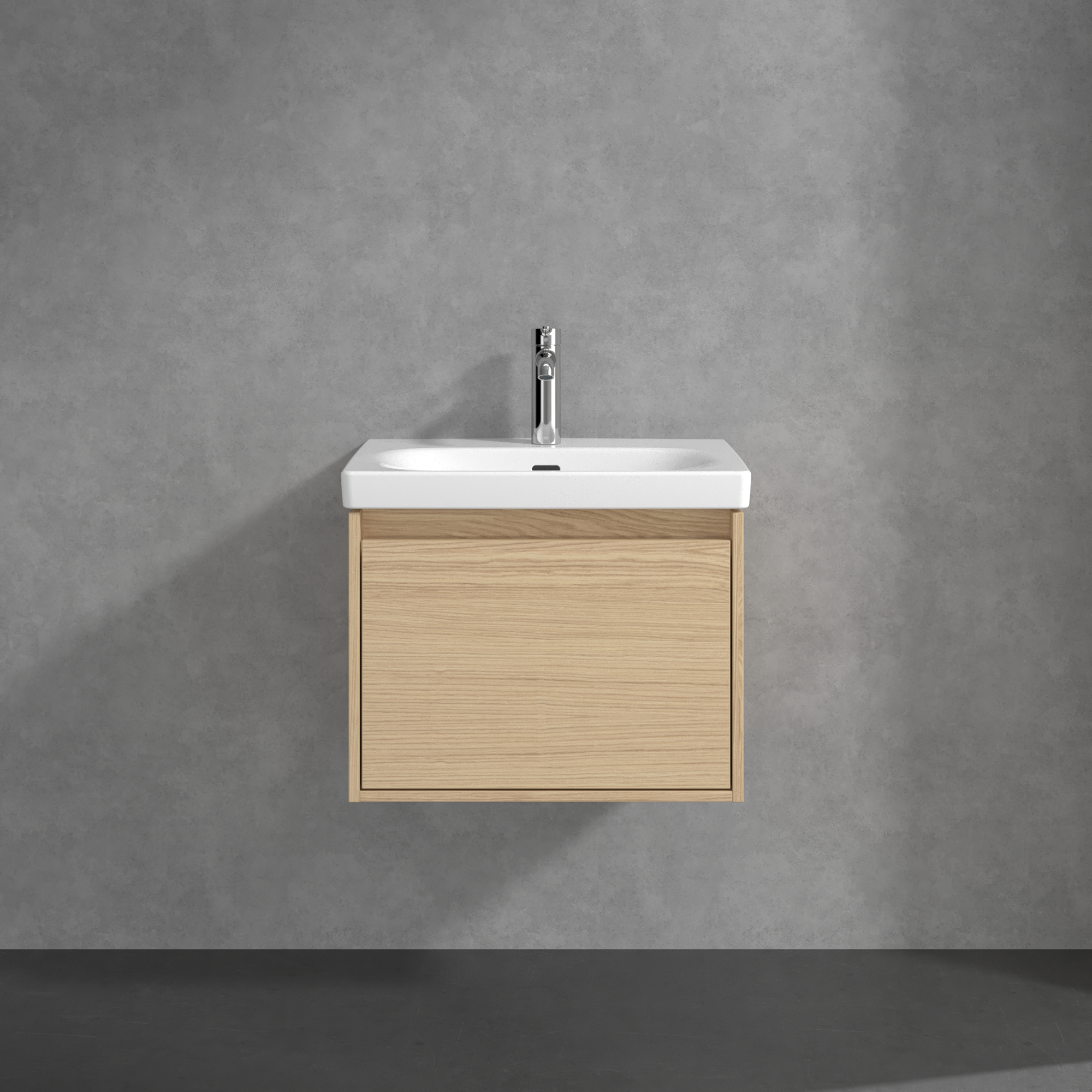 Skyla Waschbeckenunterschrank, 1 Auszug, 2 Auszüge, 572x436x439mm, Korpus: Nordic Oak, Front: Nordic Oak