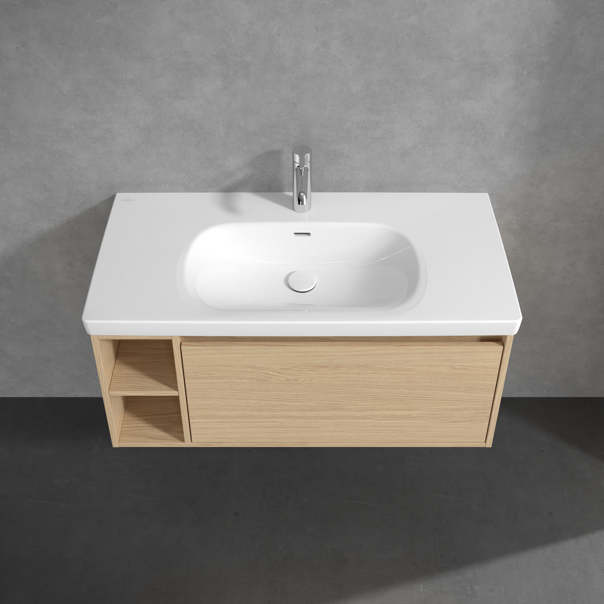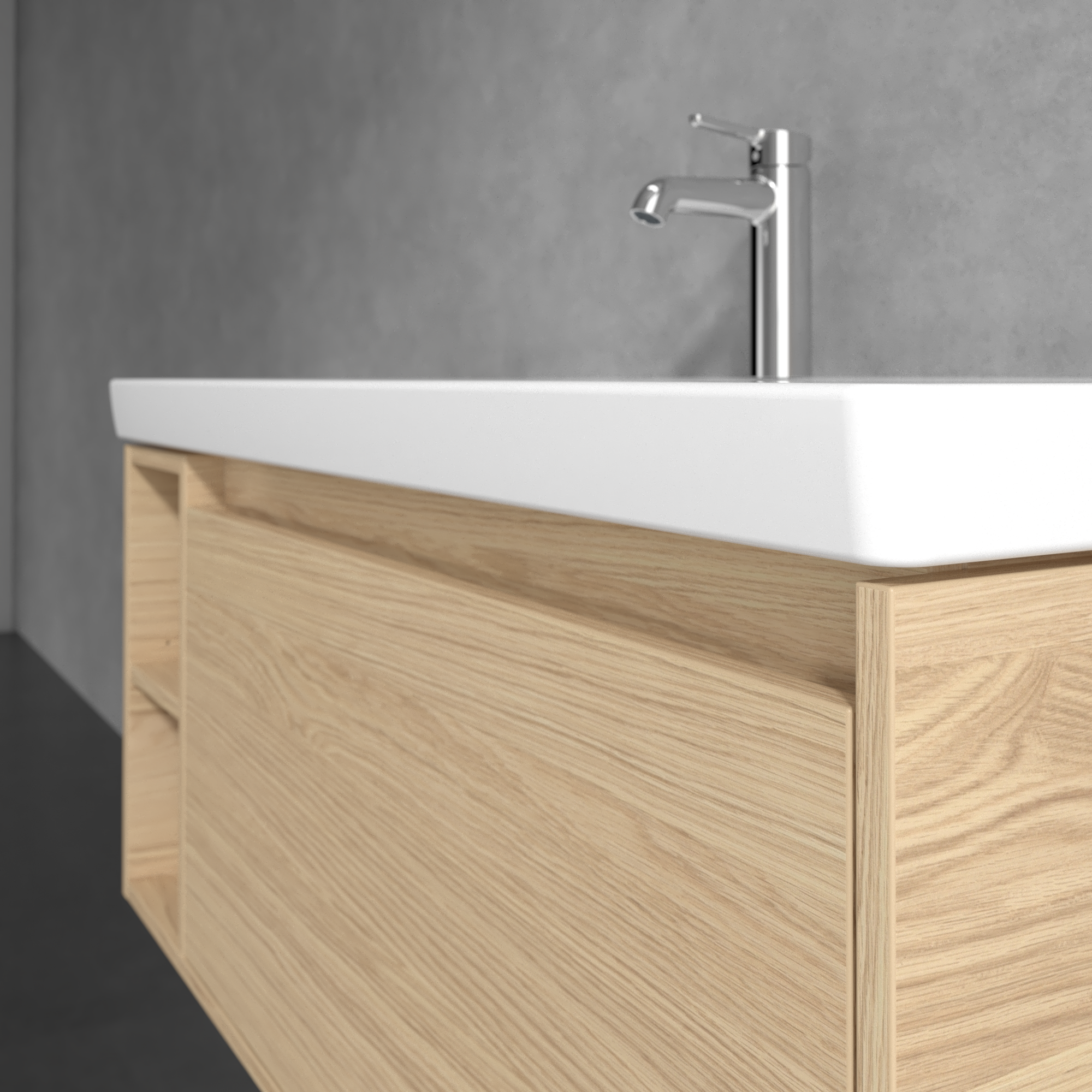 Skyla Waschbeckenunterschrank, 1 Auszug, 2 Auszüge, 972x436x439mm, Korpus: Nordic Oak, Front: Nordic Oak