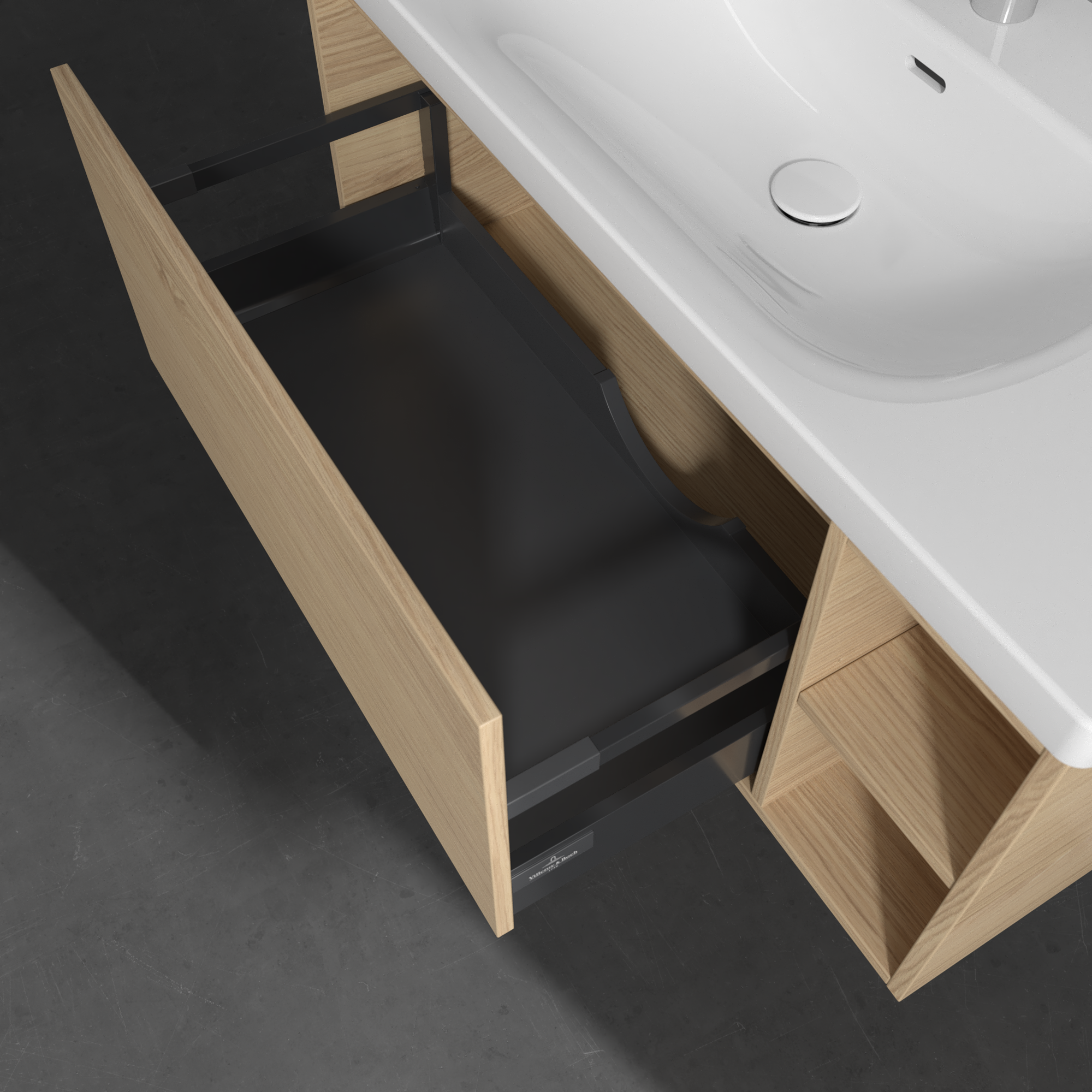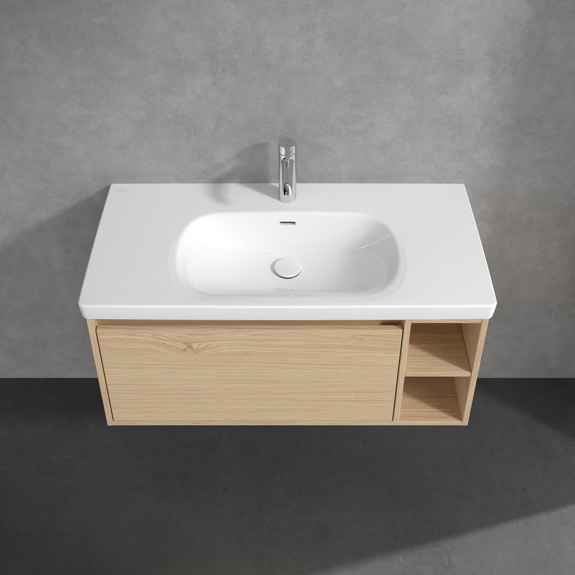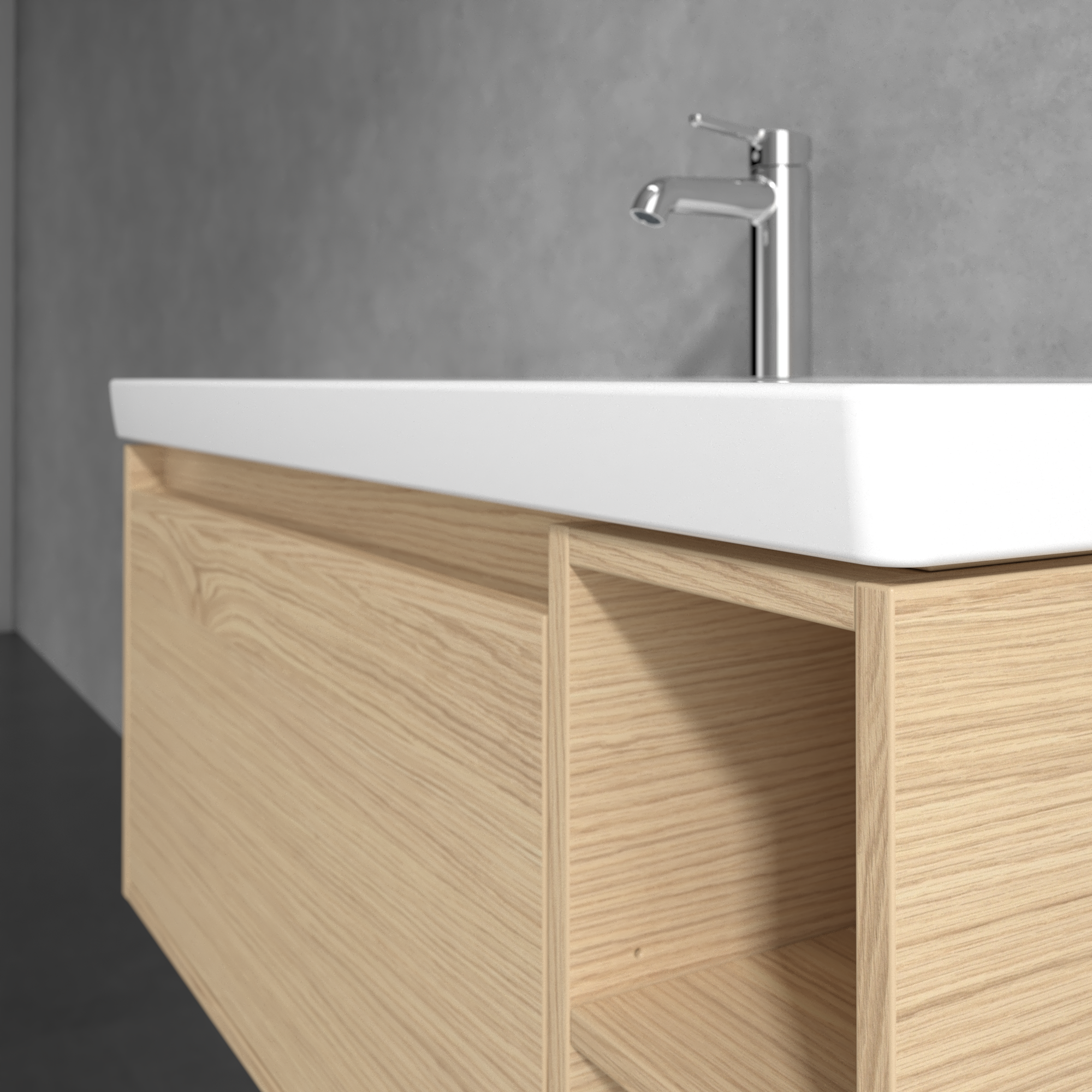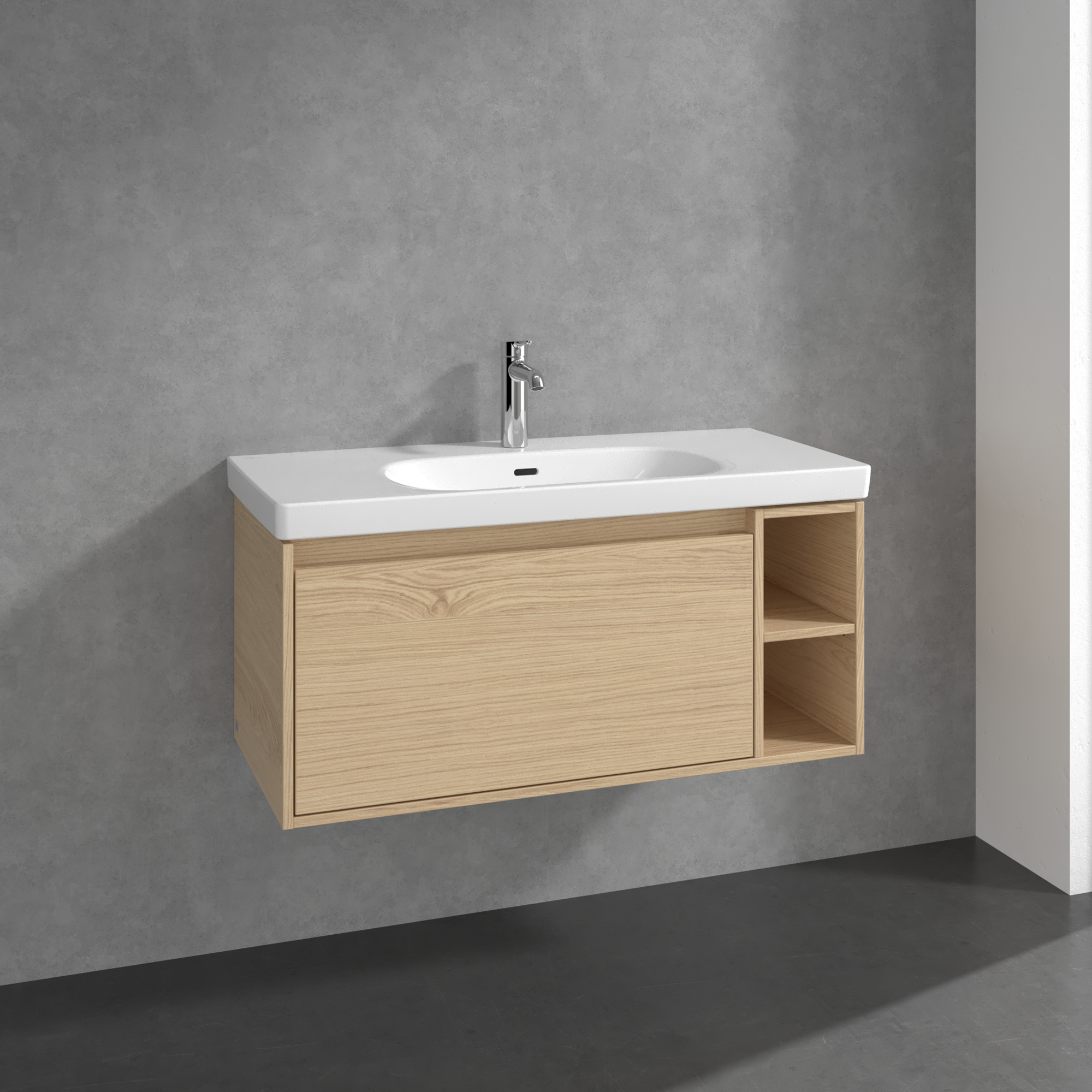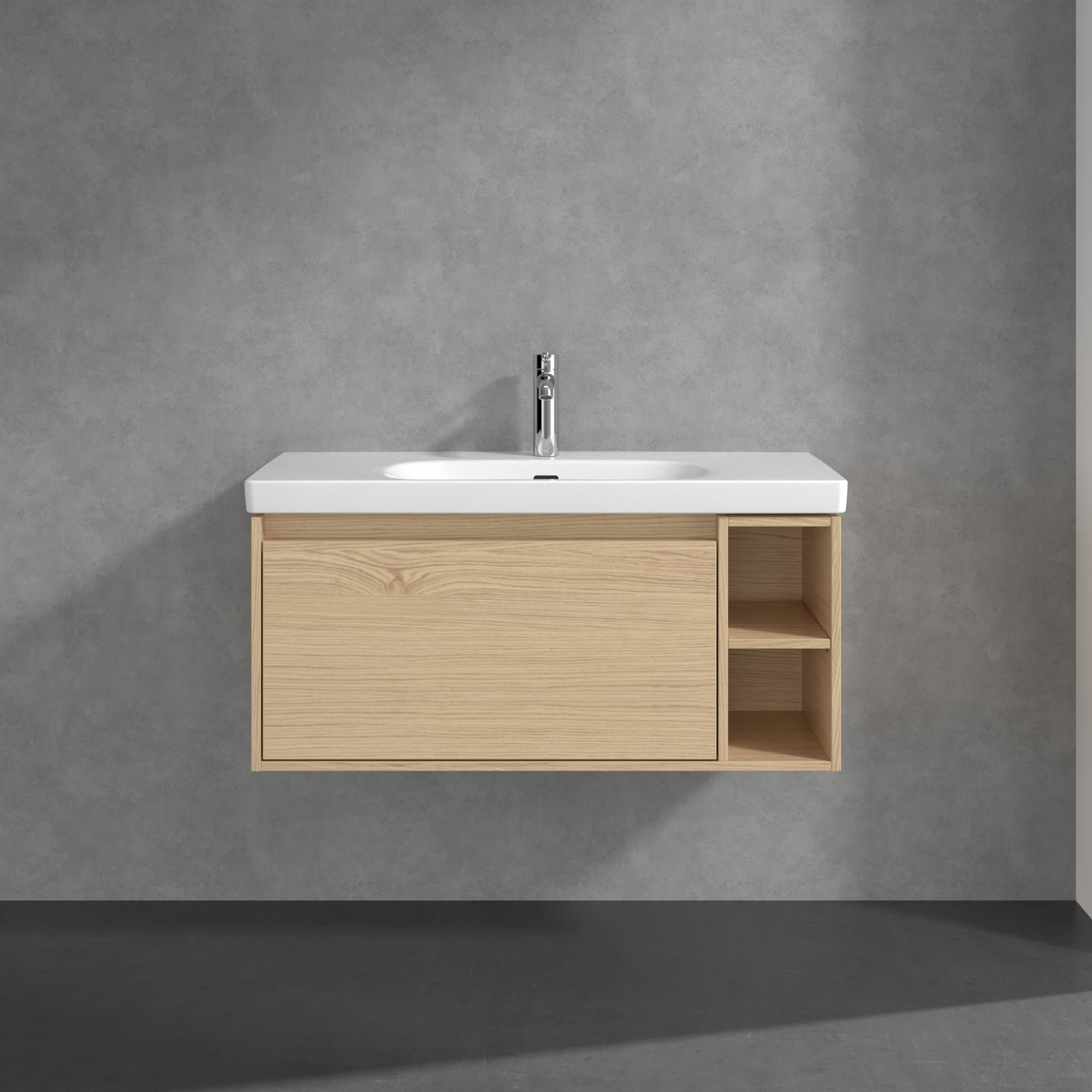 Skyla Waschbeckenunterschrank, 1 Auszug, 2 Auszüge, 972x436x439mm, Korpus: Nordic Oak, Front: Nordic Oak