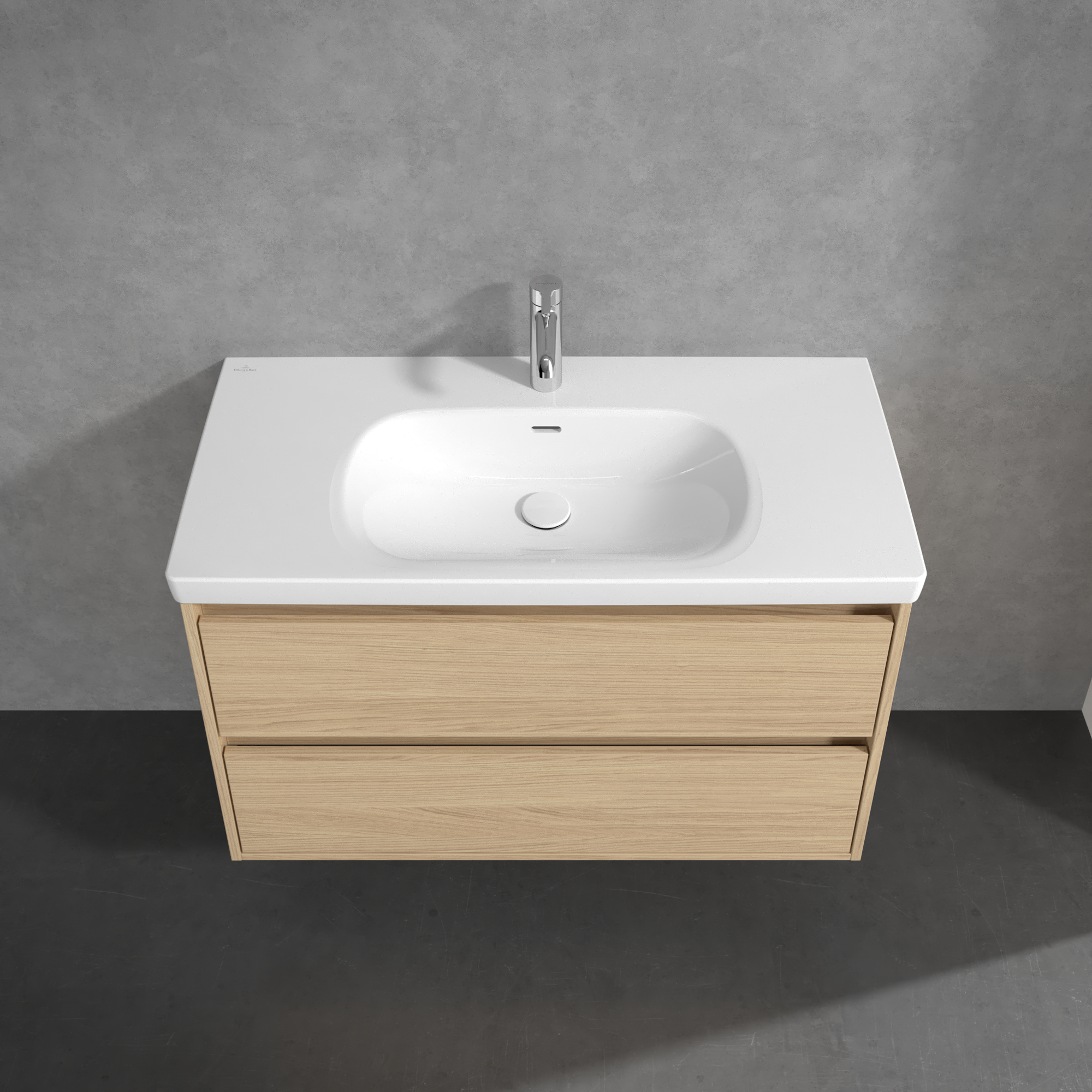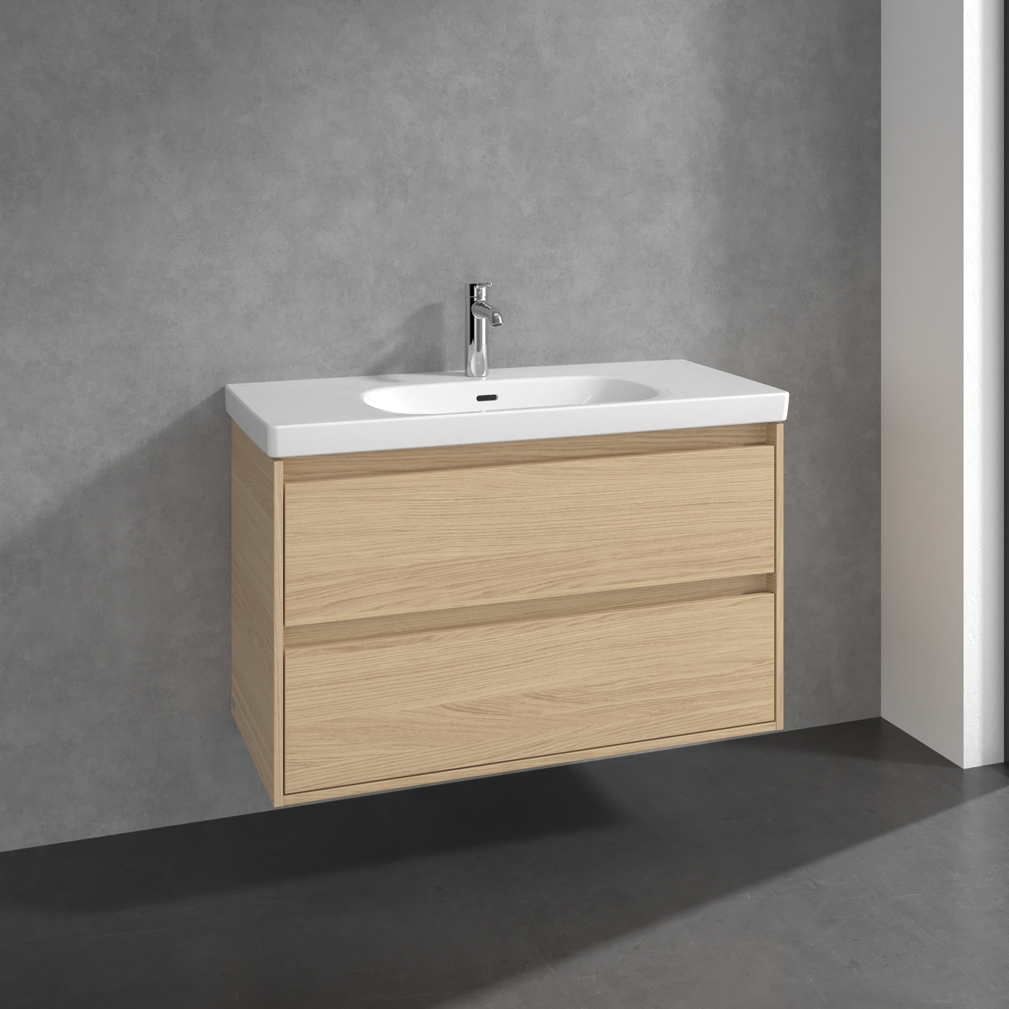 Skyla Waschbeckenunterschrank, 1 Auszug, 2 Auszüge, 972x596x439mm, Korpus: Nordic Oak, Front: Nordic Oak