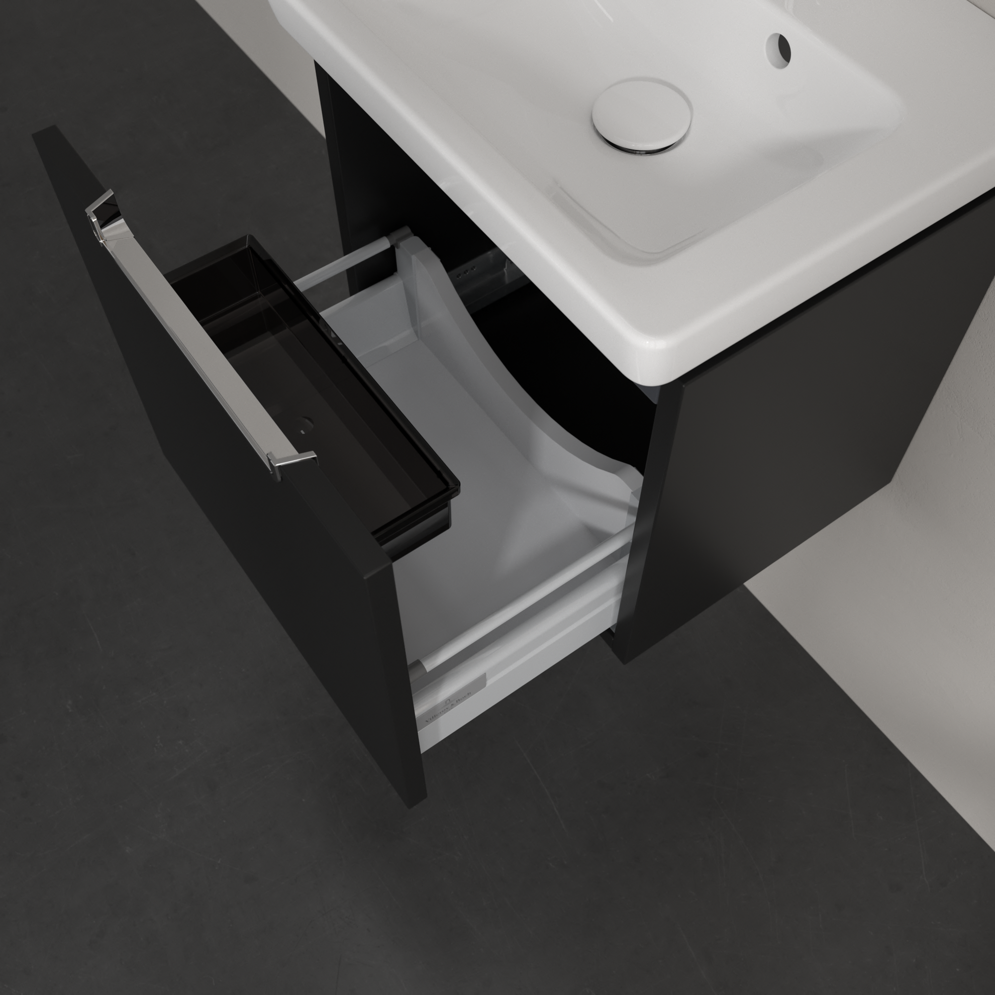 Subway 2.0 Waschbeckenunterschrank, 1 Auszug, 440x420x352mm, Korpus: Volcano Black, Front: Volcano Black