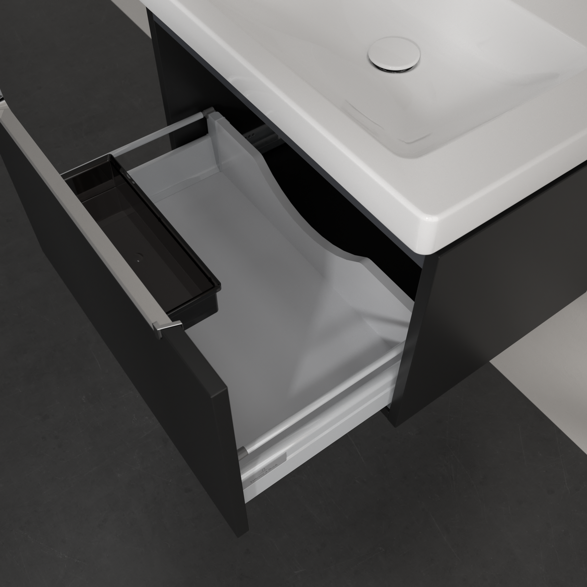 Subway 2.0 Waschbeckenunterschrank, 2 Auszüge, 637x420x454mm, Korpus: Volcano Black, Front: Volcano Black