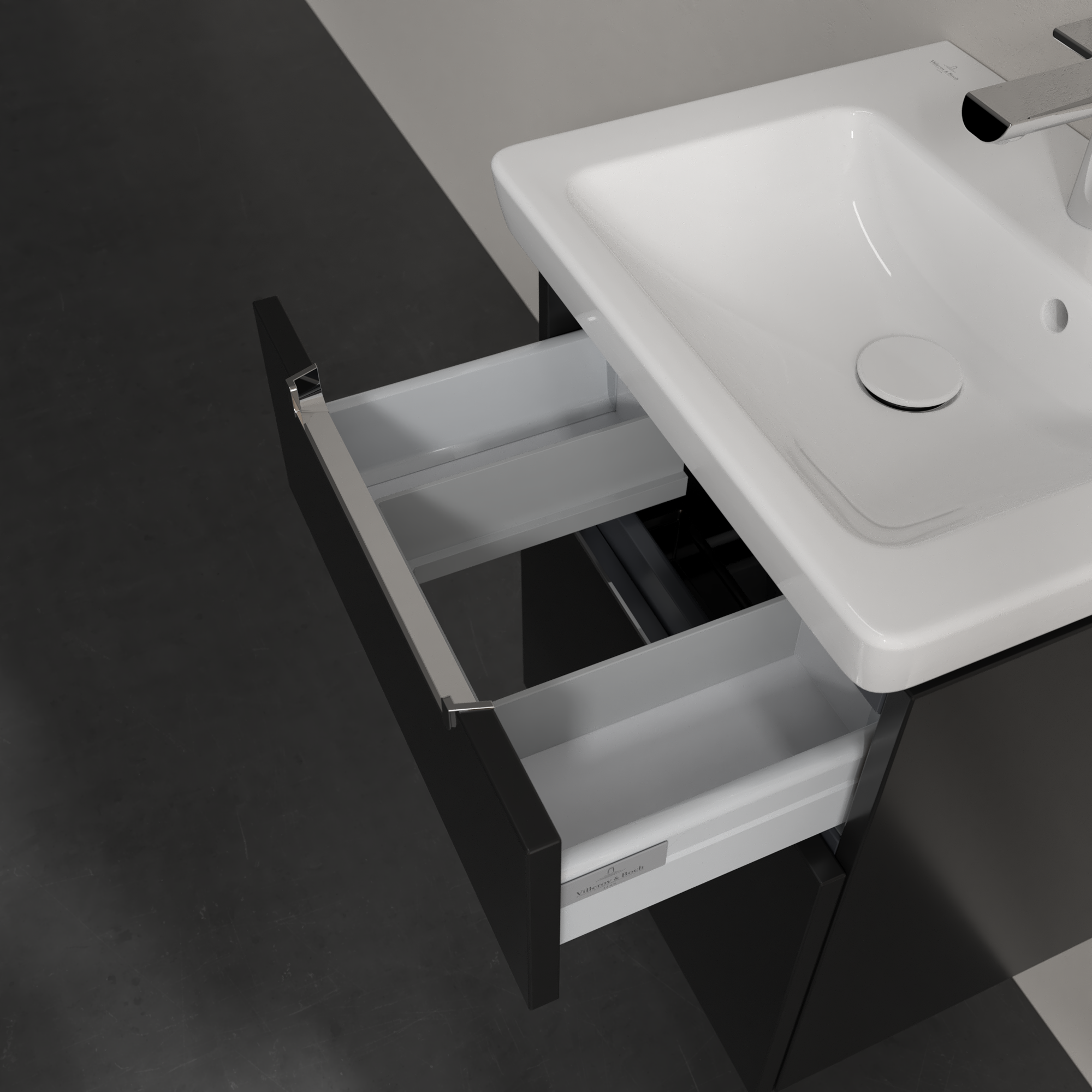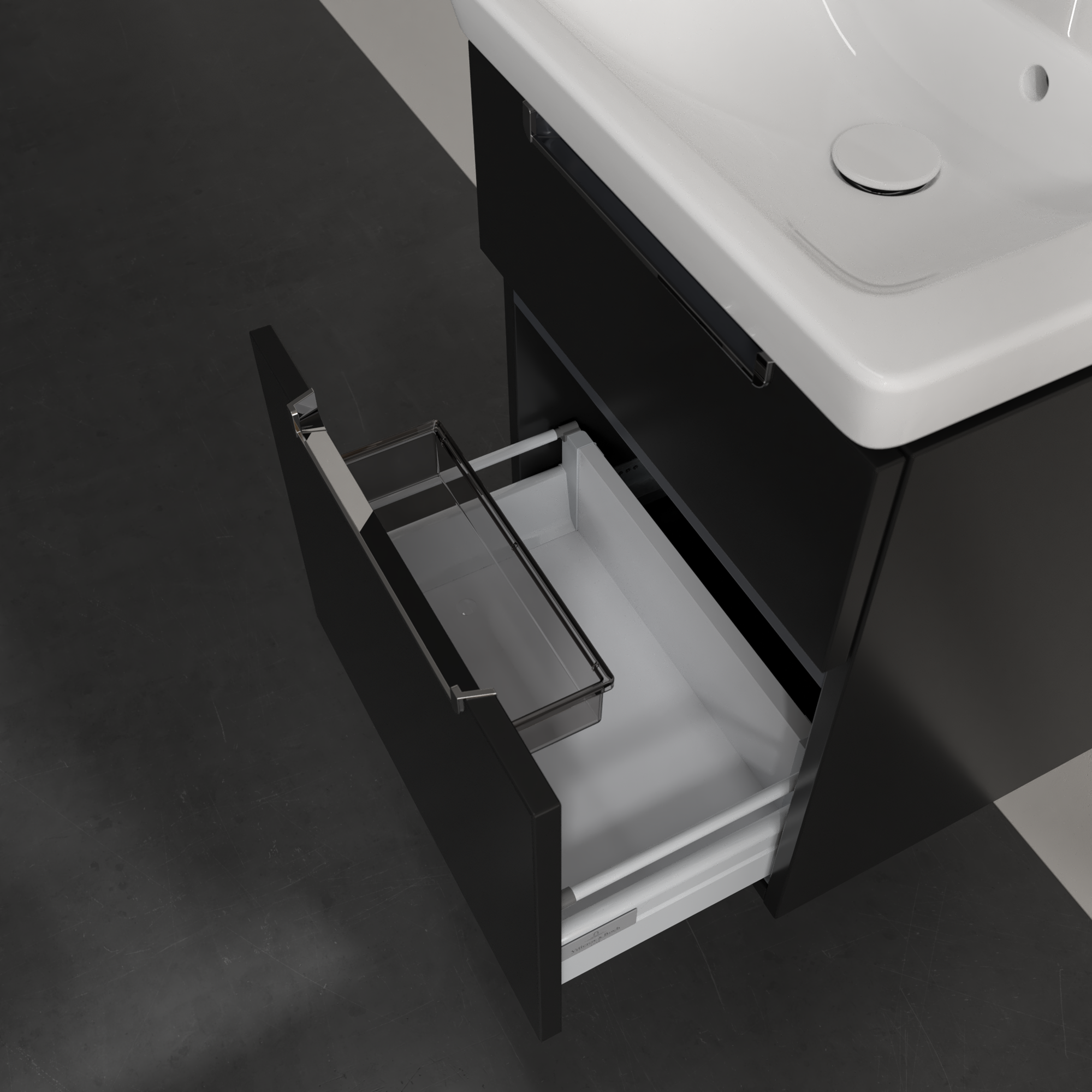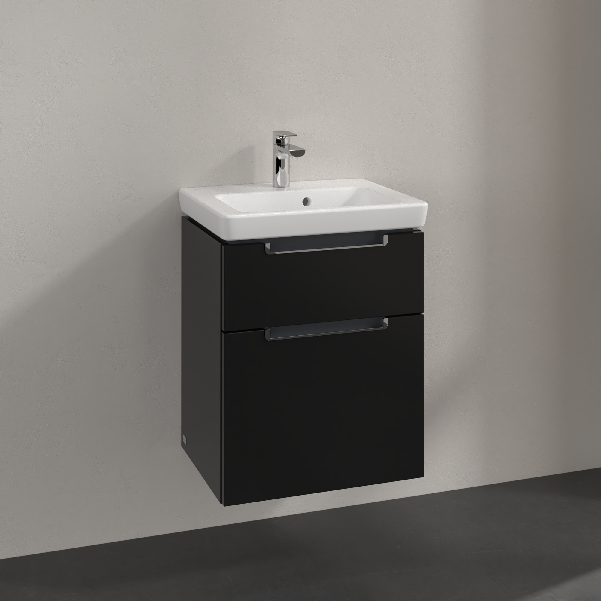 Subway 2.0 Waschbeckenunterschrank, 2 Auszüge, 485x590x380mm, Korpus: Black Matt Lacquer, Front: Black Matt Lacquer