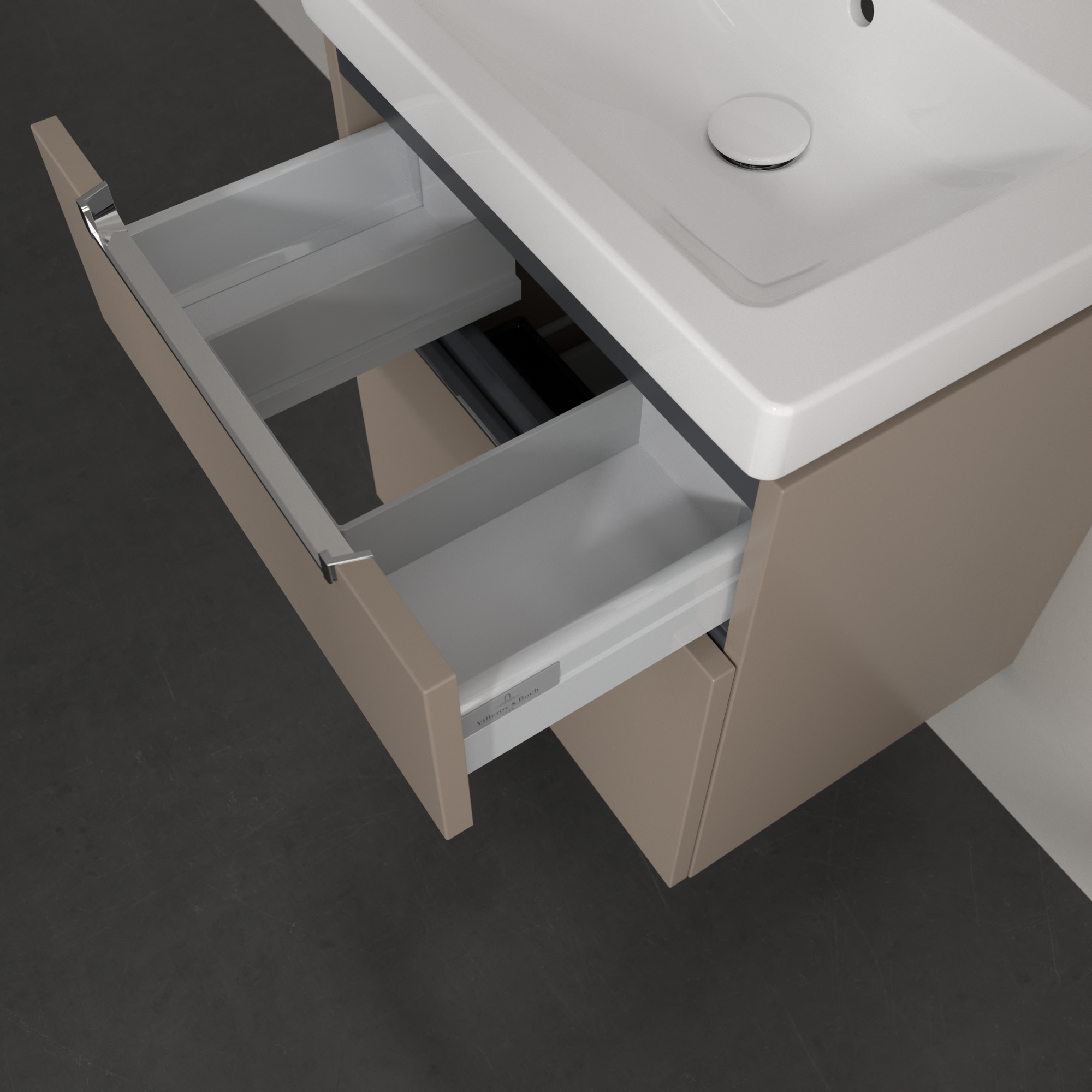 Subway 2.0 Waschbeckenunterschrank, 2 Auszüge, 537x590x423mm, Korpus: Taupe, Front: Taupe