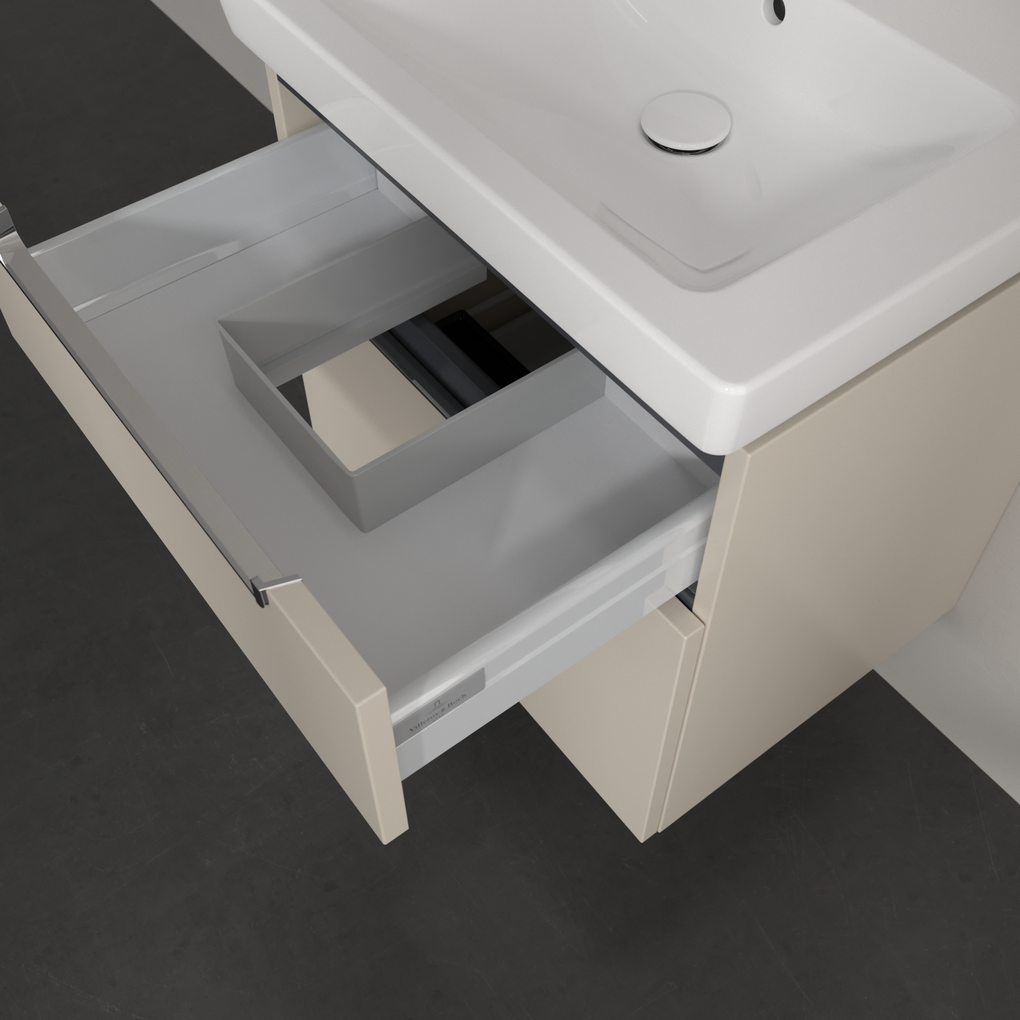 Subway 2.0 Waschbeckenunterschrank, 2 Auszüge, 587x590x454mm, Korpus: Cashmere Grey, Front: Cashmere Grey