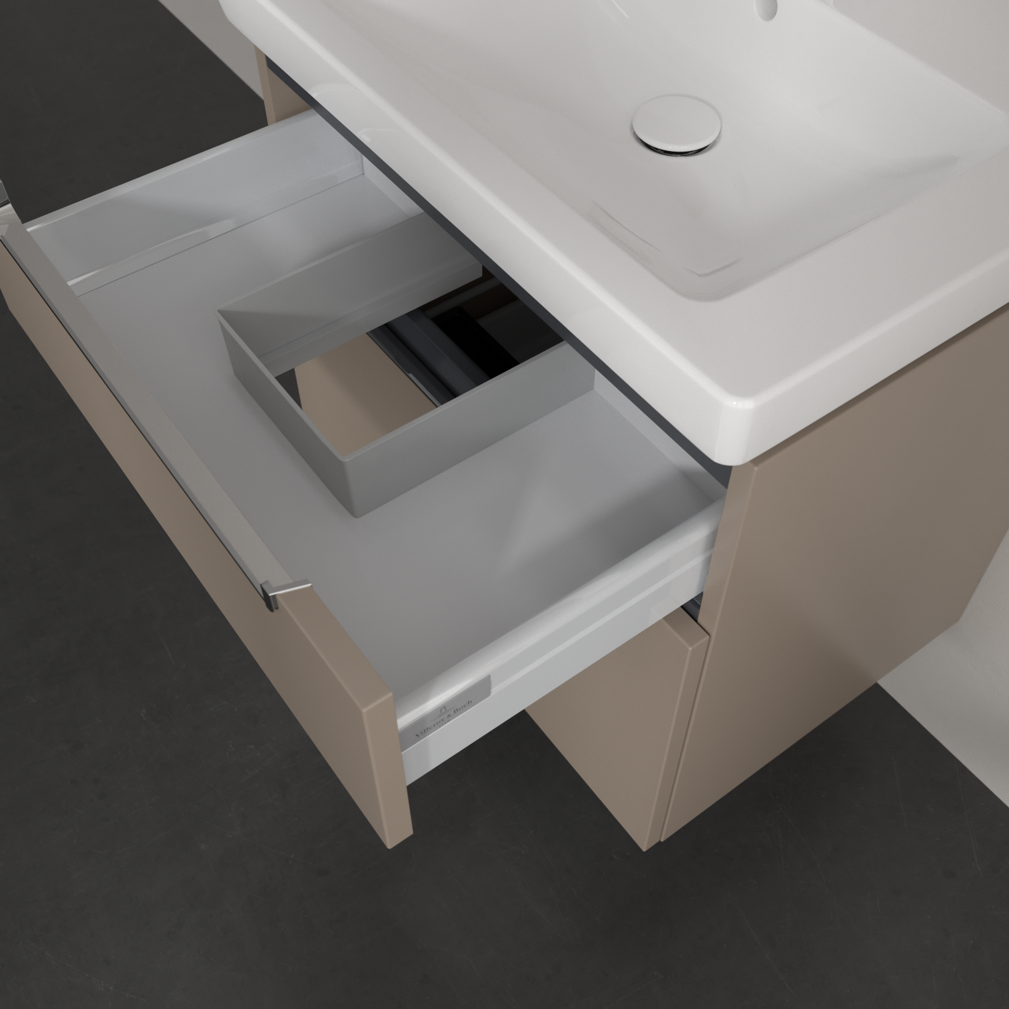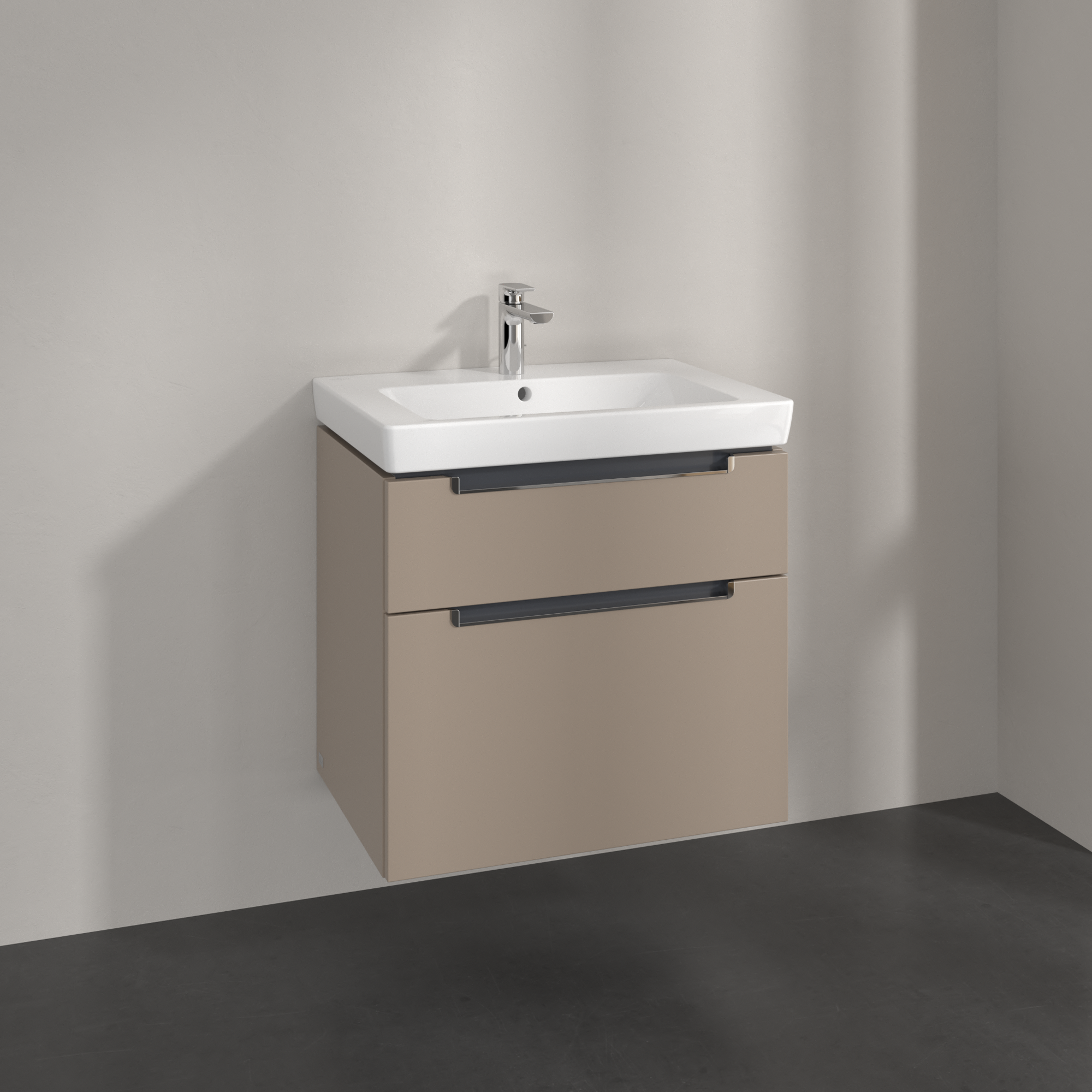 Subway 2.0 Waschbeckenunterschrank, 2 Auszüge, 637x590x454mm, Korpus: Taupe, Front: Taupe