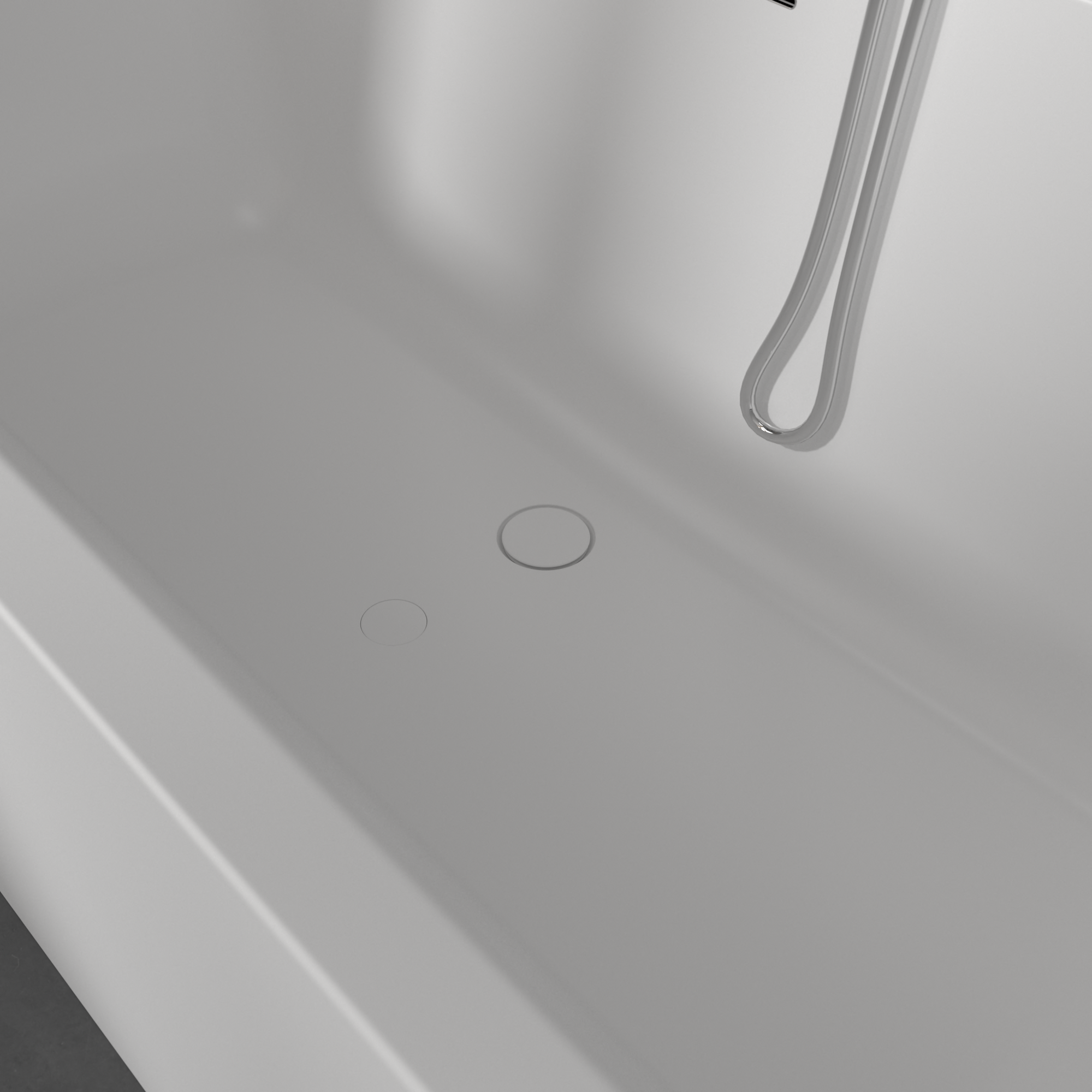 1 x Passender Ab- und Überlauf. Der Ablaufdeckel ist passend zur Wannenfarbe, der Überlauf ist verchromt.