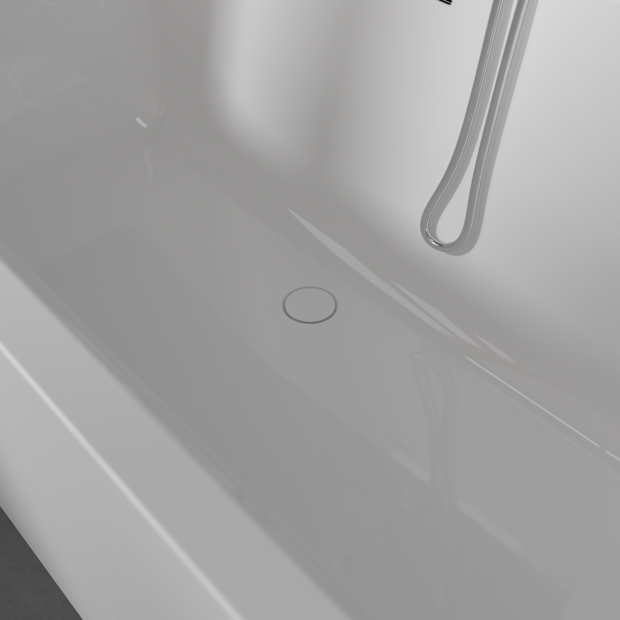 1 x Passender Ab- und Überlauf. Der Ablaufdeckel ist passend zur Wannenfarbe, der Überlauf ist verchromt.