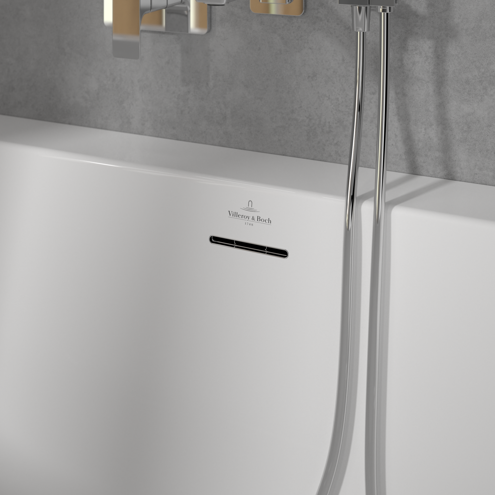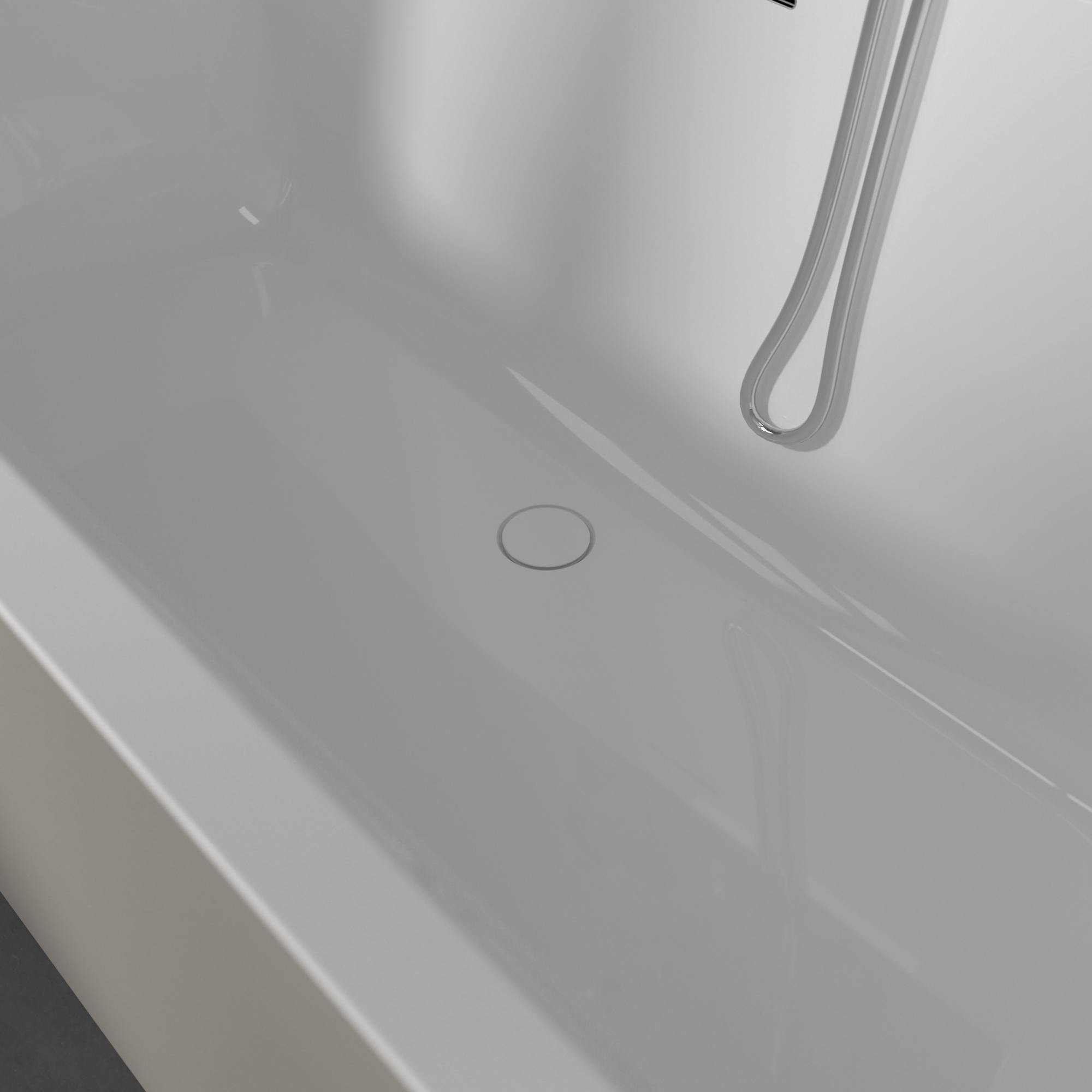 1 x Passender Ab- und Überlauf. Der Ablaufdeckel ist passend zur Wannenfarbe, der Überlauf ist verchromt.