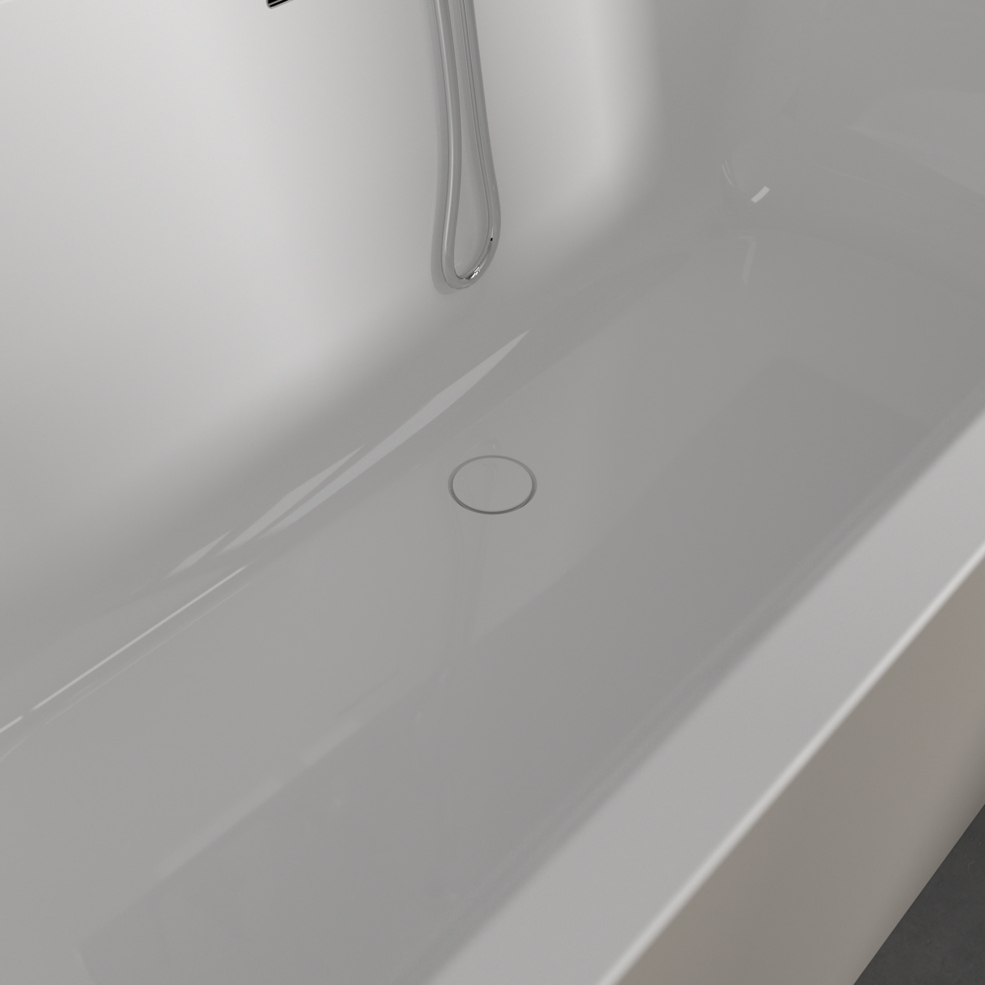 1 x Passender Ab- und Überlauf. Der Ablaufdeckel ist passend zur Wannenfarbe, der Überlauf ist verchromt.