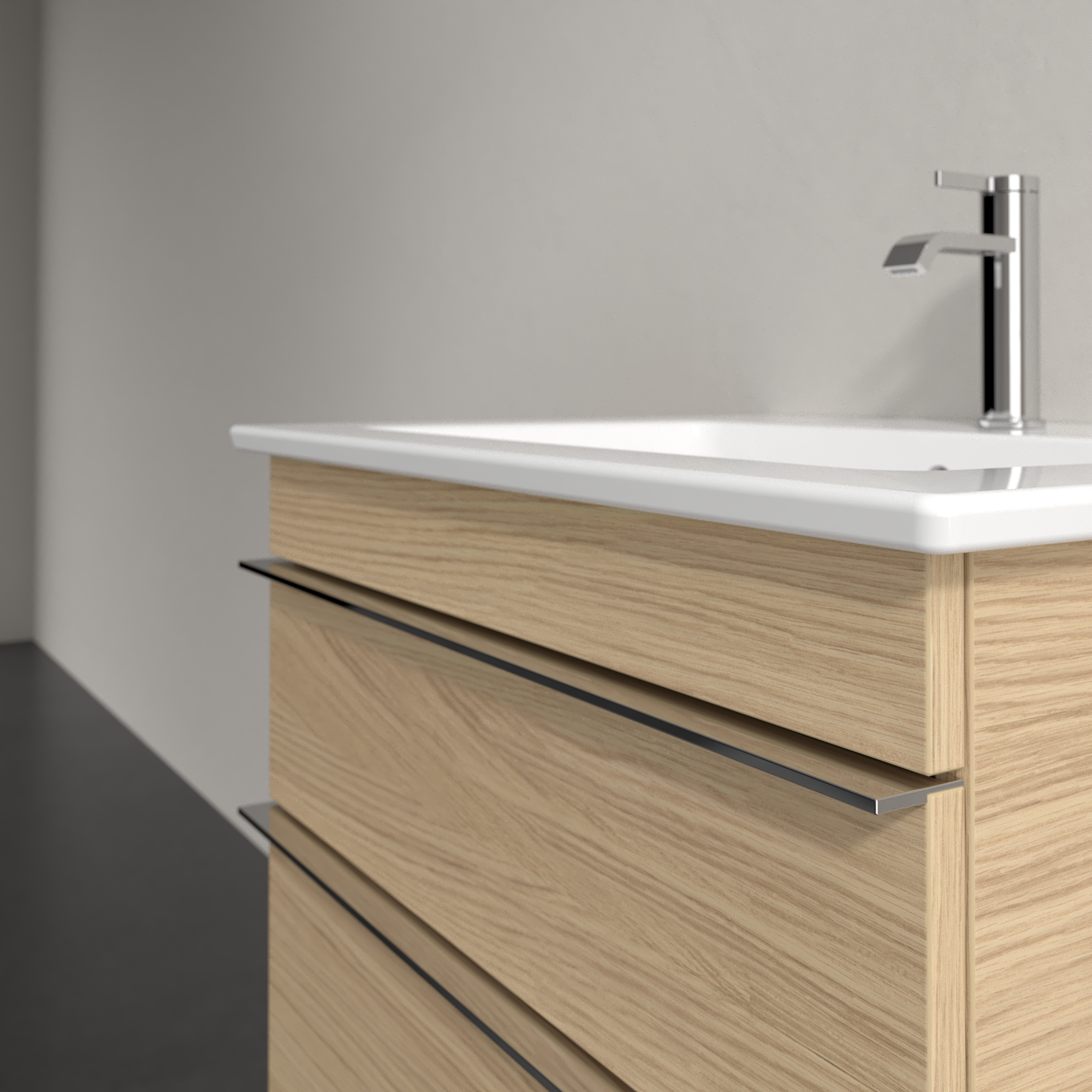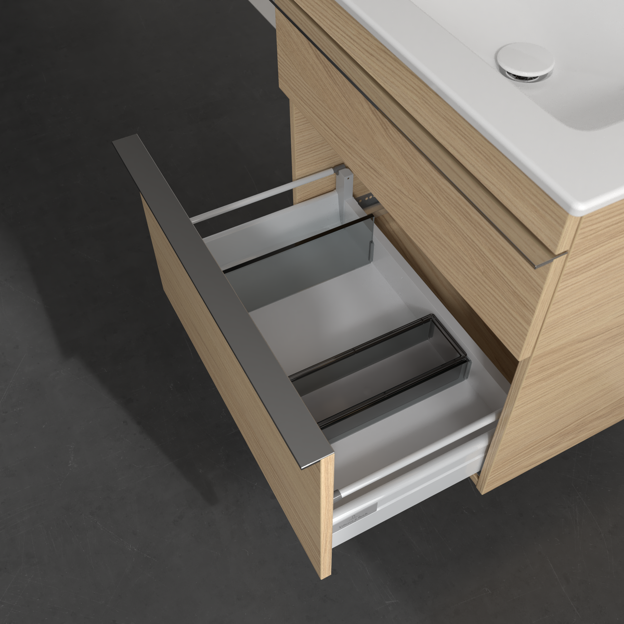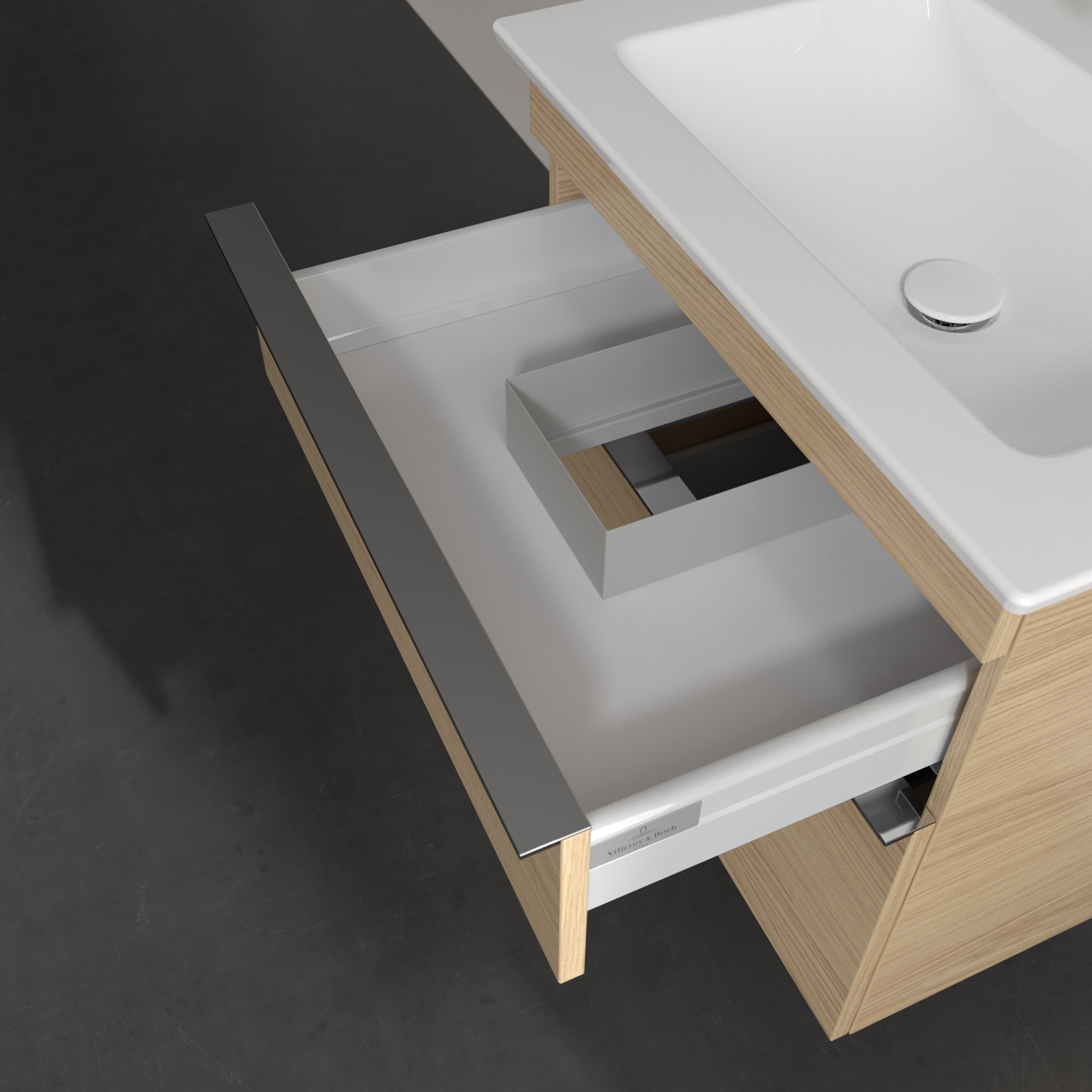 Venticello Waschbeckenunterschrank, 2 Auszüge, 603x590x502mm, Korpus: Nordic Oak, Front: Nordic Oak