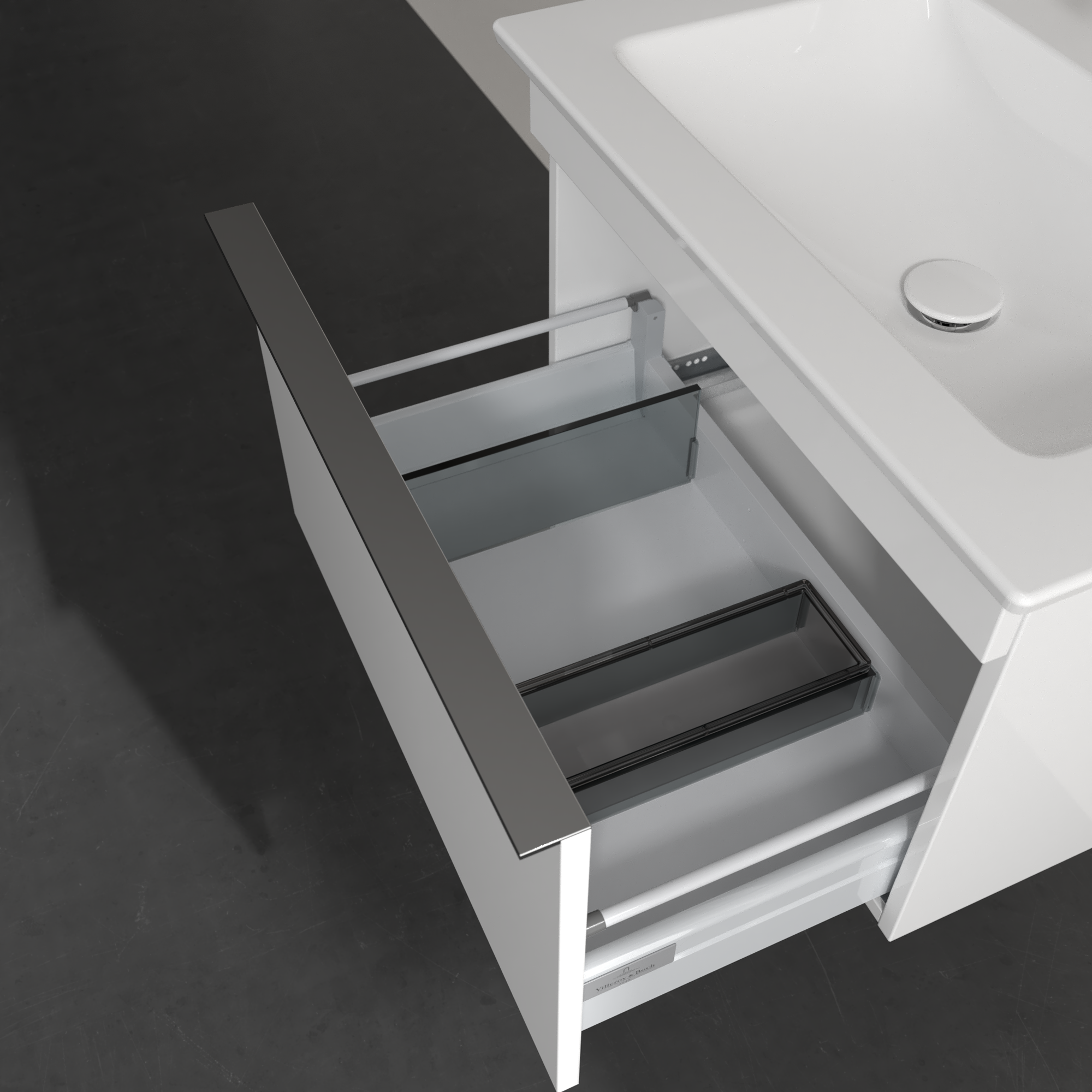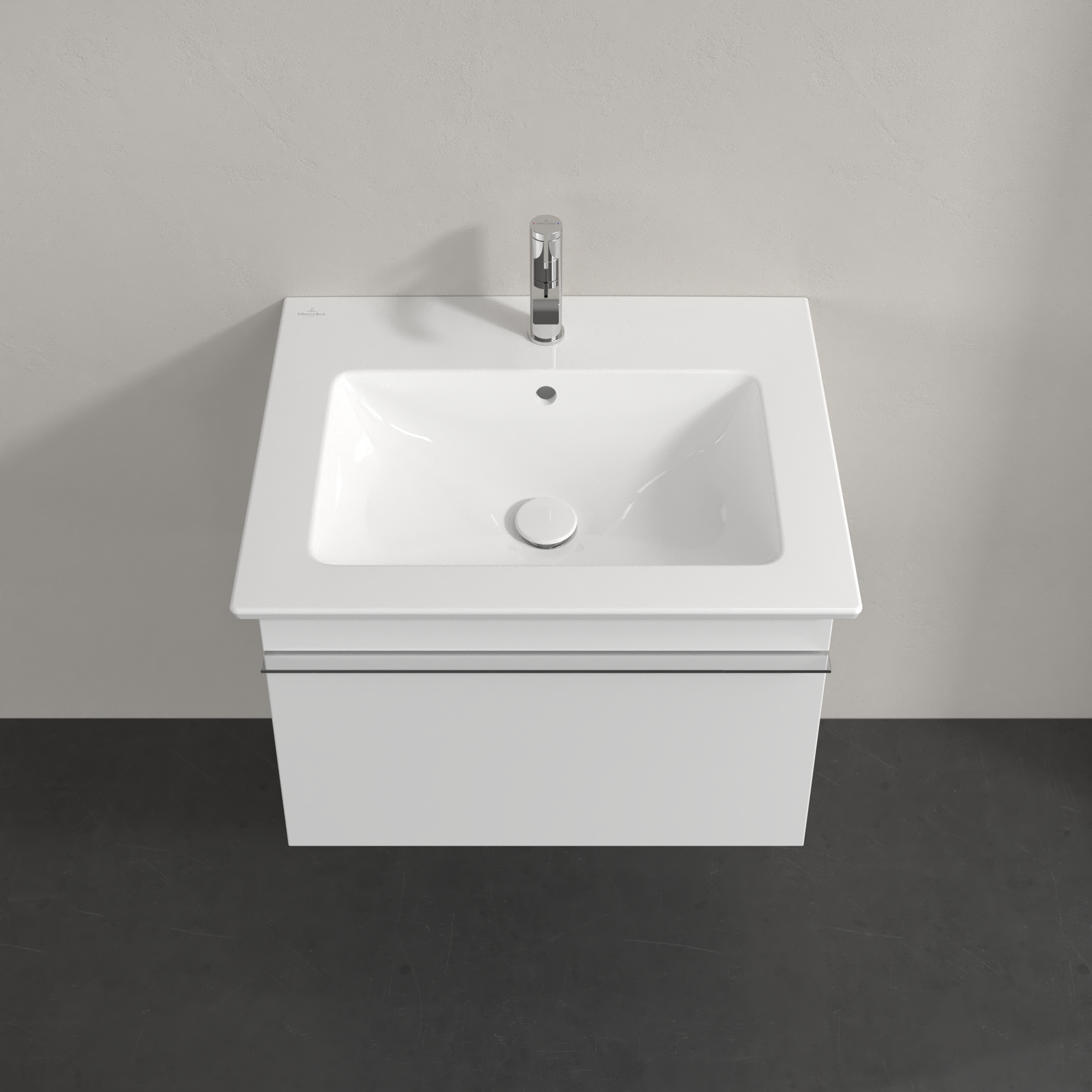 Venticello Waschbeckenunterschrank, 1 Auszug, 603x420x502mm, Korpus: Glossy White, Front: Glossy White