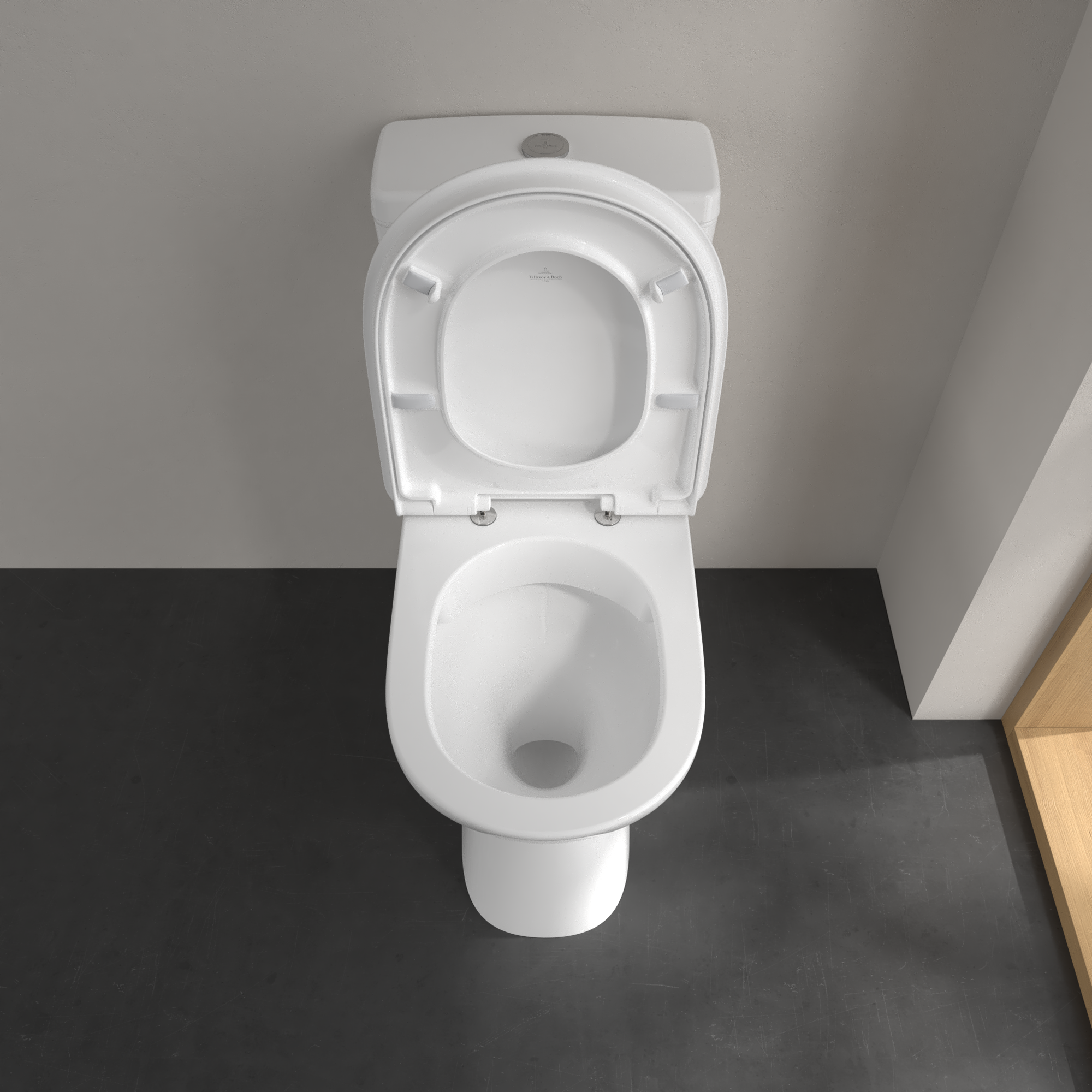 ViCare vorher O.novo Vita Tiefspül-WC ViCare spülrandlos für Kombination, bodenstehend, mit DirectFlush, Weiß Alpin