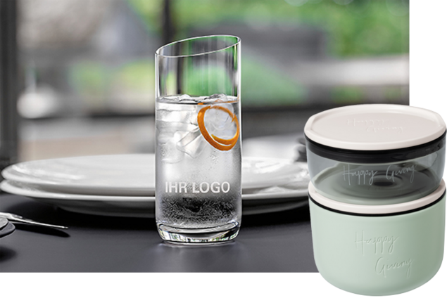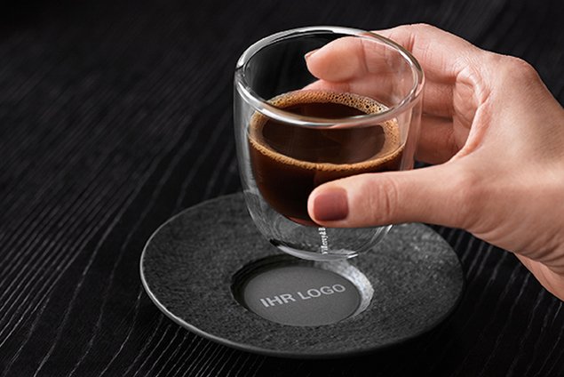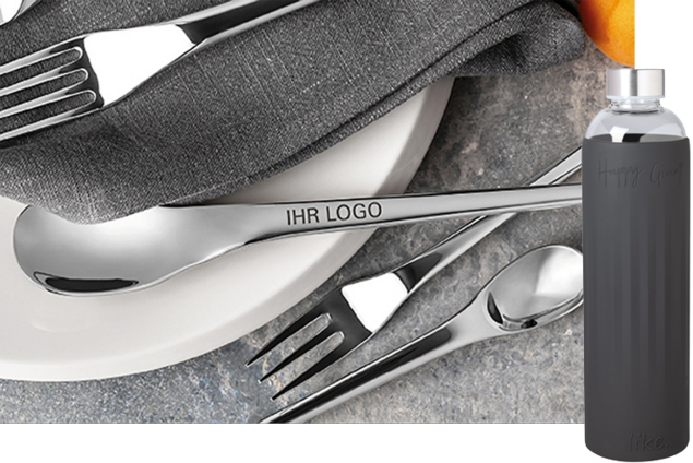 Der mattierte Effekt, welcher mit dem CO2 Laser erzeugt wird, ermöglicht filigrane Details und sehr scharfe und präzise Darstellungen. Auf Glas, Edelstahl, Holz und farbigem Porzellan lassen sich Logos und Schriftzüge somit brillant wiedergeben