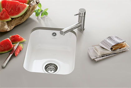 Mit der Unterbauspülserie Cisterna gehen alle Wünsche derjenigen in Erfüllung, die sich einen durchgängigen Spülbereich mit einer leicht zu reinigen Arbeitsfläche wünschen.
